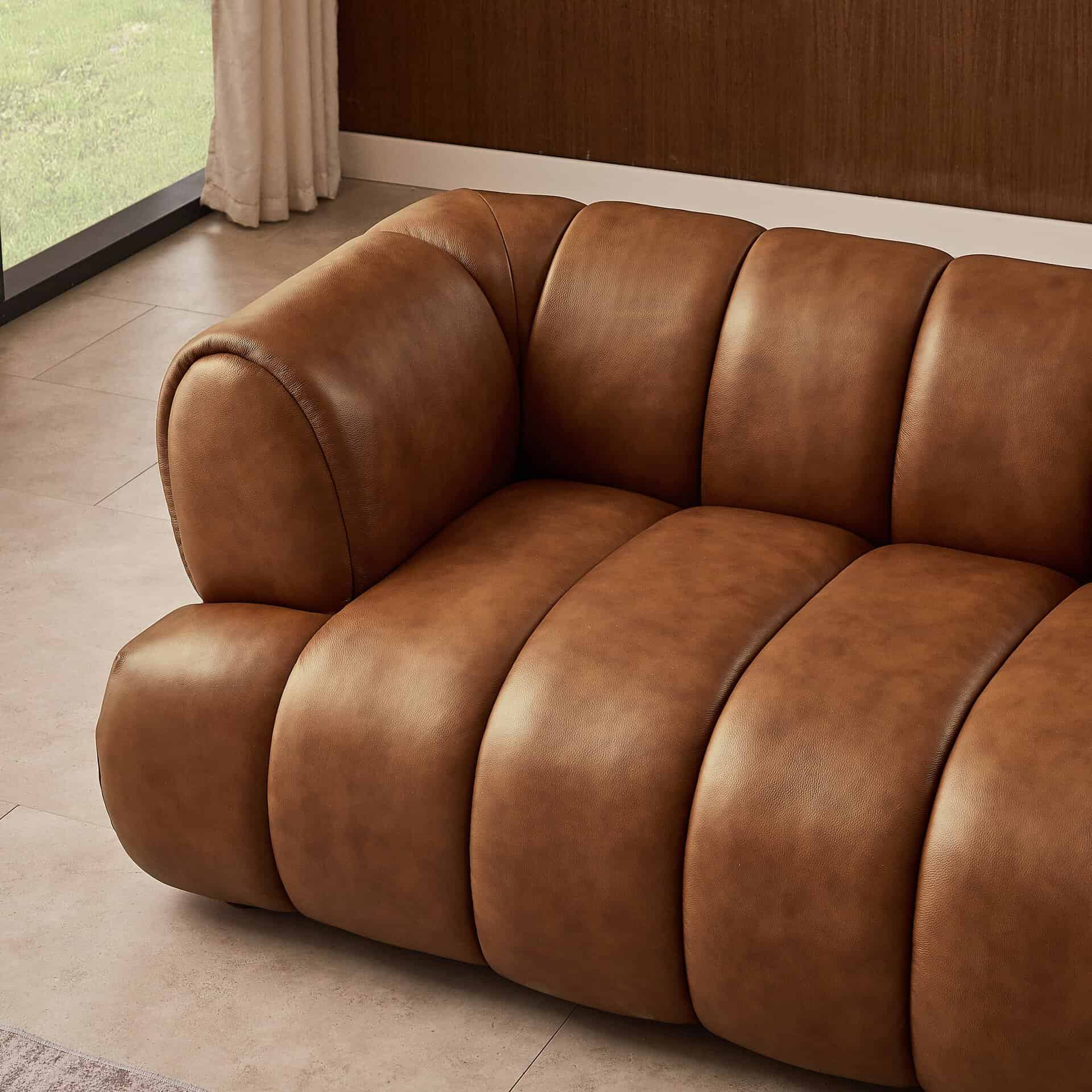The Tan Leather Mid-Century Modern Sofa with Solid Wood Frame is a luxurious statement piece that blends timeless mid-century design with exceptional craftsmanship. This stunning sofa features a sleek solid wood frame and premium leather upholstery in a sophisticated tan hue. Designed for both comfort and durability, it is the perfect addition to your living room, game room, or loft. The sofa’s high-quality materials ensure long-lasting use, while its elegant design elevates any space with a touch of modern sophistication.