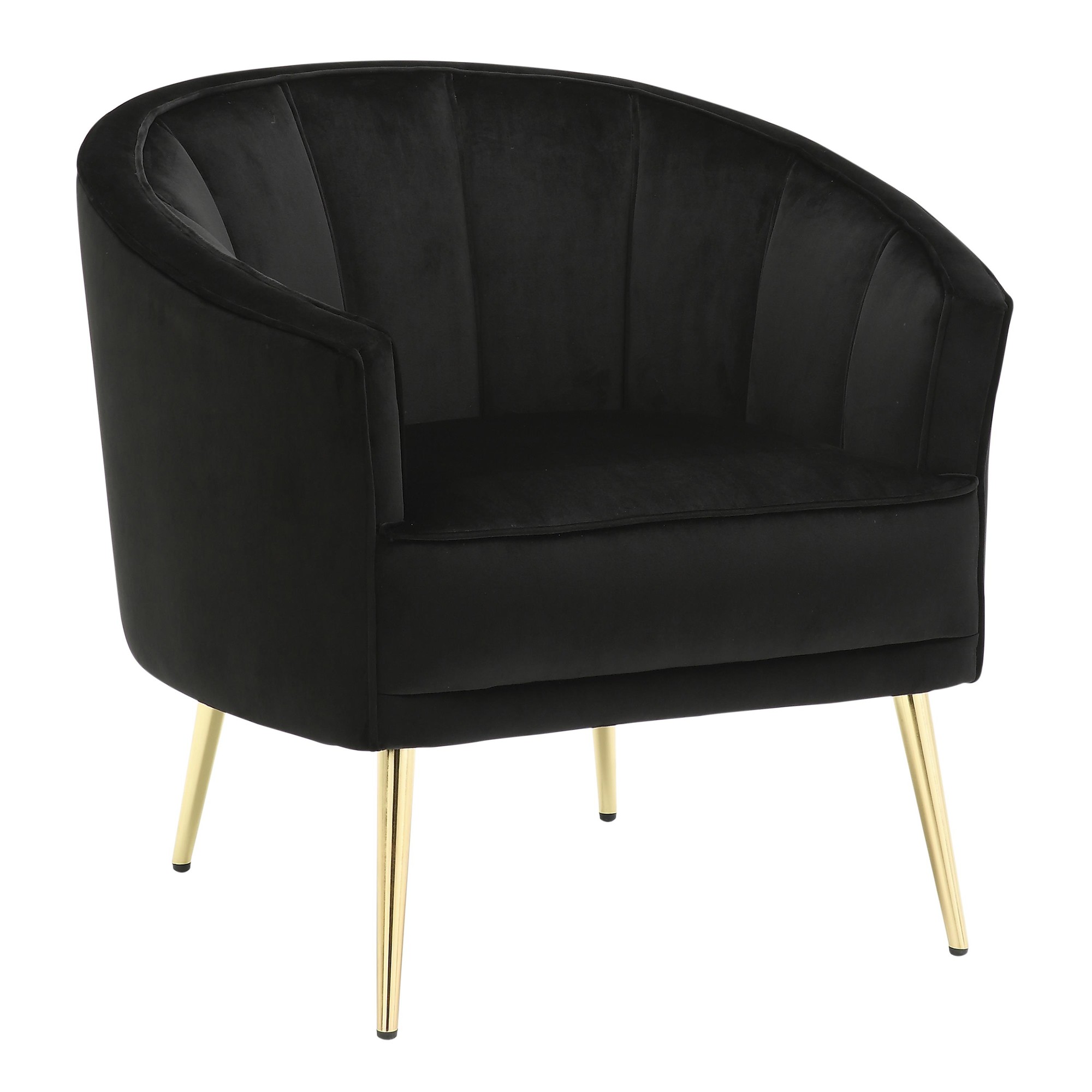 Enjoy sleek, tufted velvet upholstery that’s soft to the touch, paired with gold metal legs for a contemporary look. The stylish vertical tufting and cushioned seat and backrest provide both comfort and visual appeal. Available in a variety of colors, the Tania Accent Chair is sure to look great in any room!