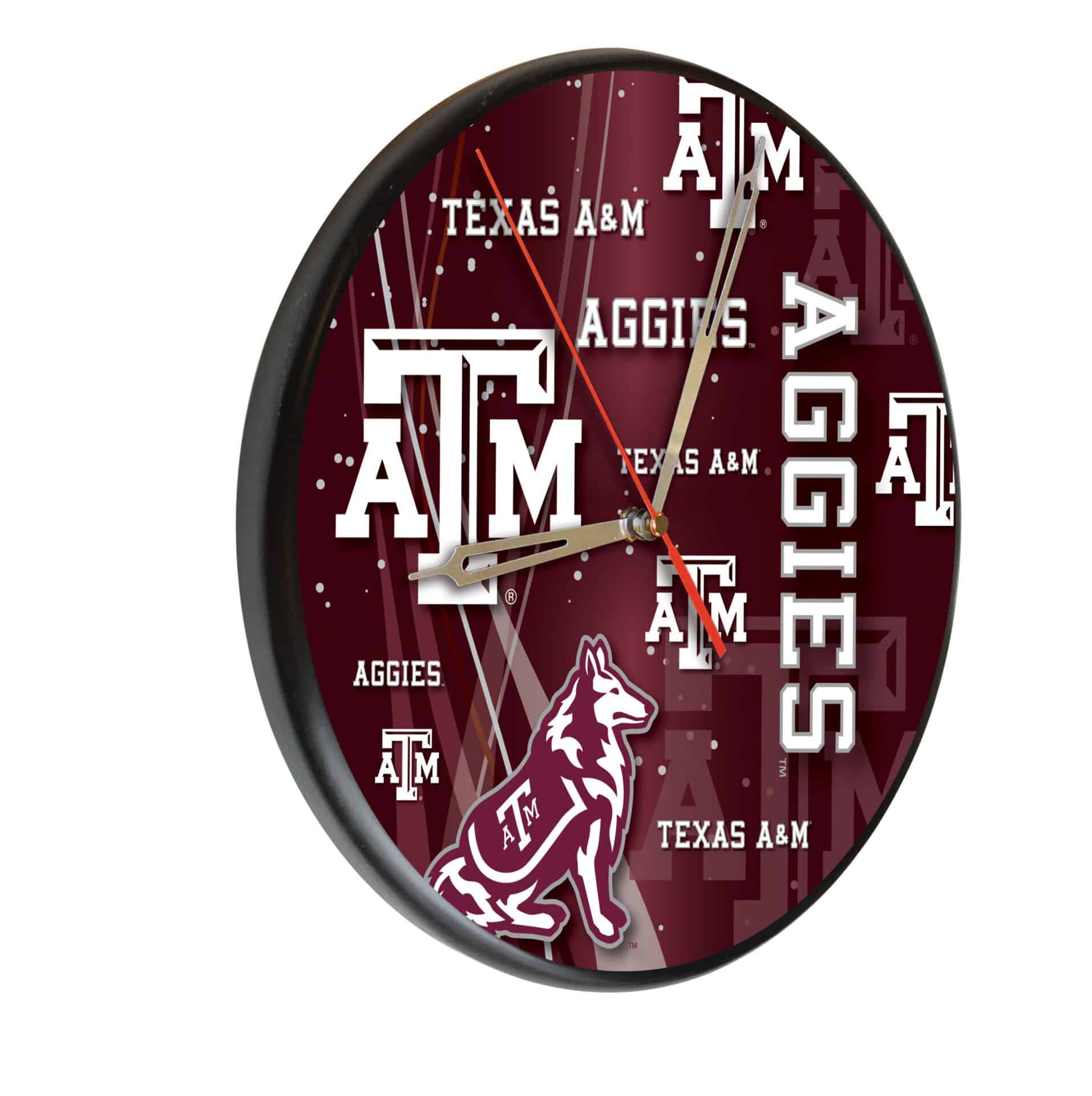 The Texas A&M 13-Inch Solid Wood Clock in Black is the ultimate way to display your school spirit while keeping track of time. This stylish clock features first surface, digitally printed graphics that use UV inks to ensure the design remains vibrant and does not fade over time. With accurate quartz movement powered by a single AA battery (not included), you can count on it for precise timekeeping. The recessed keyhole hanger allows for easy wall mounting, ensuring a sleek and polished appearance. Perfect as a gift for a recent graduate or a treat for yourself, this clock combines functionality with a touch of school pride.