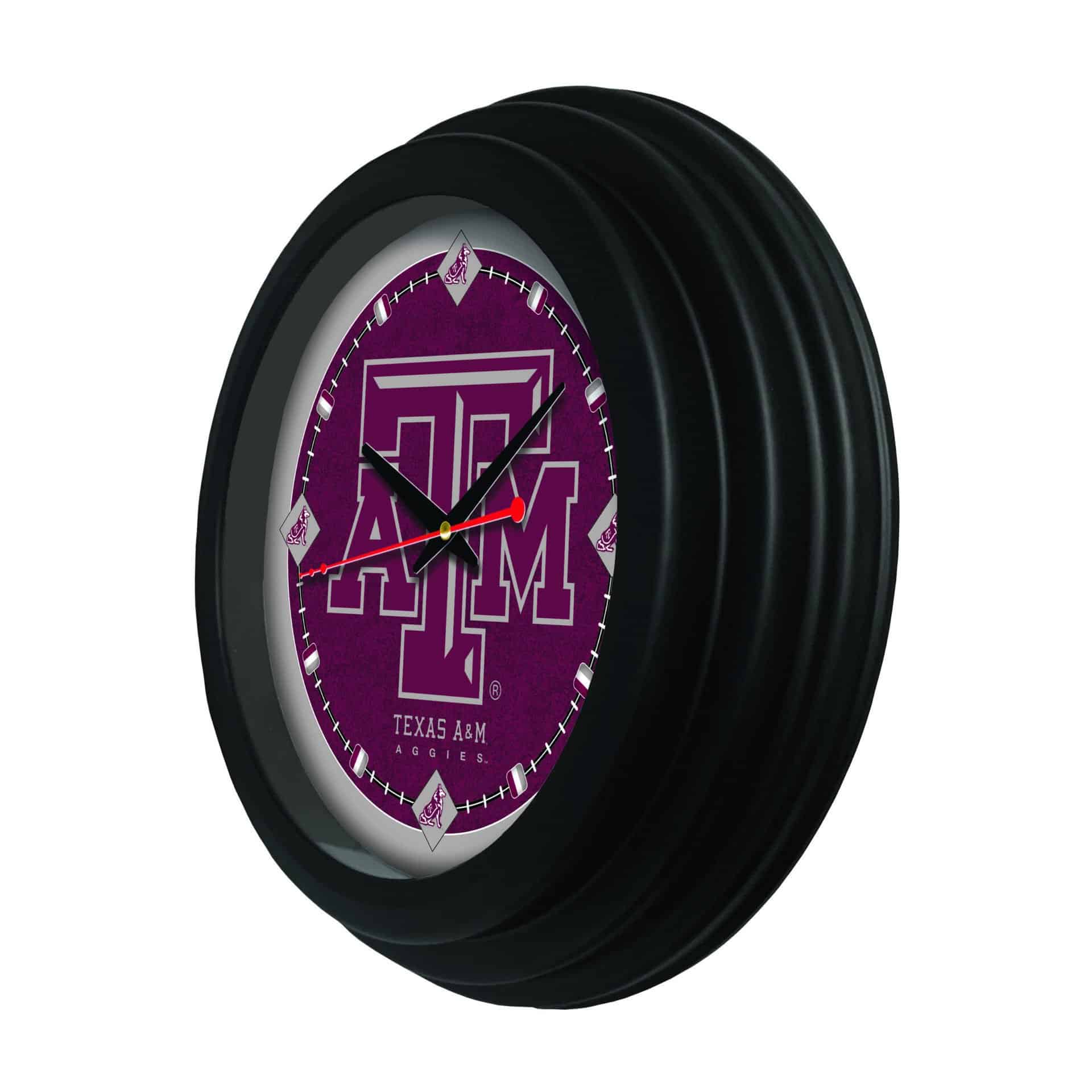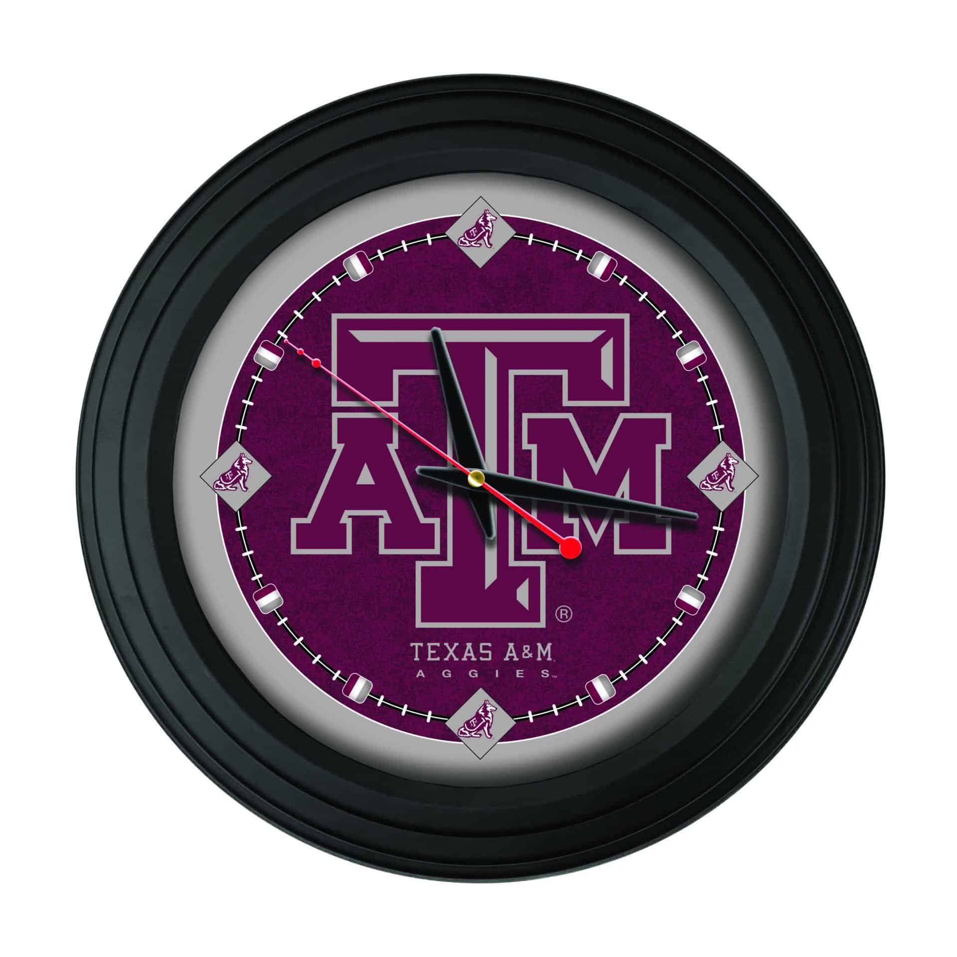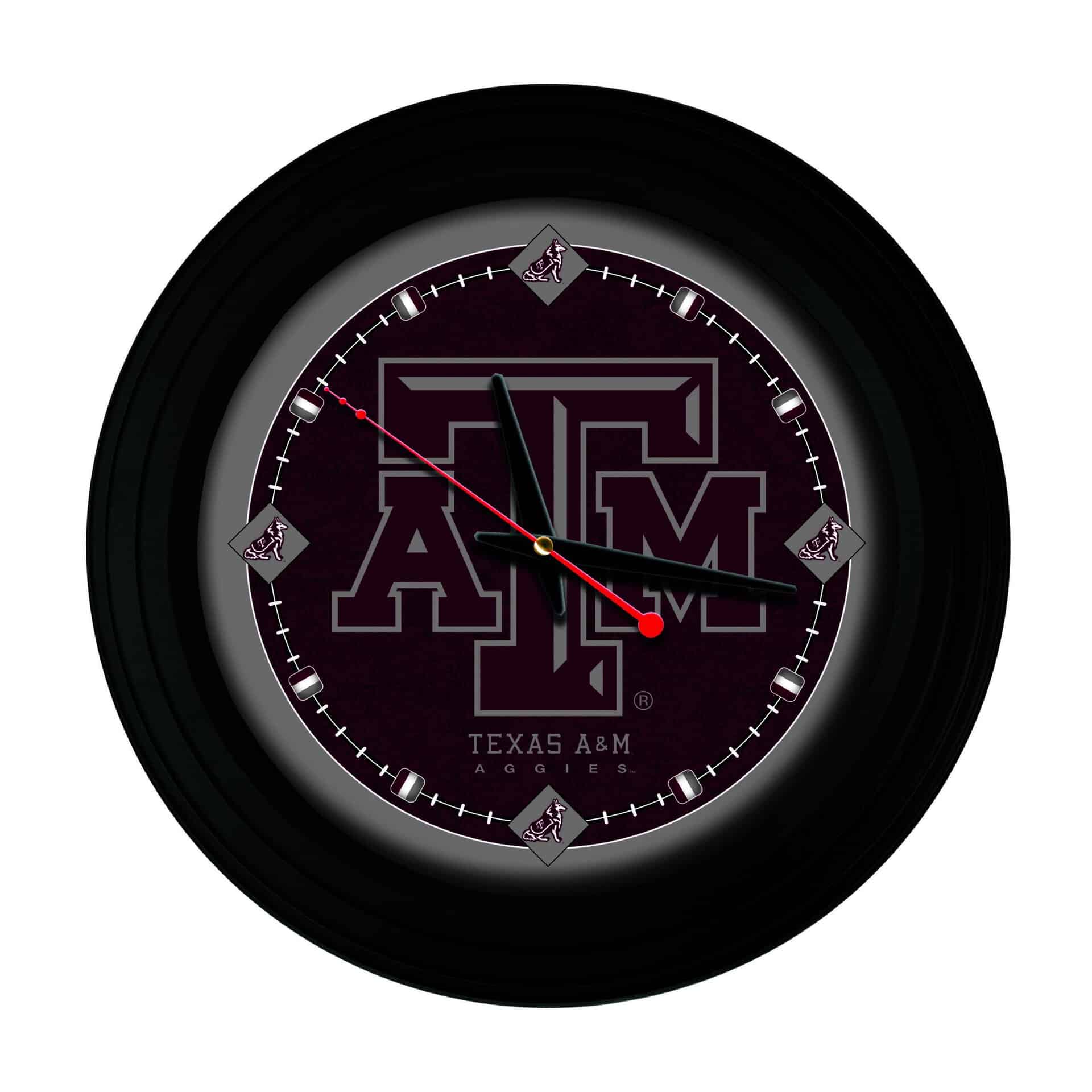 This Texas A&M 15-Inch Wall Clock in Black is an ideal addition to any space, showcasing your school pride with style. Featuring vibrant, full-color digitally printed graphics, this officially licensed clock ensures that your favorite team is always front and center. The strong black casing is UV resistant and protects the graphics behind a glass lens face, while the accurate quartz movement powered by a single AA battery (not included) guarantees precise timekeeping. With a recessed hanger, this clock hangs flat against the wall for a sleek appearance, making it a perfect gift for graduates, sports enthusiasts, or a stylish addition to your own decor.