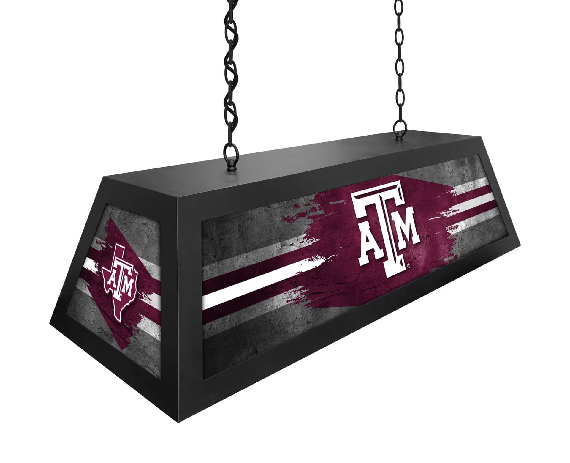 The Texas A&M Long Box Billiard Light is a high-quality, suspended light fixture perfect for illuminating your billiard table, game table, or bar area. Its durable metal frame and vibrant, backlit design showcase your team pride while providing excellent lighting.