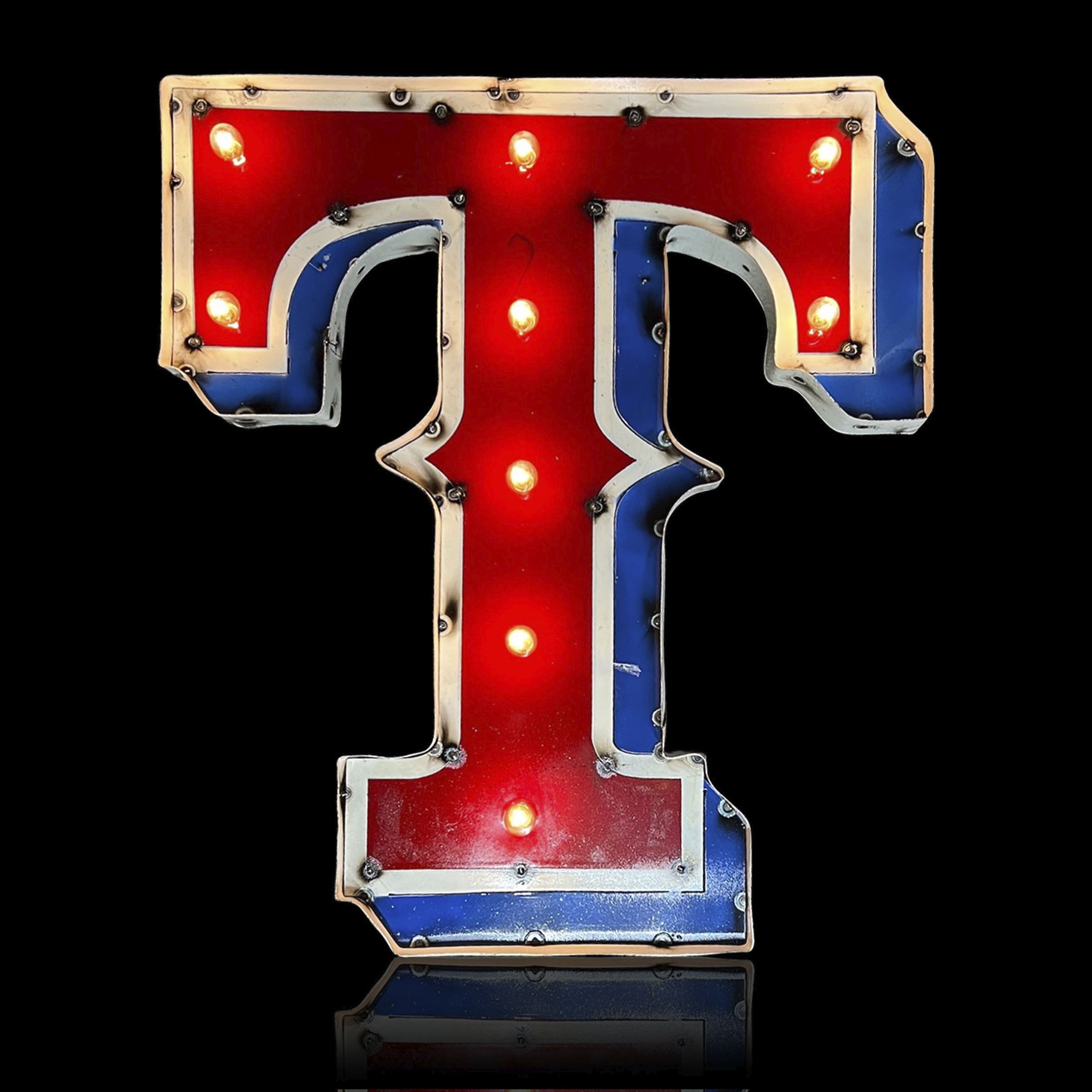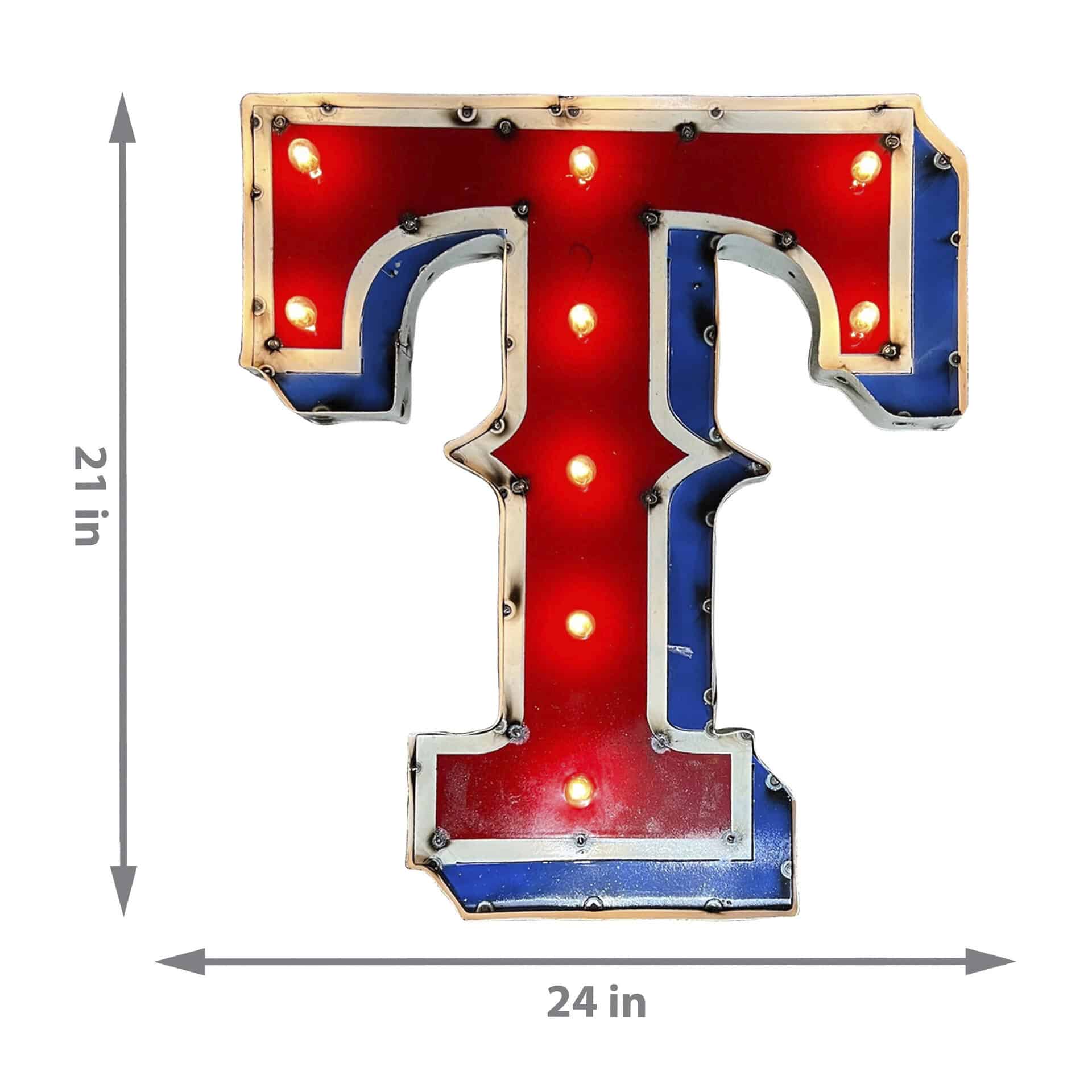Light up your fan cave with this awesome lighted recycled metal sign! This sign is perfect for showing off your team pride and adding a unique, retro touch to any space. Hand-built from recycled metals, it features channel lettering and exposed weld spots for an authentic look. Get ready to illuminate your space and show your team spirit!