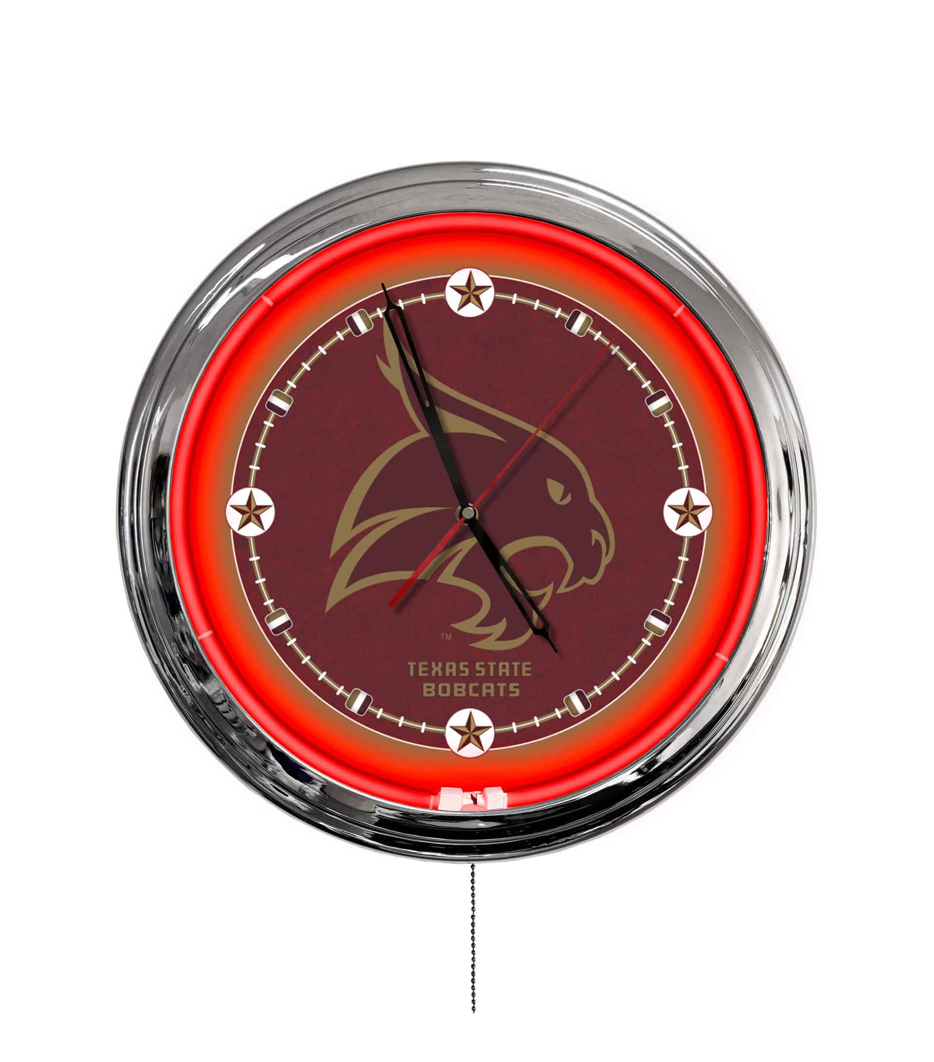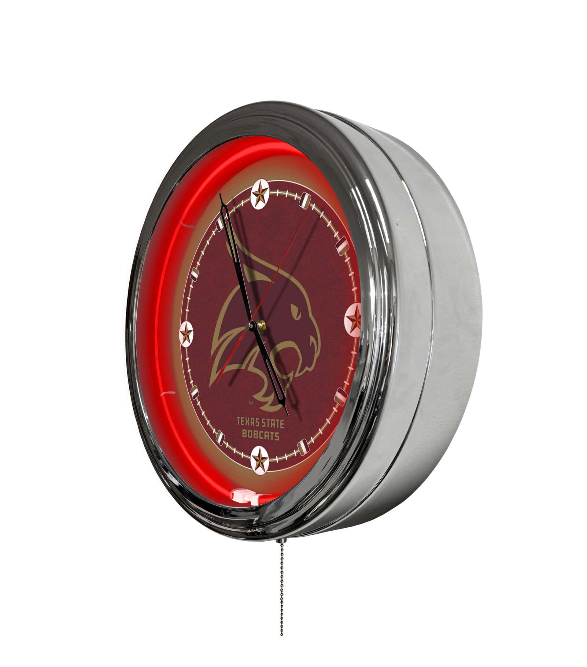 The Texas State University 16-Inch LED Wall Clock in Chrome is a stylish and efficient alternative to traditional neon clocks, designed to enhance your man cave decor. This multi-color LED clock showcases logos and brands with a beautiful glow, featuring a slim chrome casing that adds a modern touch. With 20 static colors and 19 dynamic modes, you can easily adjust the speed and brightness to match different events and atmospheres. The wireless remote control makes it simple to transition between colors and modes, ensuring your space stays lively and inviting.