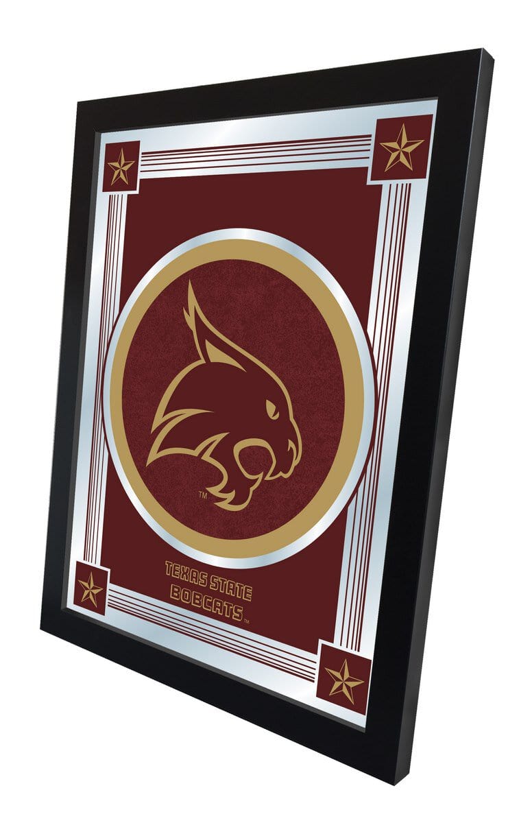 Show your school pride with the Texas State University 17×22 Logo Wall Mirror. This officially licensed logo mirror features a simple yet elegant design, with vibrant colors bursting through the 1/8″ thick glass and highlighted by mirrored accents. The mirror is framed with a black, 1 1/4″ wrapped wood frame and includes saw tooth hangers for easy installation. Measuring 17″ (W) x 22″ (H), this mirror is perfect for your office, garage, or any room in your home. Whether for a recent graduate, a sports superfan, or yourself, this mirror is the ideal way to showcase your school spirit.