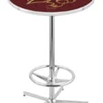 Enhance your bar, game room, or man cave with this stylish and durable 42-inch pub table featuring a 36-inch top, star base, and sleek chrome finish. Designed for both functionality and aesthetics, this table is built to withstand years of use while adding a touch of sophistication to your space. Its scratch-resistant laminate top with a vibrant, full-color design ensures long-lasting beauty and easy maintenance. The sturdy steel base with triple chrome plating provides exceptional stability, while adjustable floor glides ensure balance on uneven surfaces. Assembly is quick and straightforward, resulting in a robust and reliable addition to your space.