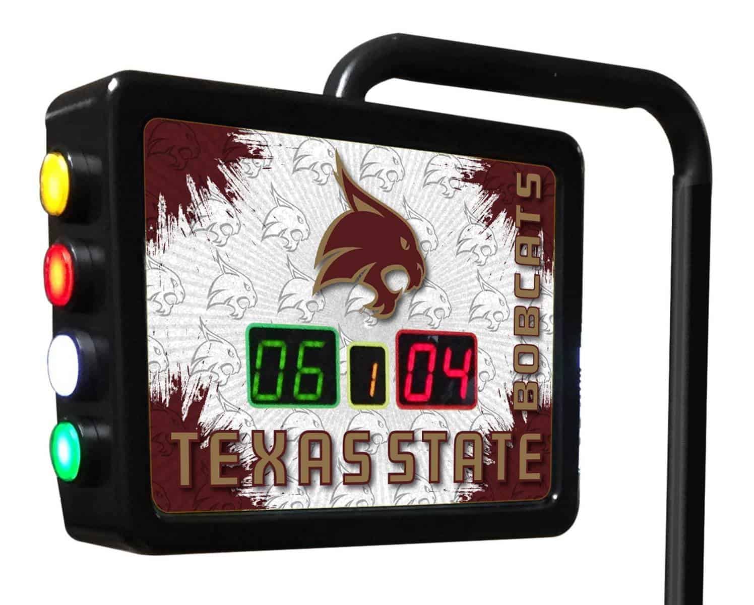 Elevate your shuffleboard game experience with this Texas State University Electronic Scoring Unit. Designed to simplify gameplay and add a professional touch to your game room, this scoring system eliminates manual score tracking. With color-coded buttons and a digital display, keeping score has never been easier or more fun.