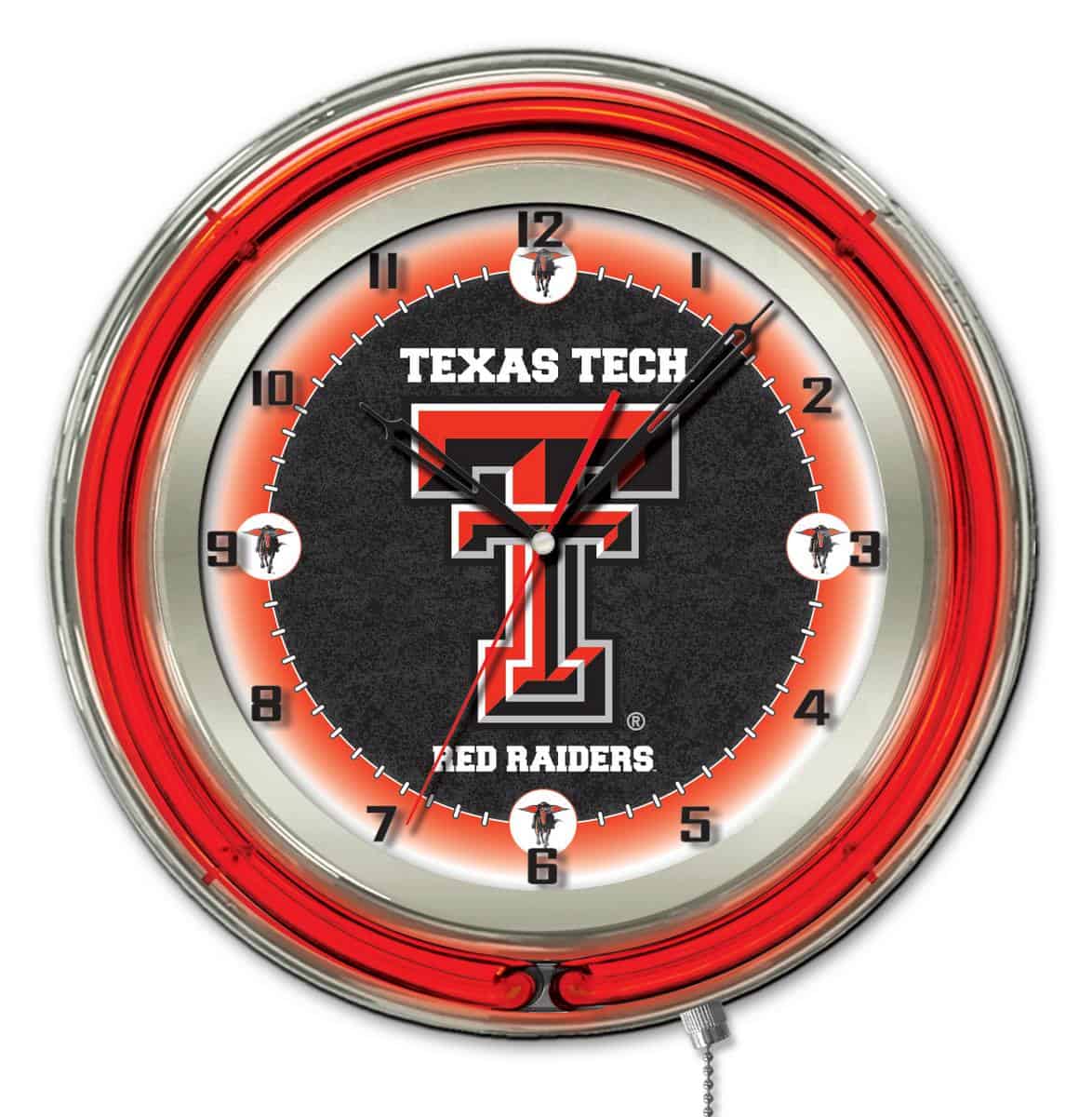 The Texas Tech University 19-Inch Neon Logo Clock in Chrome is the perfect addition to any fan’s man cave. This striking clock features a chrome casing with vibrant, full-color artwork, showcasing your school pride. The double neon tubes include a team color accent and a brilliant white inner ring that illuminates the custom printed clock face. Easily control the neon lights with a pull chain for effortless operation. Powered by a standard 120V outlet, this clock combines style with functionality, ensuring accurate timekeeping thanks to its quartz movement.