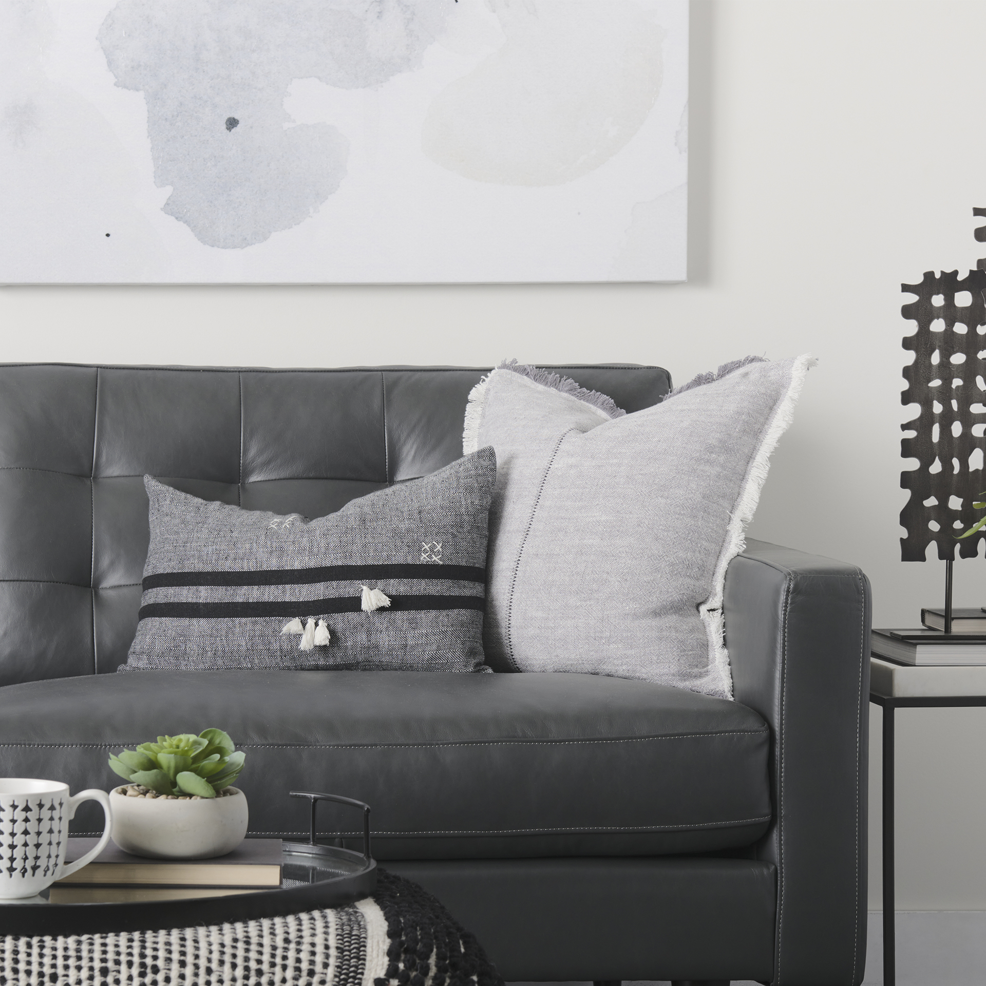 The Thais pillow cover brings a touch of contemporary style to any space. Its soft fabric construction, unique color palette, and fringed detailing make it a perfect decorative accent. Freshen up your décor with this stylish pillow cover.