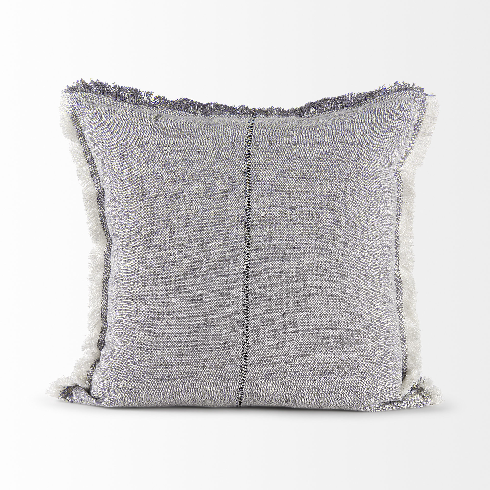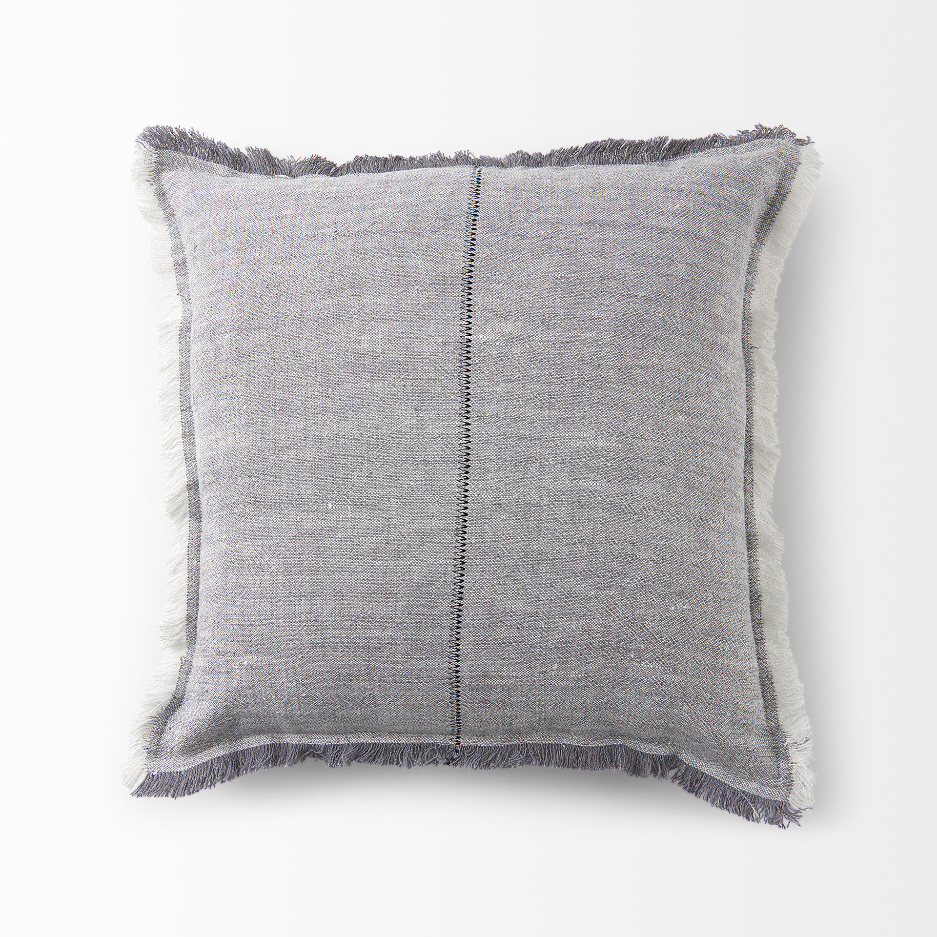 Crafted with premium, soft-to-the-touch fabric, this pillow cover offers both comfort and style. Its distinctive blue and cream color scheme, complemented by a dark stitching detail, adds visual interest. The fringed detail around the perimeter provides a unique, eye-catching accent.