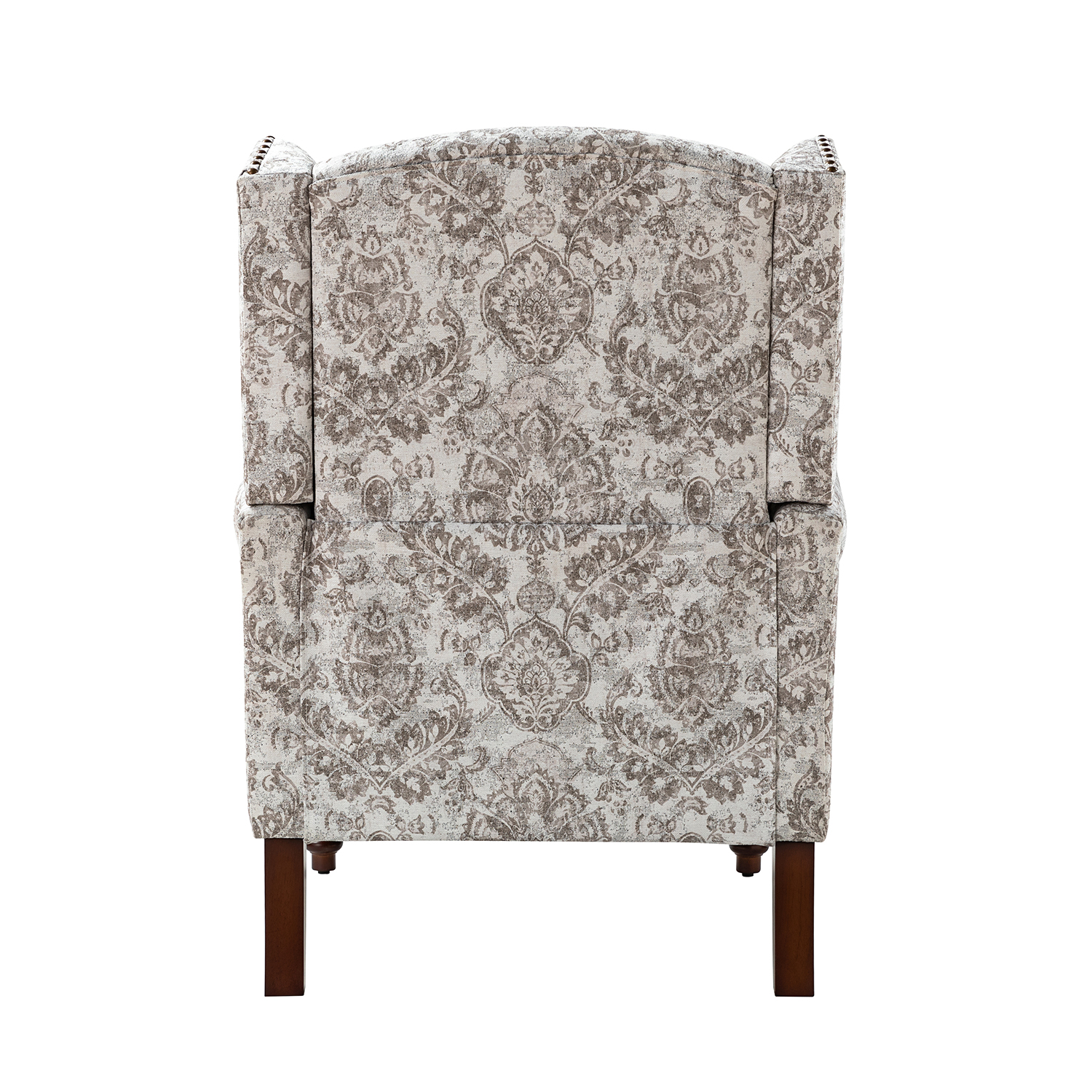 This wingback accent chair is the perfect vintage-look piece to complete your transitional decor. This traditional design has it all: style, comfort, and durability. The attractive floral patterned fabric design and spindle legs add a dash of cohesive style.