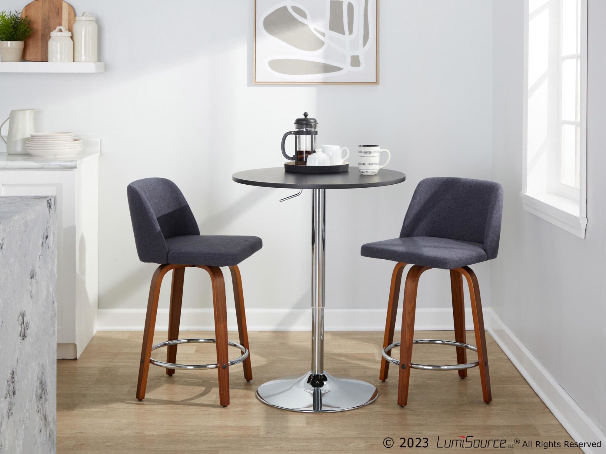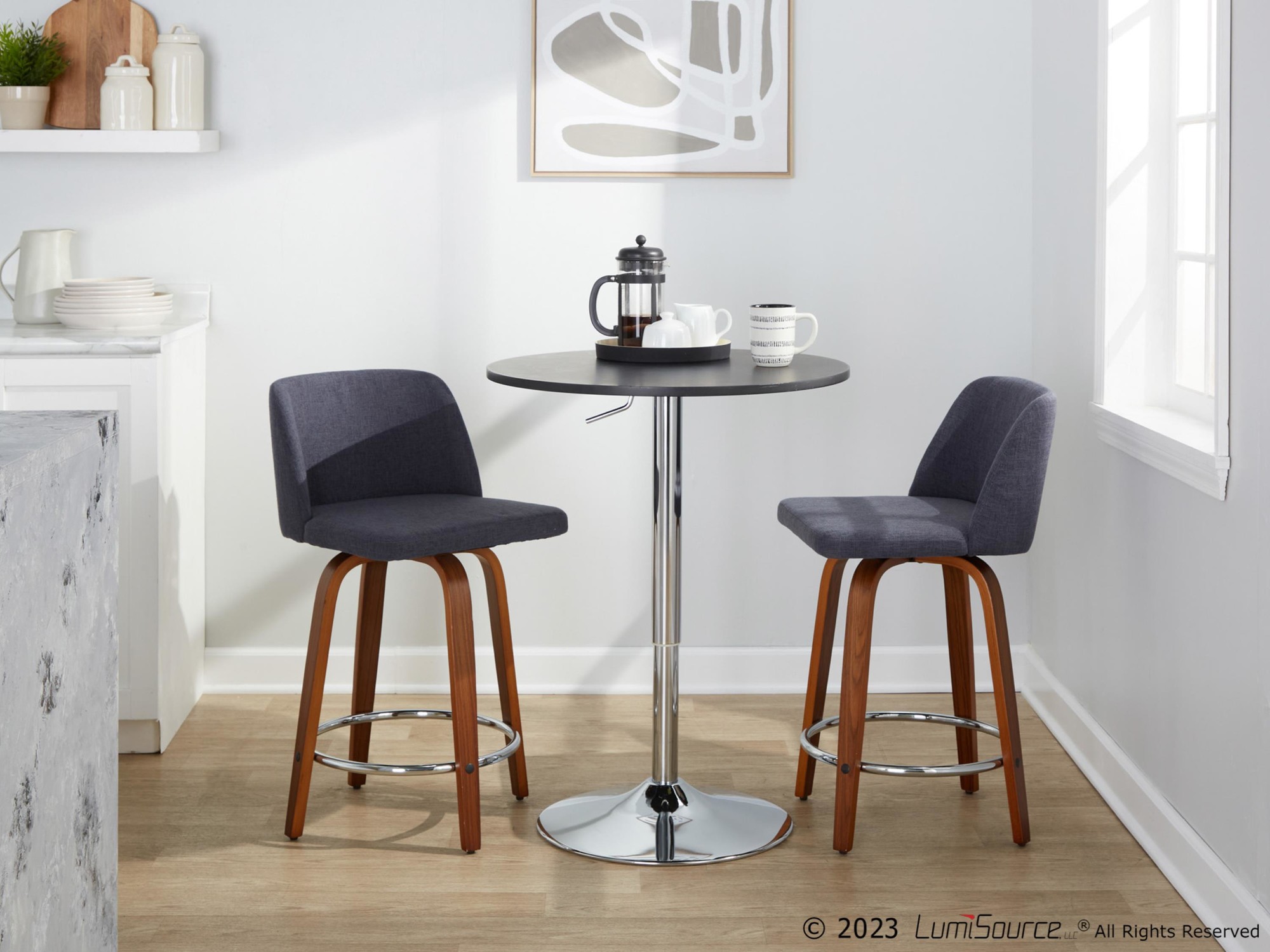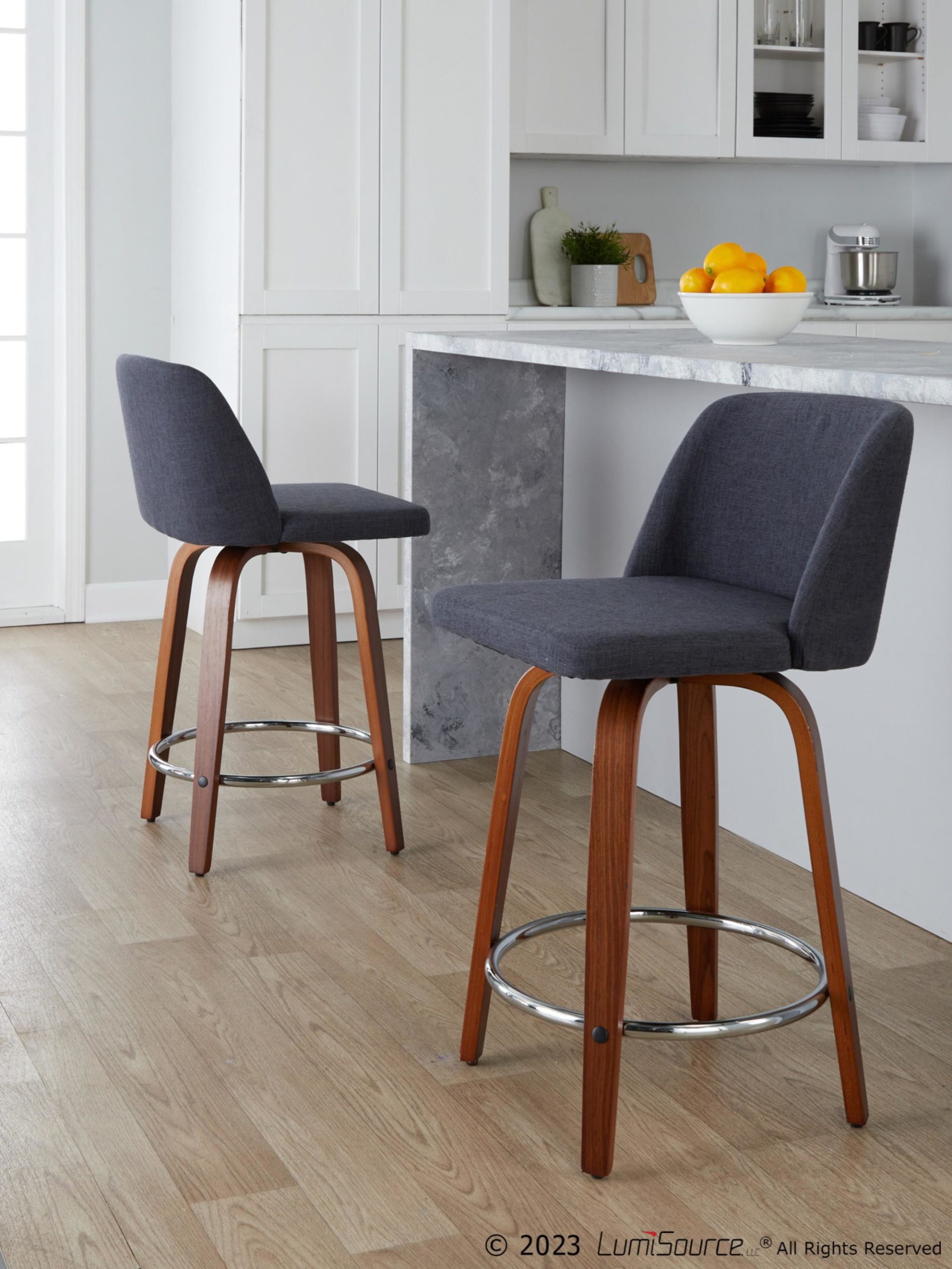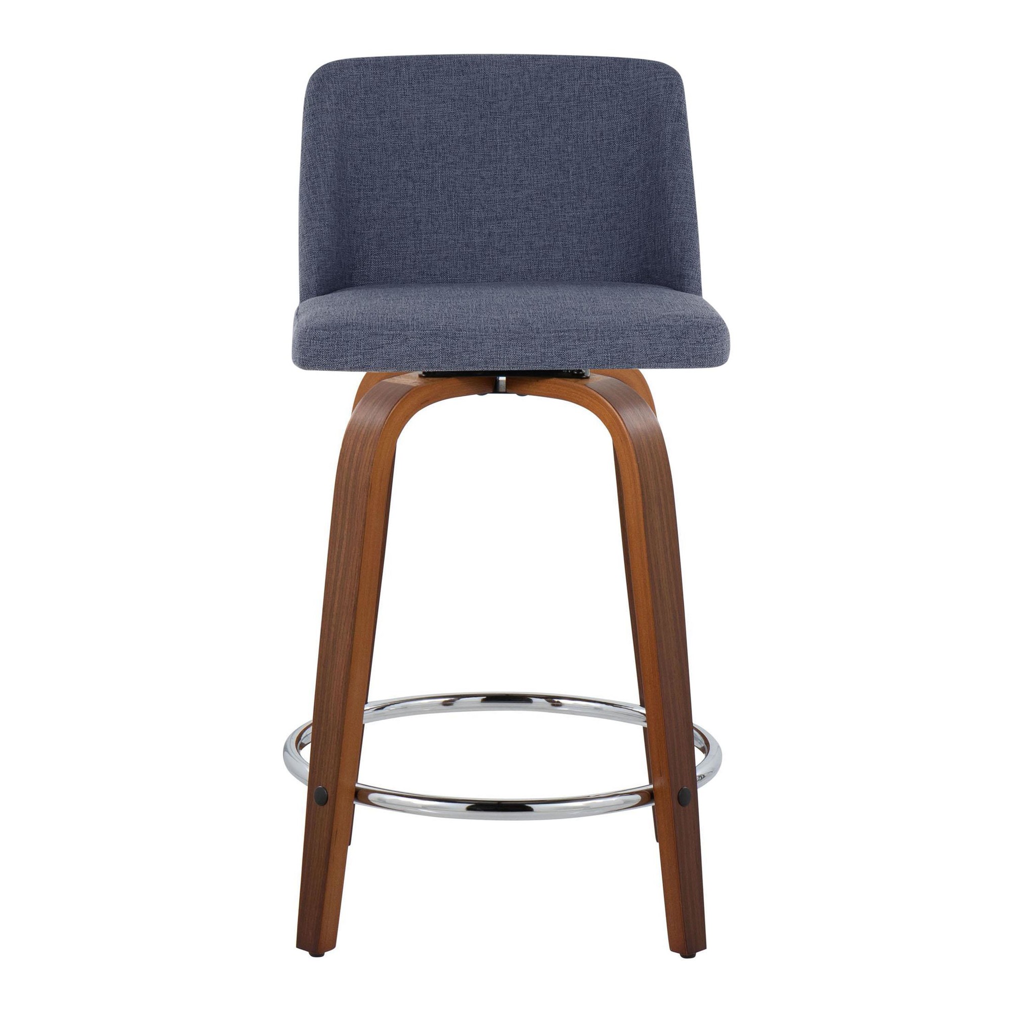 The Toriano 24″ Counter Stools combine comfort, modern simplicity, and classic lines. These counter stools are the perfect addition to your space. The padded, upholstered swivel seat enhances comfort, while the fixed-height bent wood legs offer stability and style. A built-in footrest adds extra comfort.