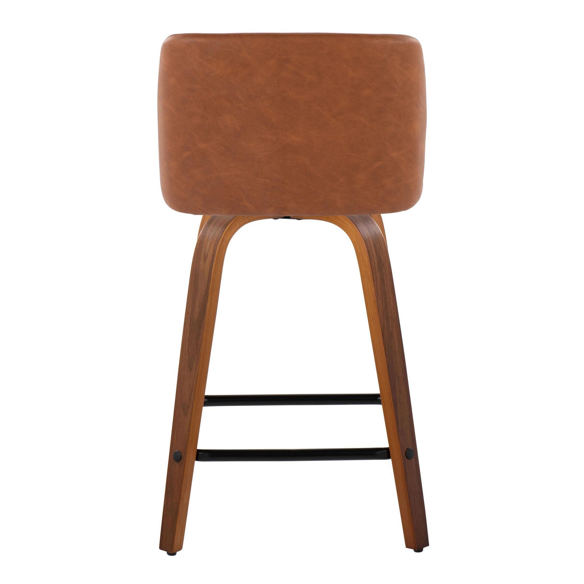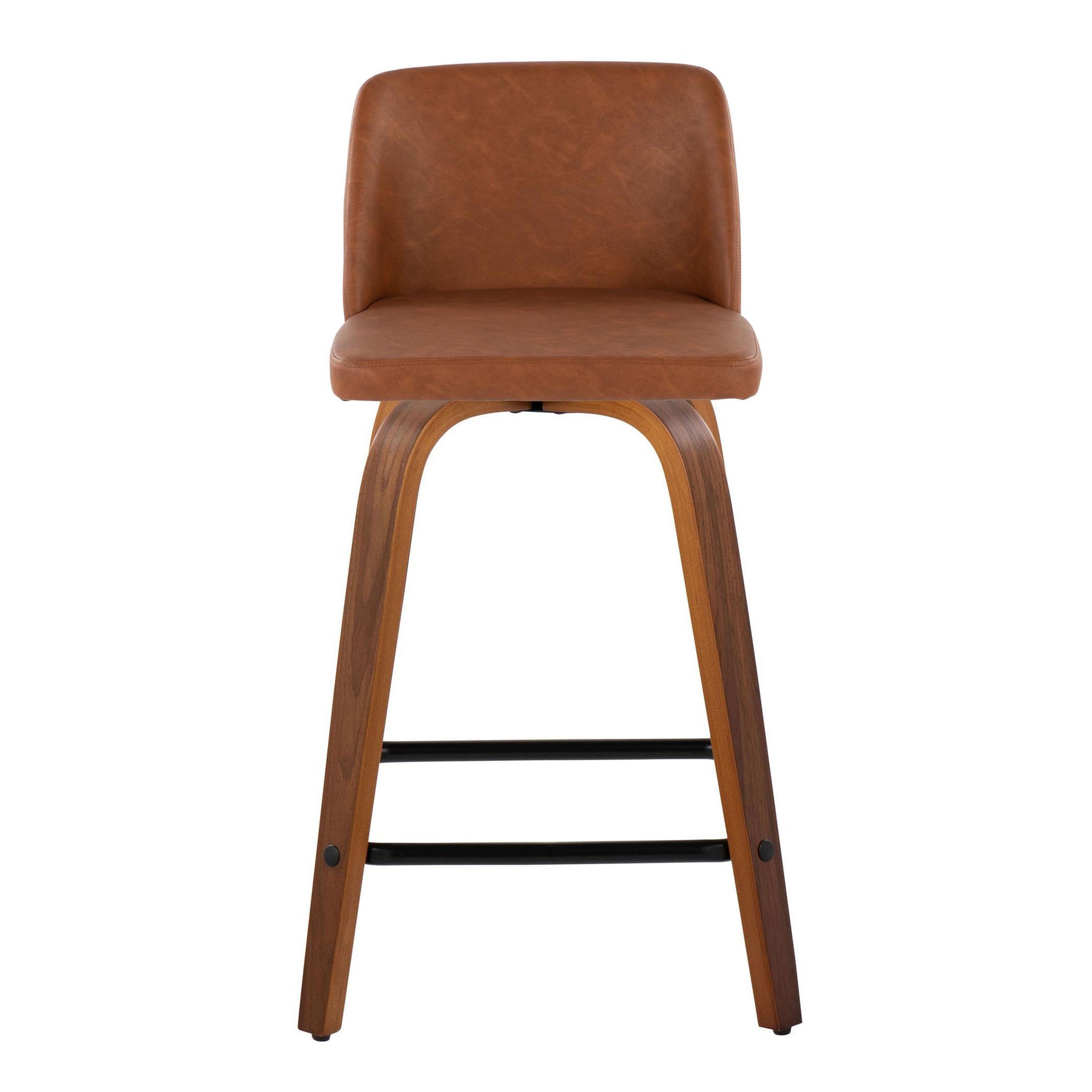 Toriano 24 Inch Mid-Century Modern Swivel Counter Stools in Walnut and Camel Faux Leather with Footrest (Set of 2) (Set of 2)