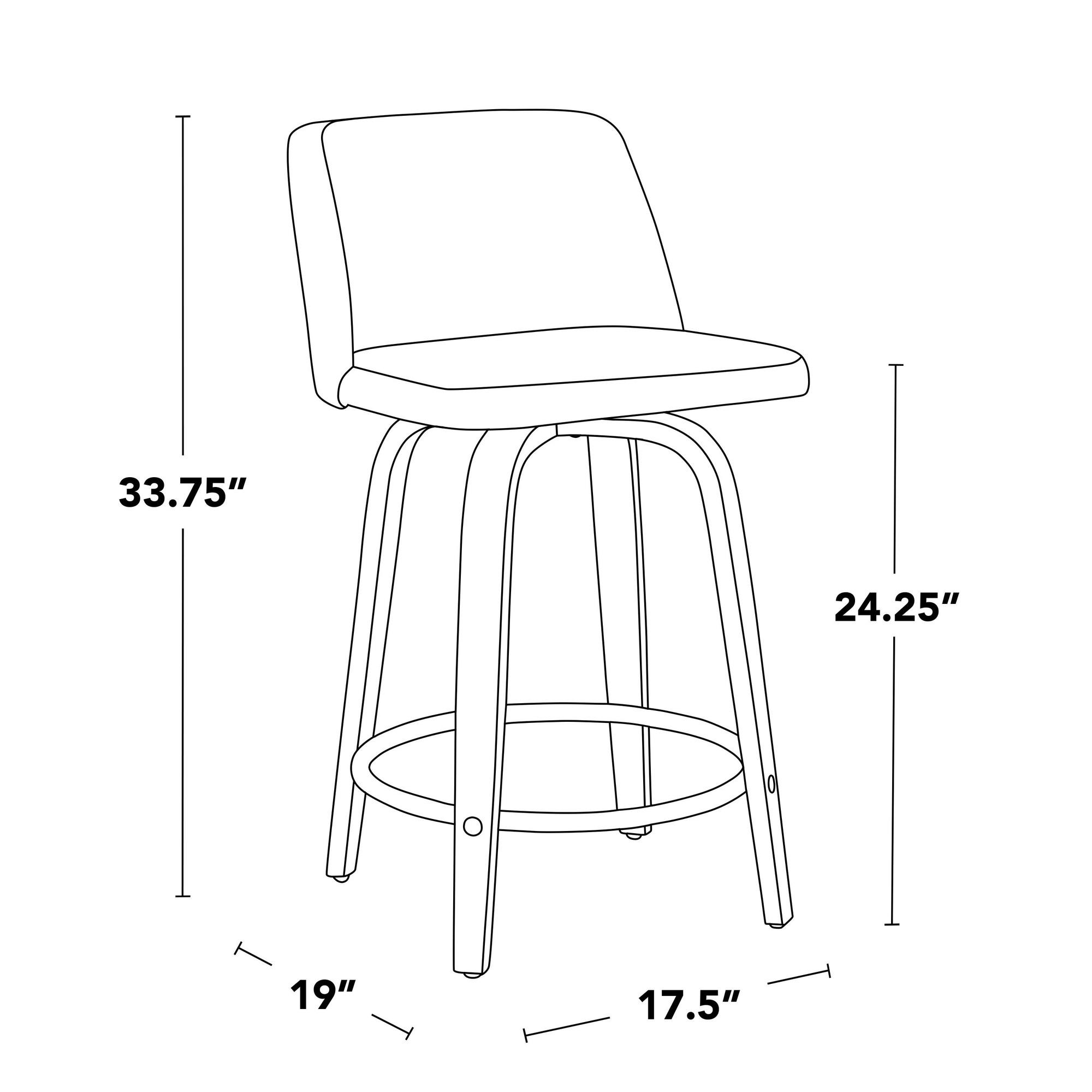 The Toriano 24-Inch Counter Stools offer a blend of comfort, modern simplicity, and classic design, perfect for elevating your space. These fixed-height counter stools feature a padded, upholstered swivel seat for ultimate comfort, complemented by stylish bent wood legs and a convenient built-in footrest.