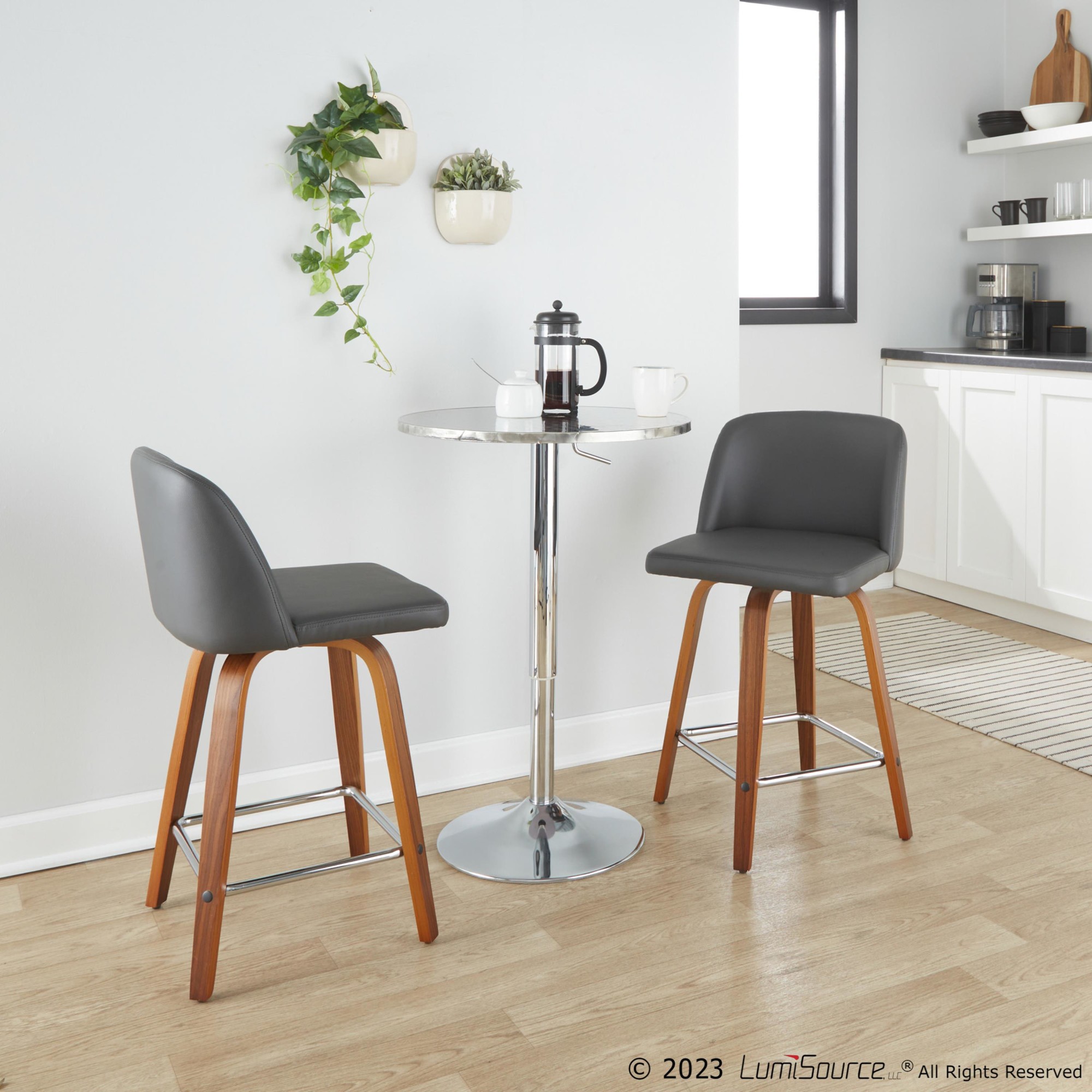 • Includes two counter stools