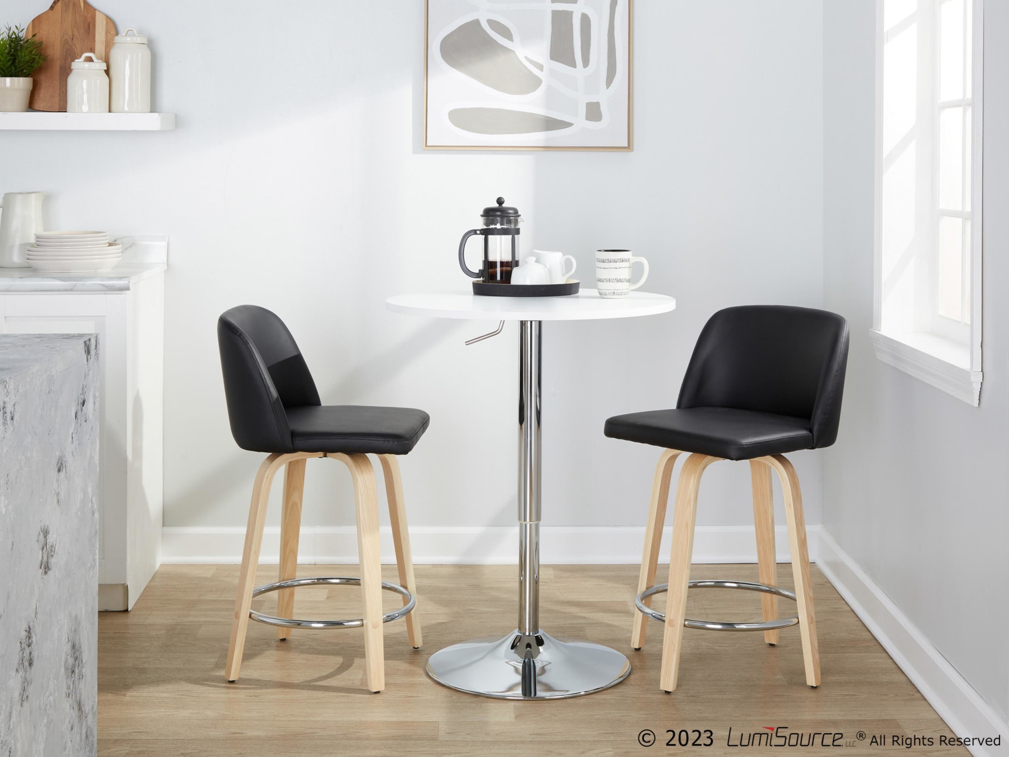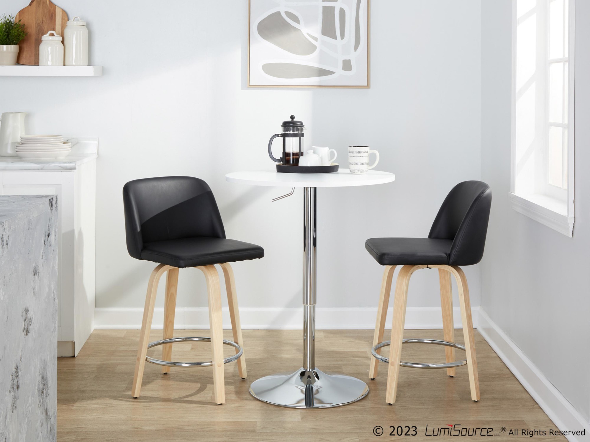 The Toriano 26″ Counter Stools offer a harmonious blend of comfort and modern design. These stools are designed to enhance your dining or bar area with their clean lines and inviting presence. Enjoy the 360-degree swivel, allowing for effortless conversation and movement. The combination of a padded, upholstered seat and a fixed-height bent wood frame creates a stylish and functional seating solution.