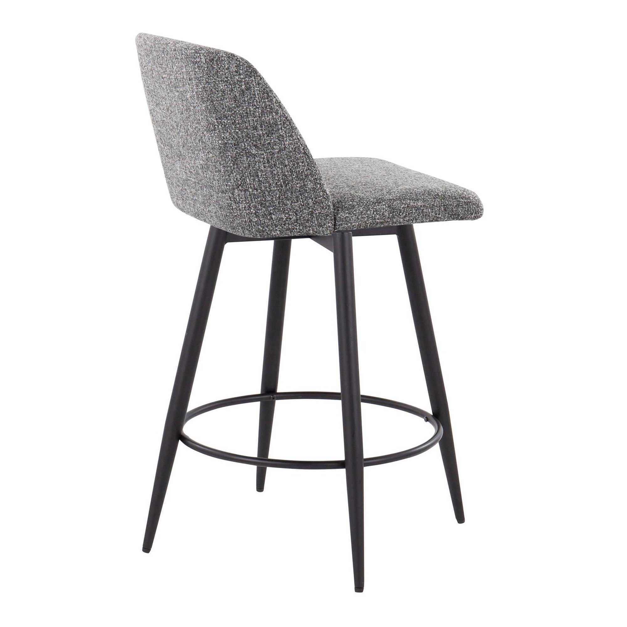 The Toriano Counter Stools offer a blend of comfort, modern simplicity, and classic design. These stools feature a padded, upholstered seat atop a fixed-height, contemporary metal base, complete with a convenient built-in footrest. The 360-degree swivel adds functionality, making these stools a stylish and practical addition to any counter area. These stools are sold in pairs.