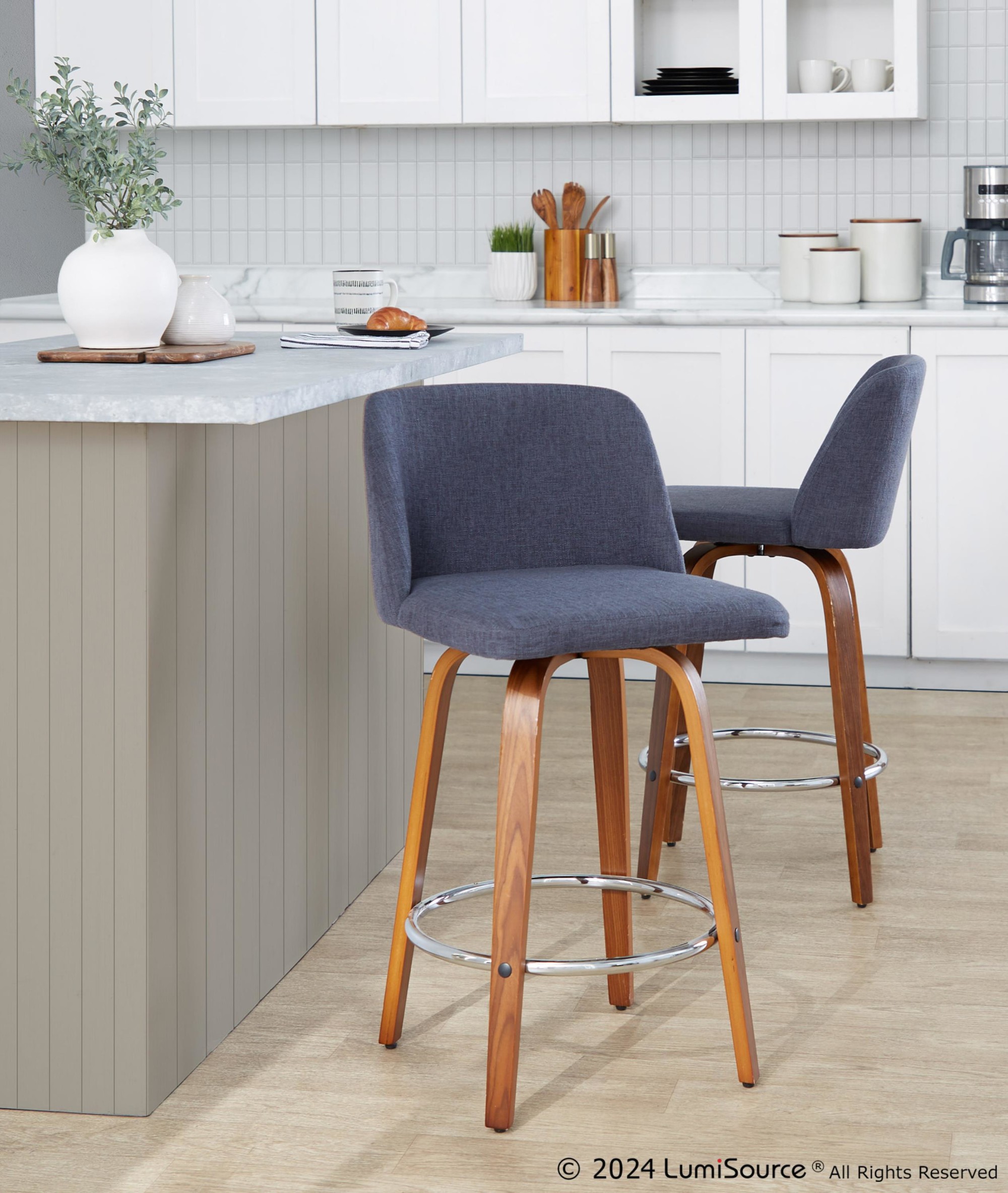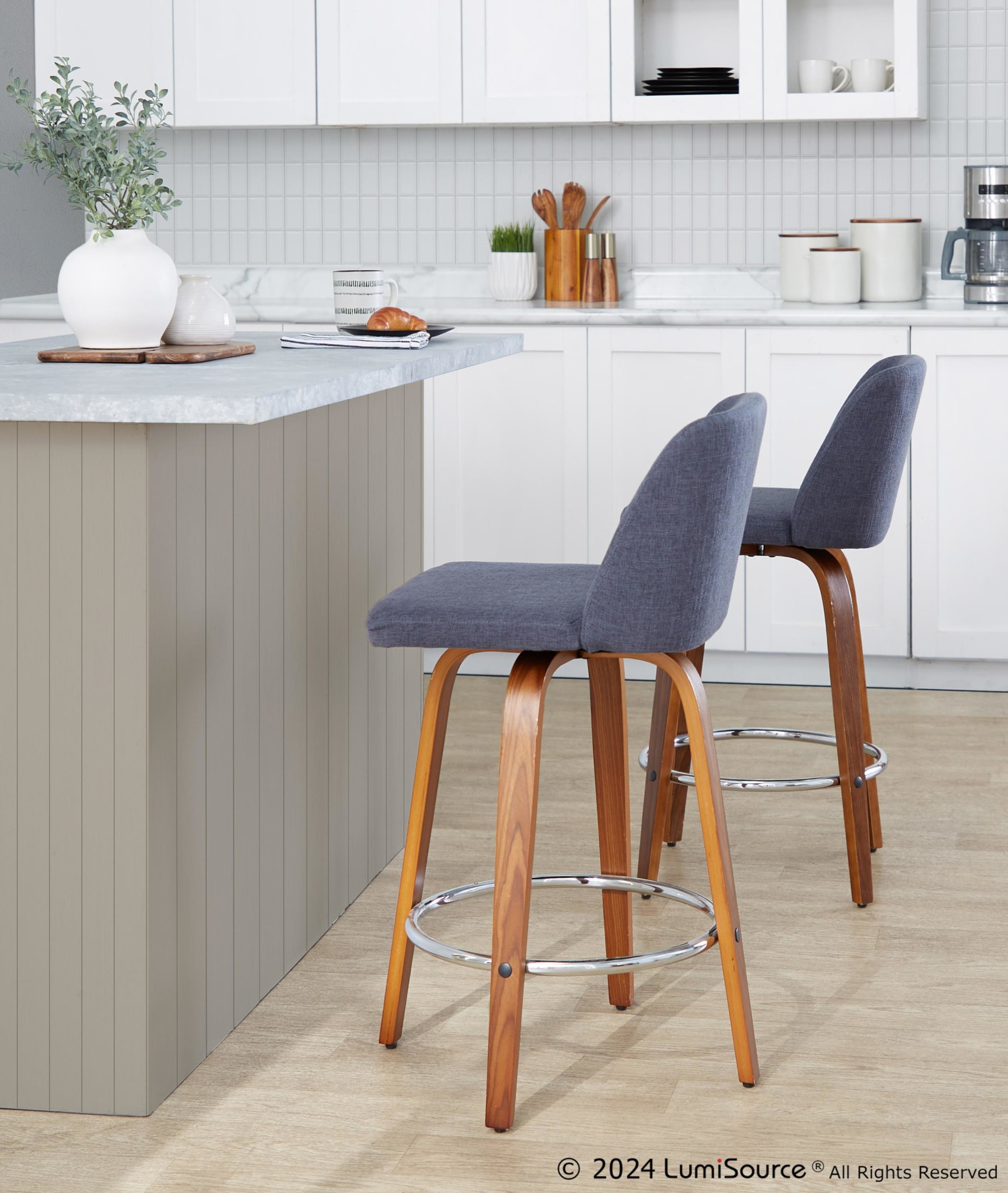 Toriano 26-Inch Blue Walnut Mid-Century Modern Counter Stools (Set of 2)