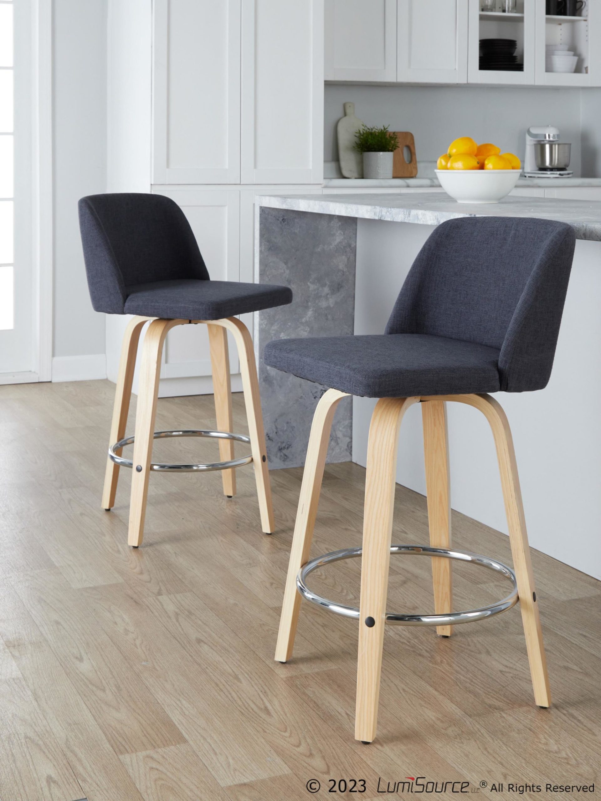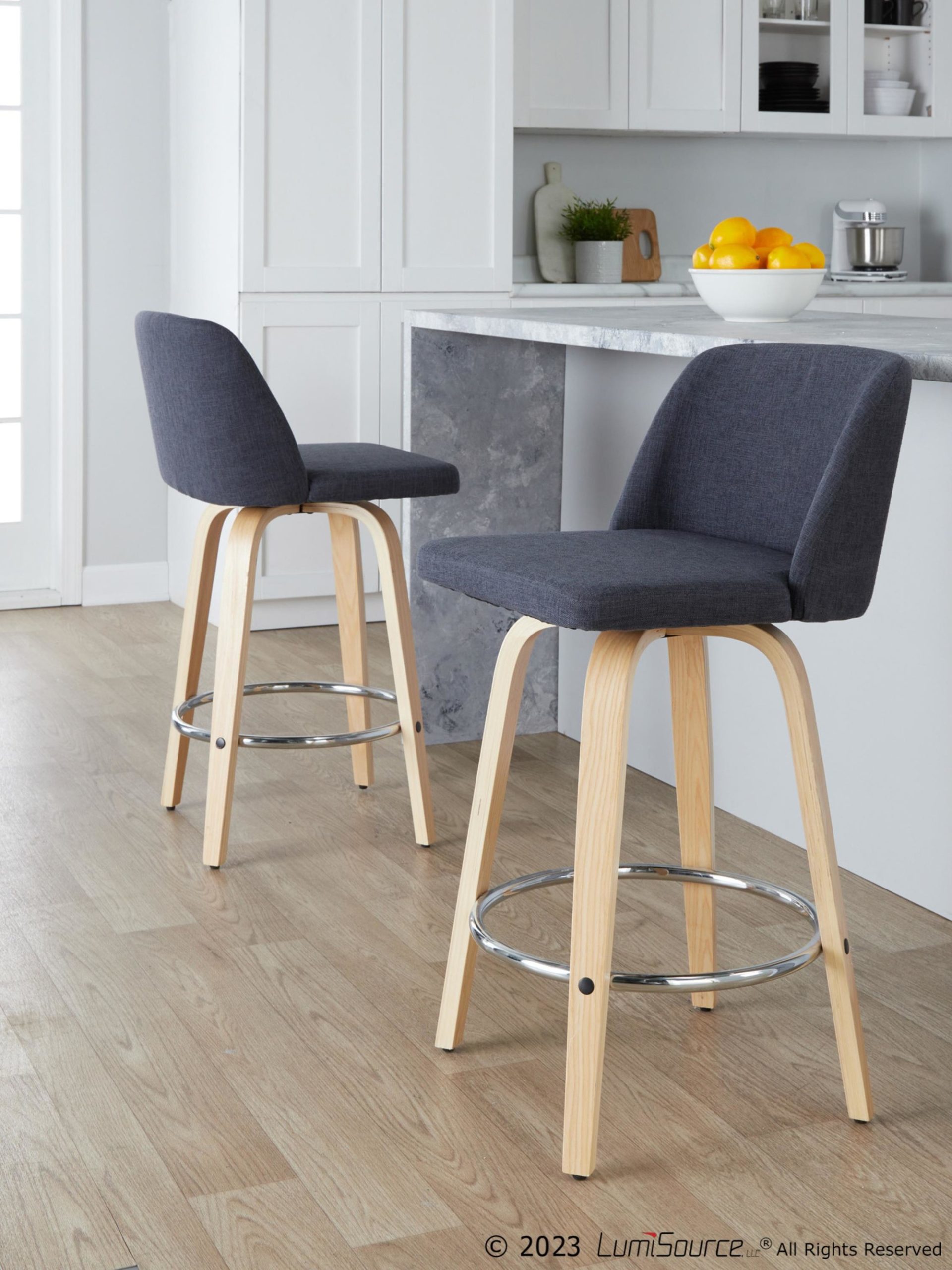 Be the first to review “Toriano 26-Inch Contemporary Swivel Counter Stool in Natural Wood and Blue Fabric (Set of 2) (Set of 2)”