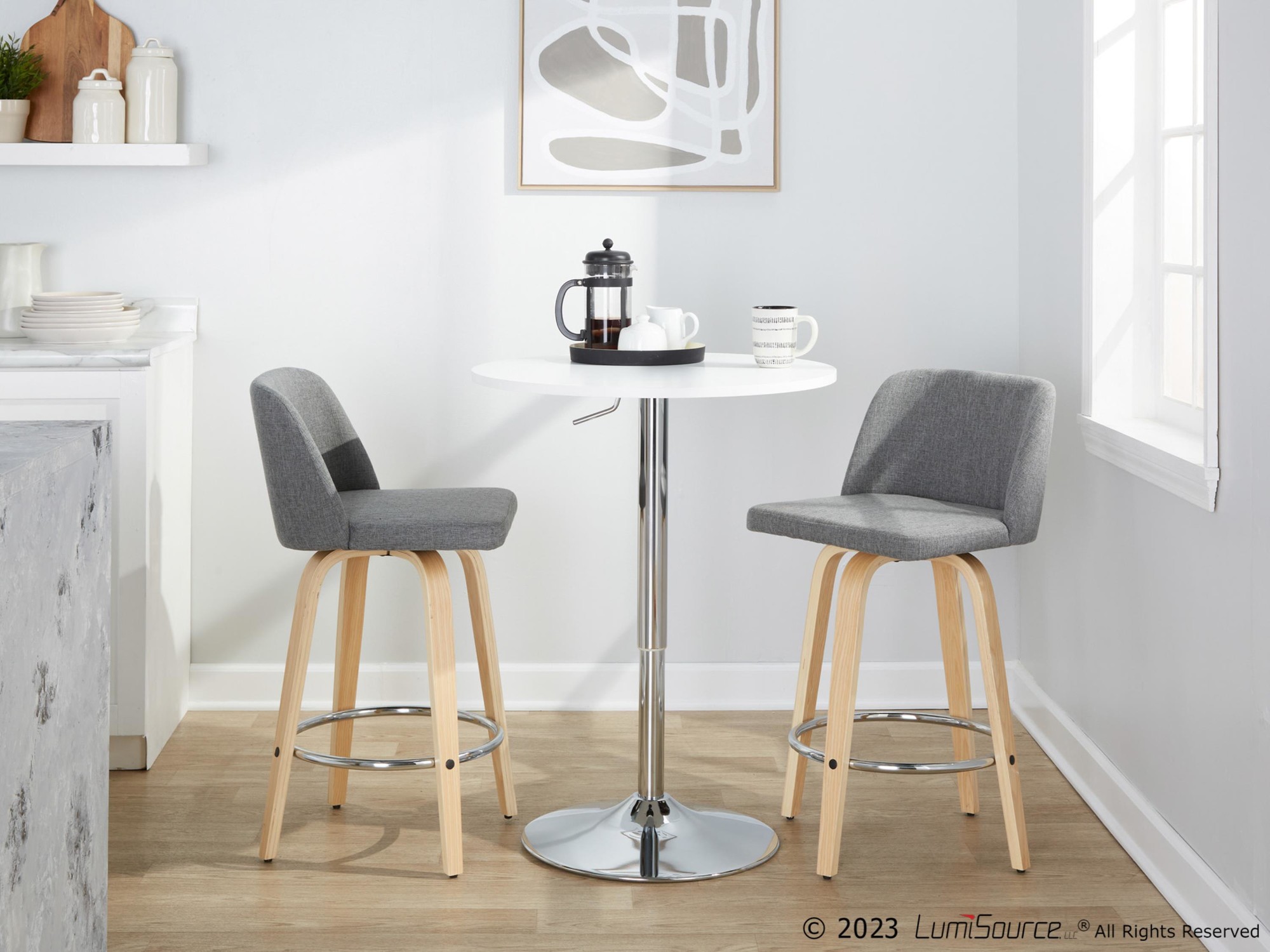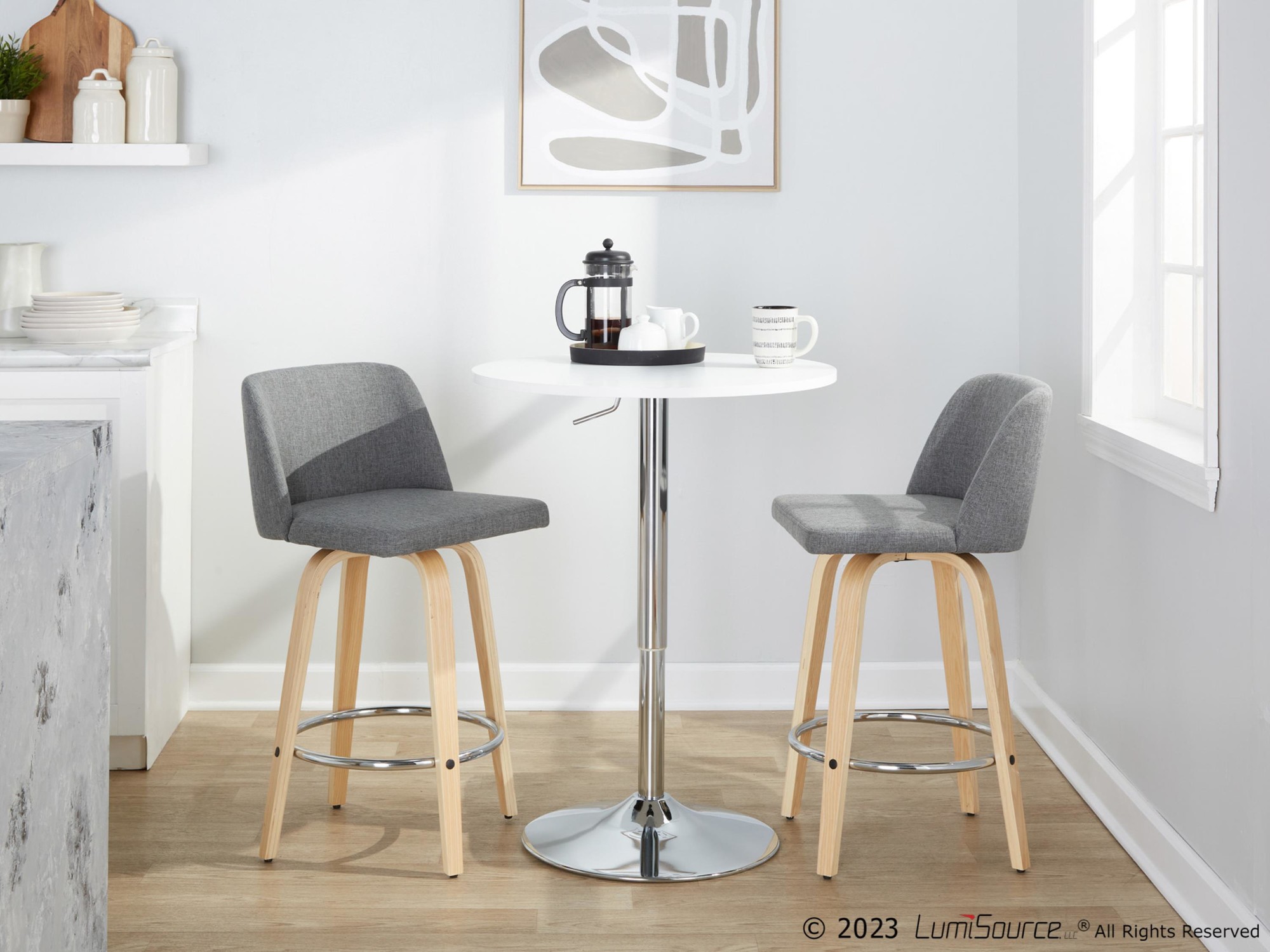 The Toriano 26-Inch Contemporary Grey Swivel Counter Stools offer a harmonious blend of comfort and modern design. With their classic lines and appealing aesthetic, these stools are a stylish addition to any counter area.