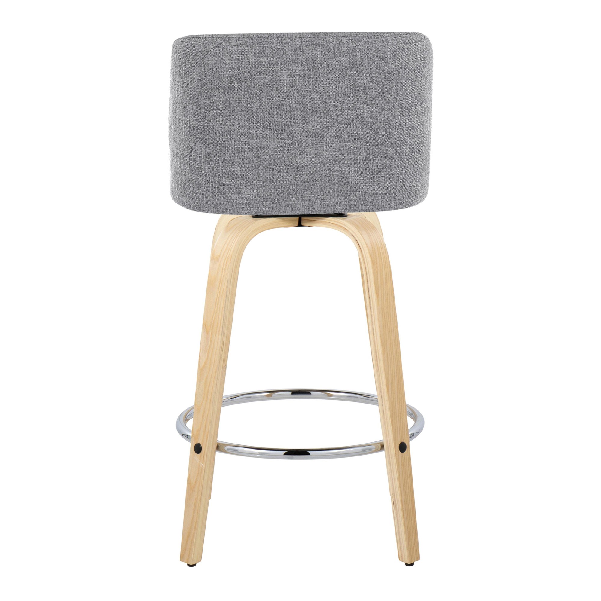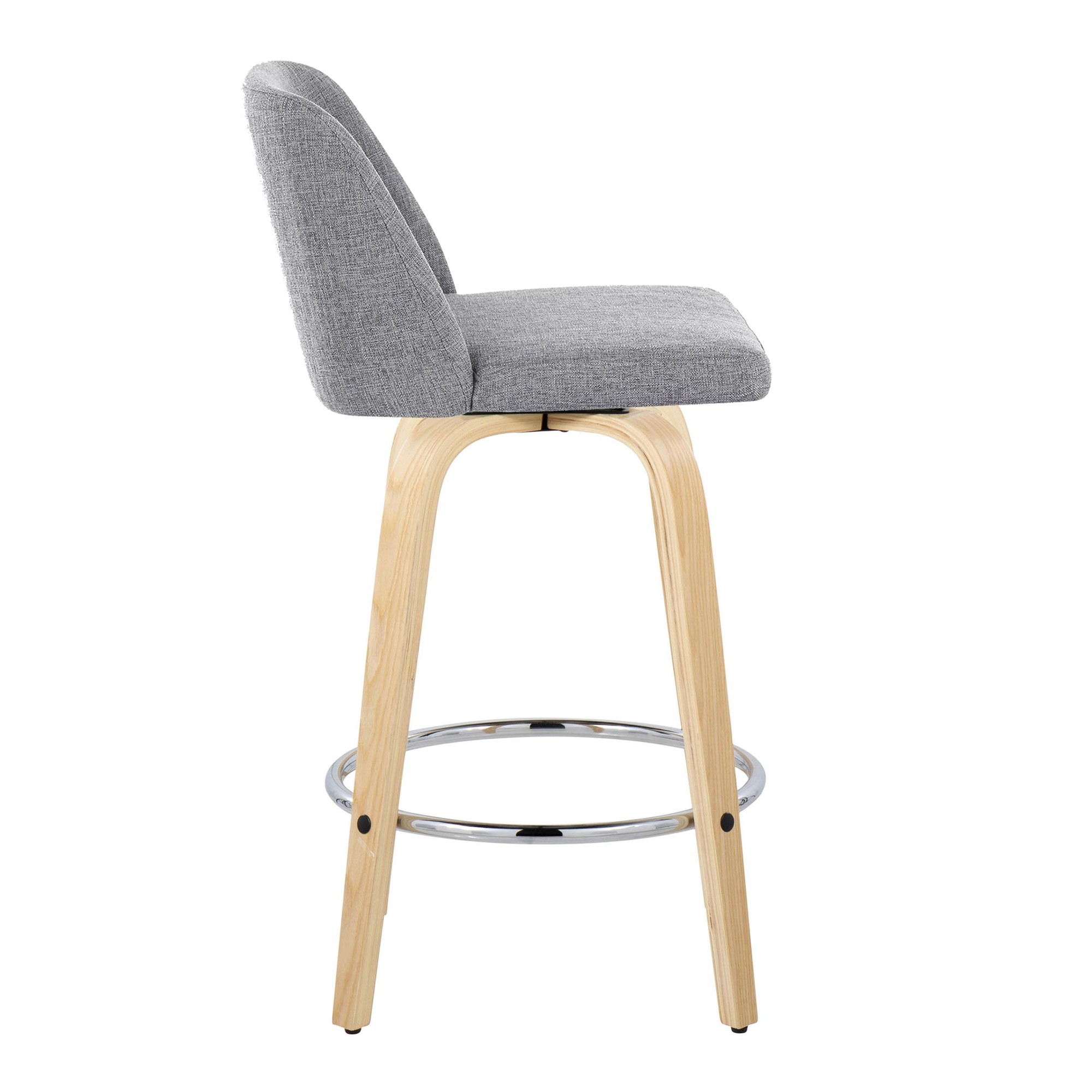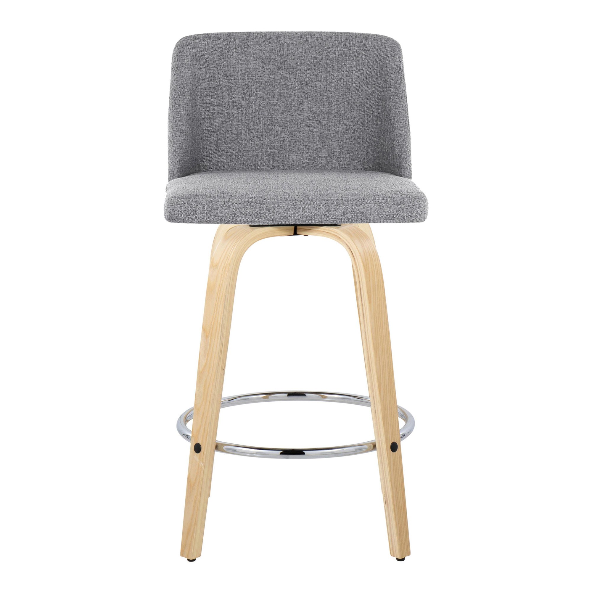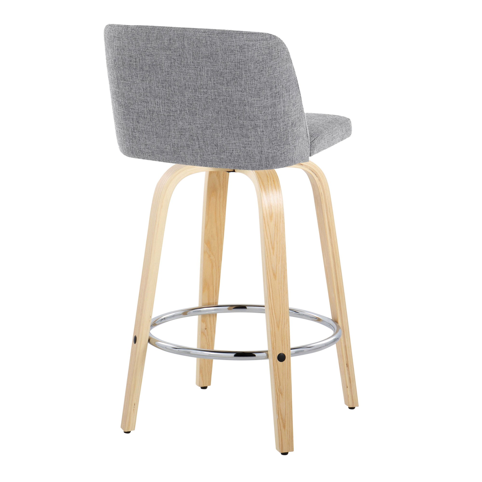 Toriano 26-Inch Contemporary Swivel Counter Stool in Natural Wood and Grey Fabric with Footrest (Set of 2) (Set of 2)