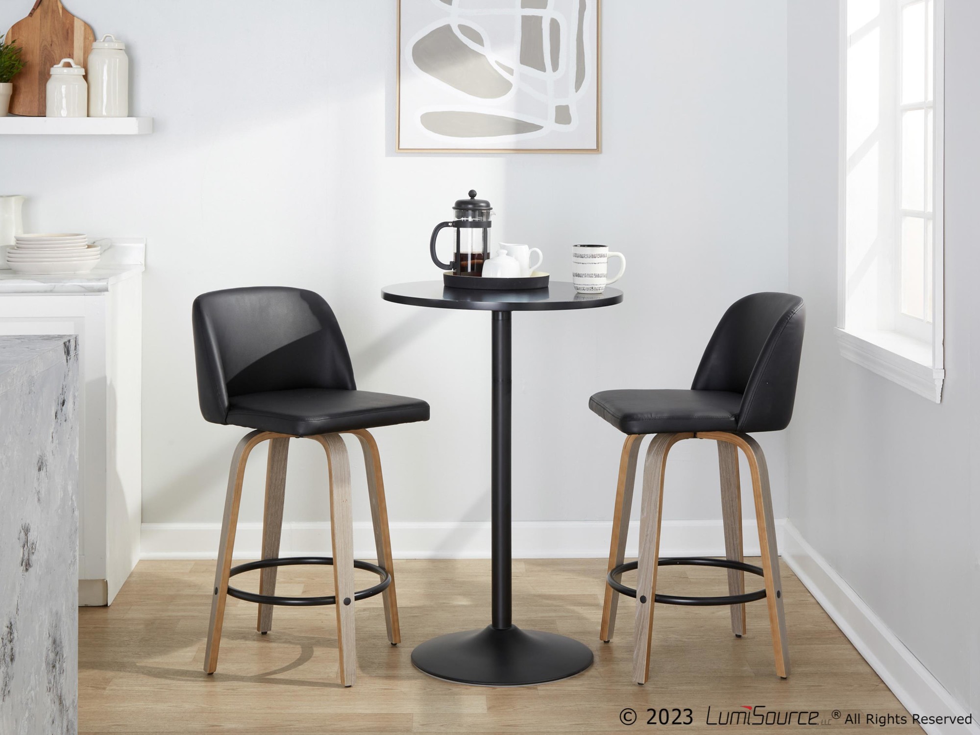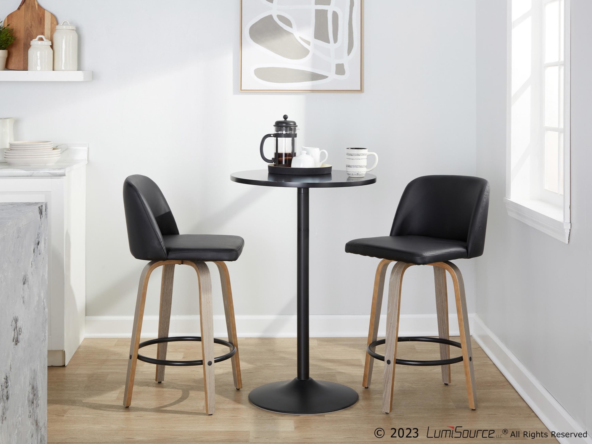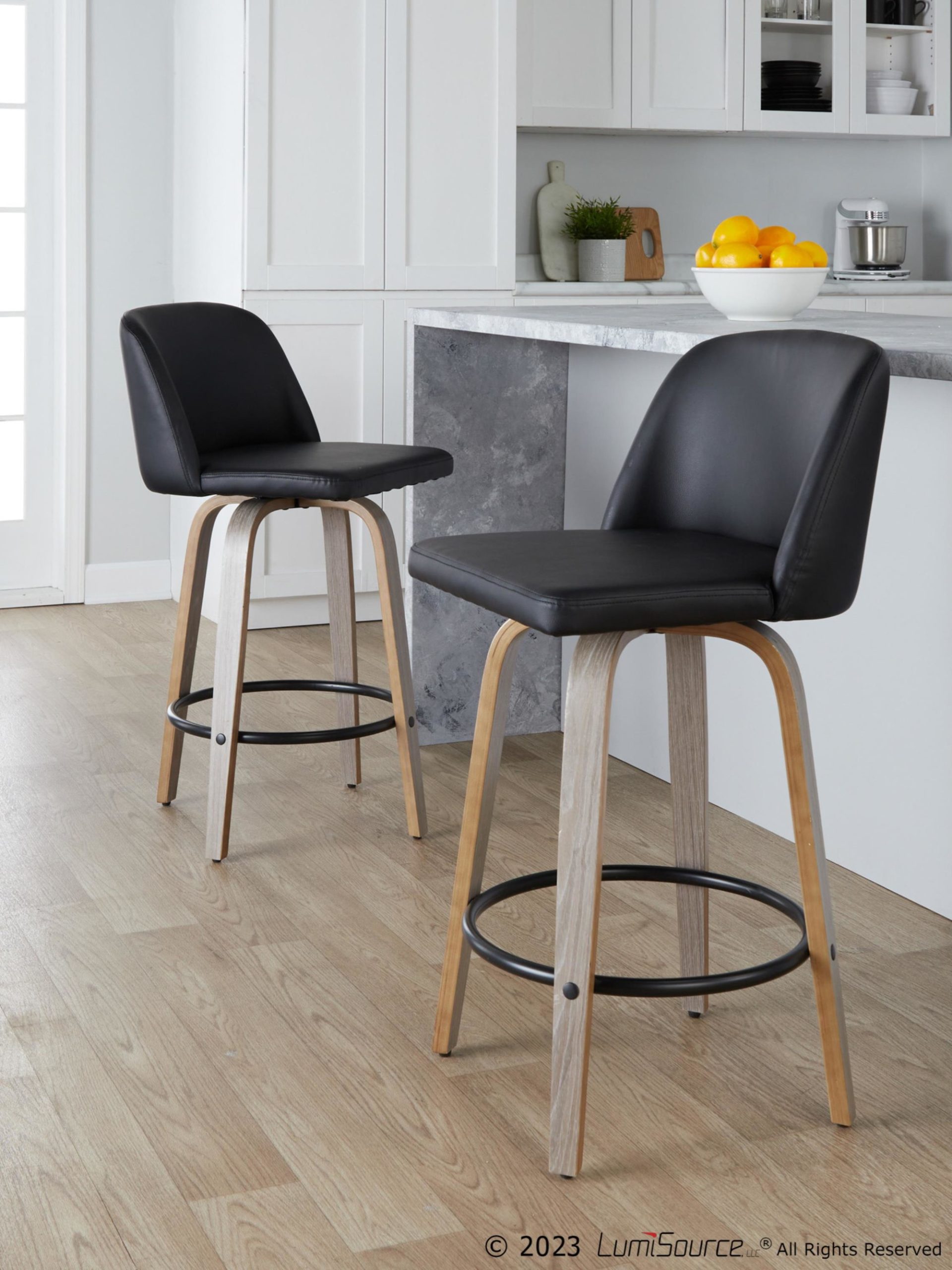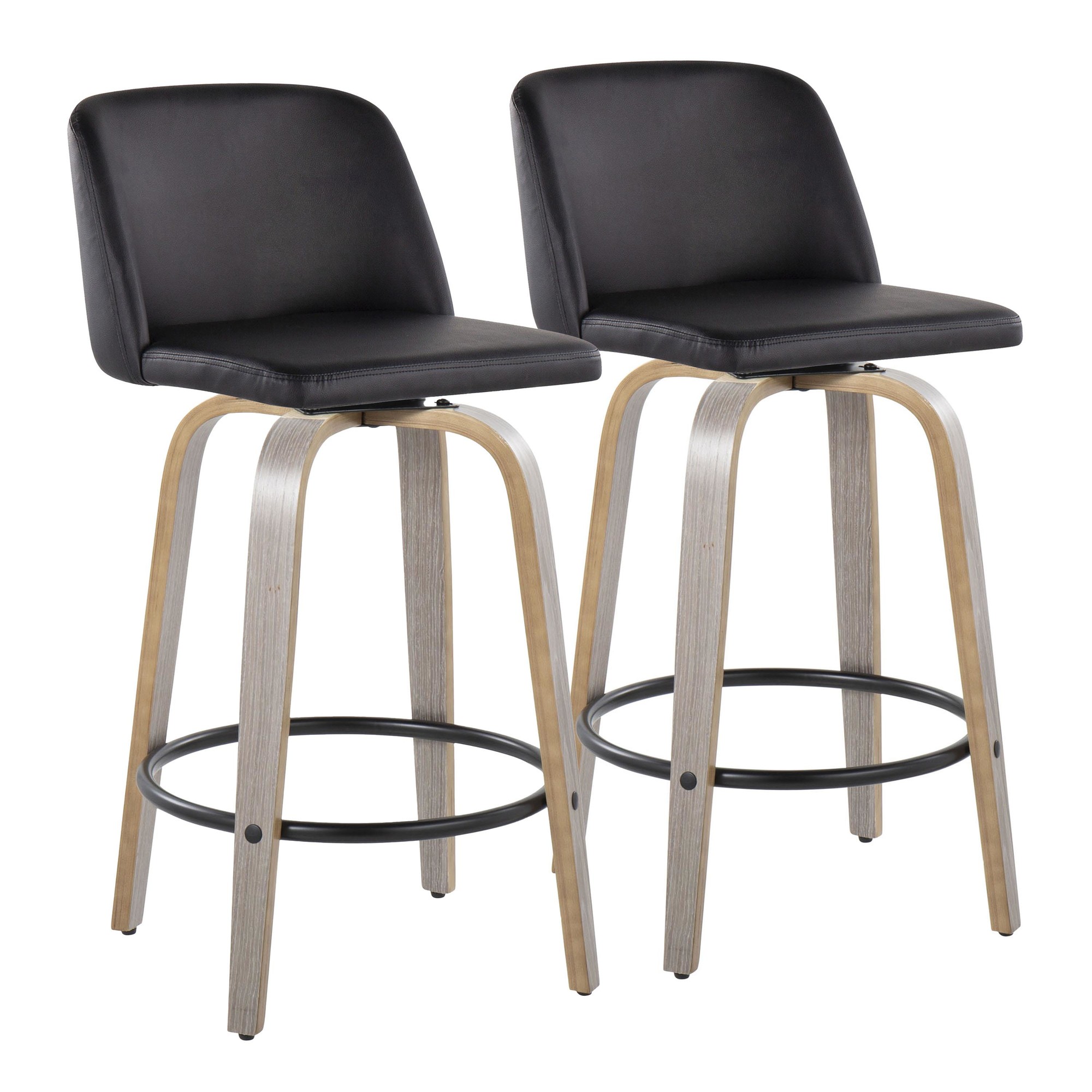Bring comfort and modern style to your man cave with the Toriano 26-Inch Light Grey Contemporary Swivel Counter Stool. This stool has a padded seat with stylish upholstery that will make you want to sit for hours. The 360-degree swivel lets you turn easily. The bent wood legs have a built-in black metal footrest. This fixed-height stool is great for your bar or game room. Each order includes two counter stools. Assembly is needed. Dimensions: 19″L × 17.5″W × 35.5″H. Seat Height: 25.5″. Weight Limit: 250 lbs. Color: Light Grey/Black.