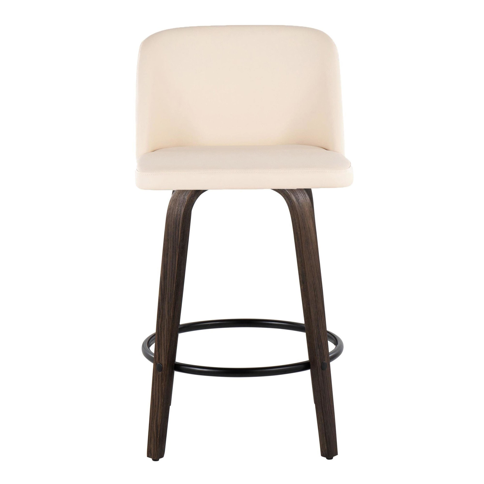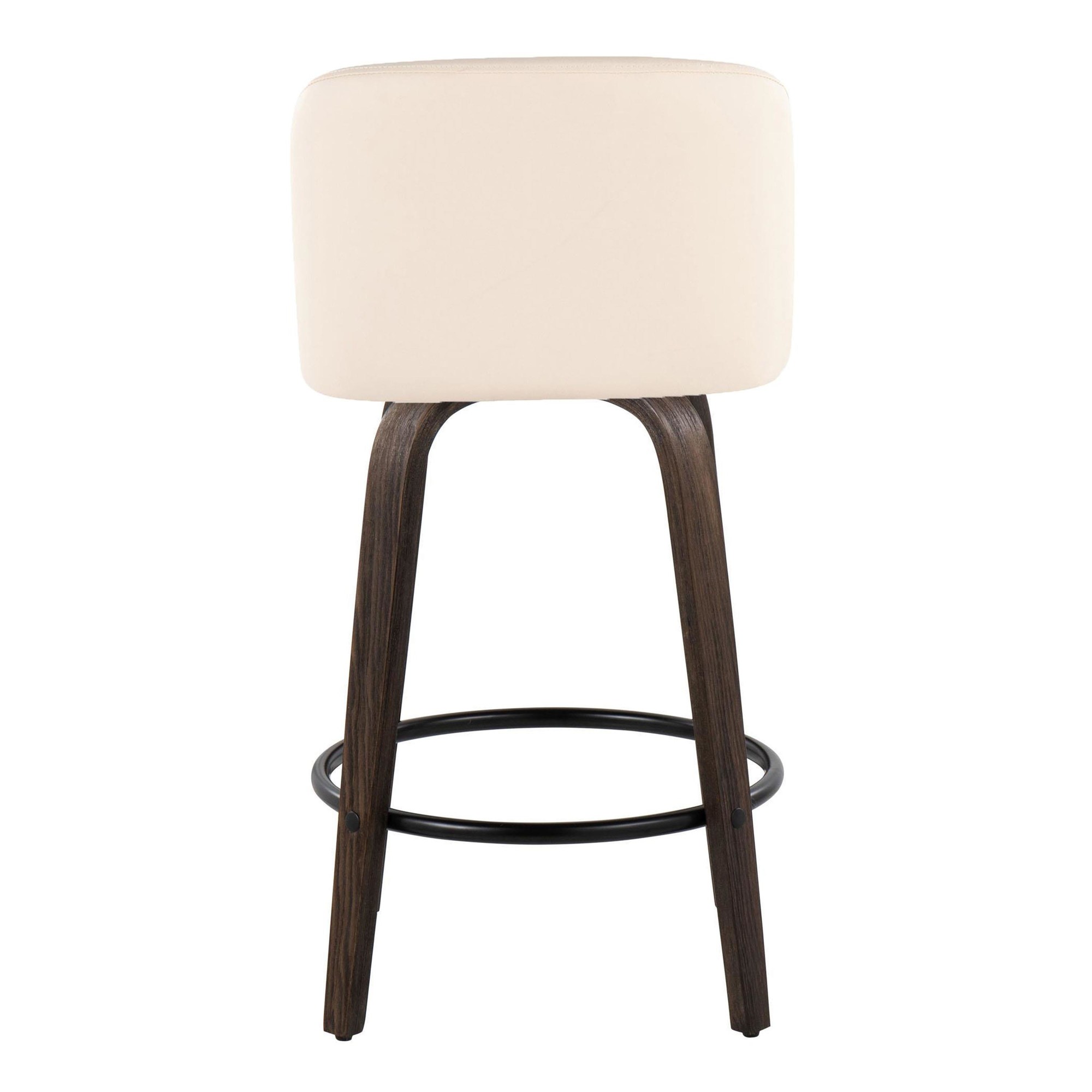 These Toriano Fixed-Height Counter Stools blend comfort and modern simplicity with classic lines, making them a fantastic addition to your space. The padded, upholstered swivel seat provides a comfortable spot to sit, while the fixed-height bent wood legs offer stability and style. A built-in footrest adds extra comfort.