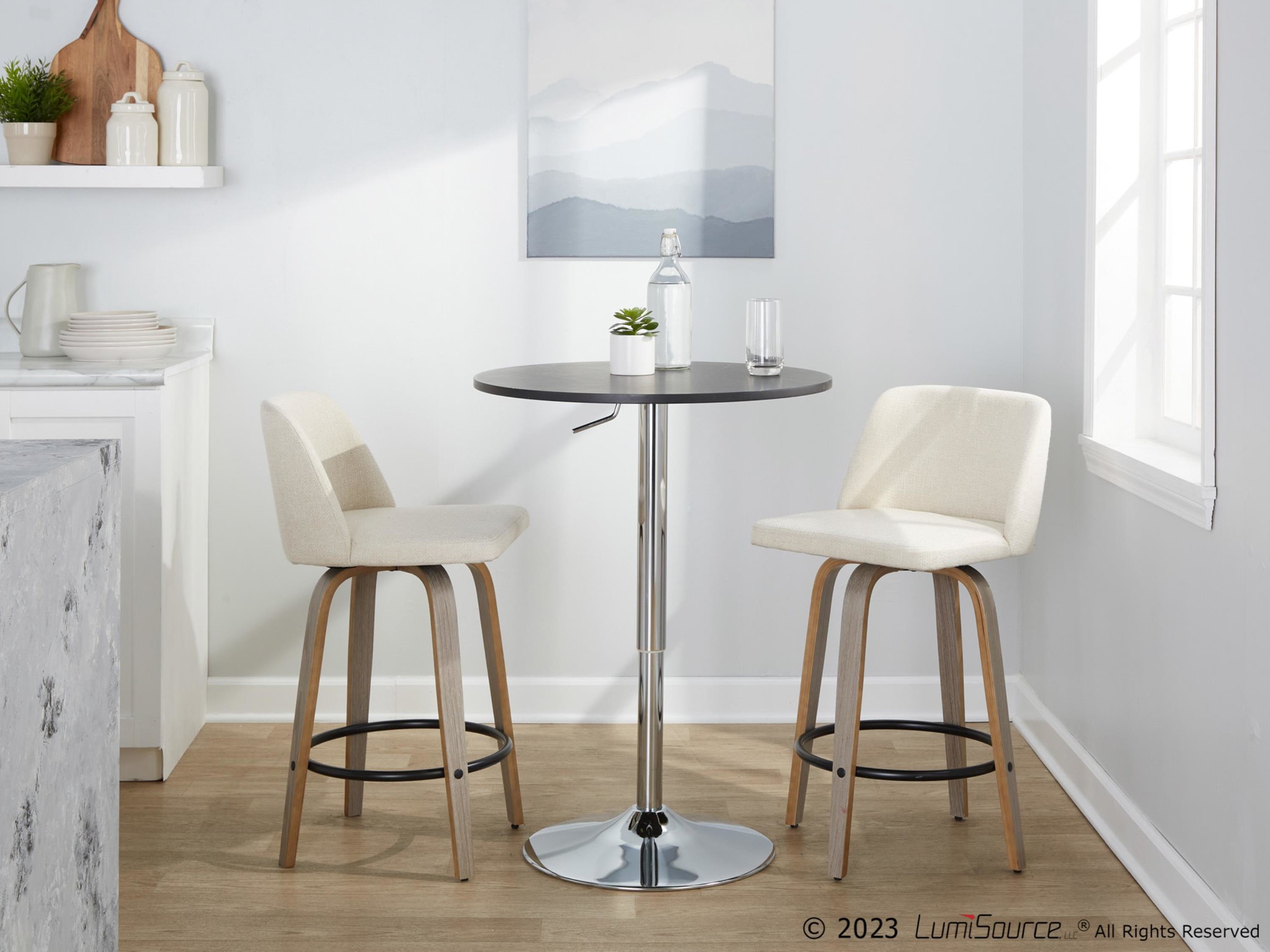 - Includes: Two counter stools