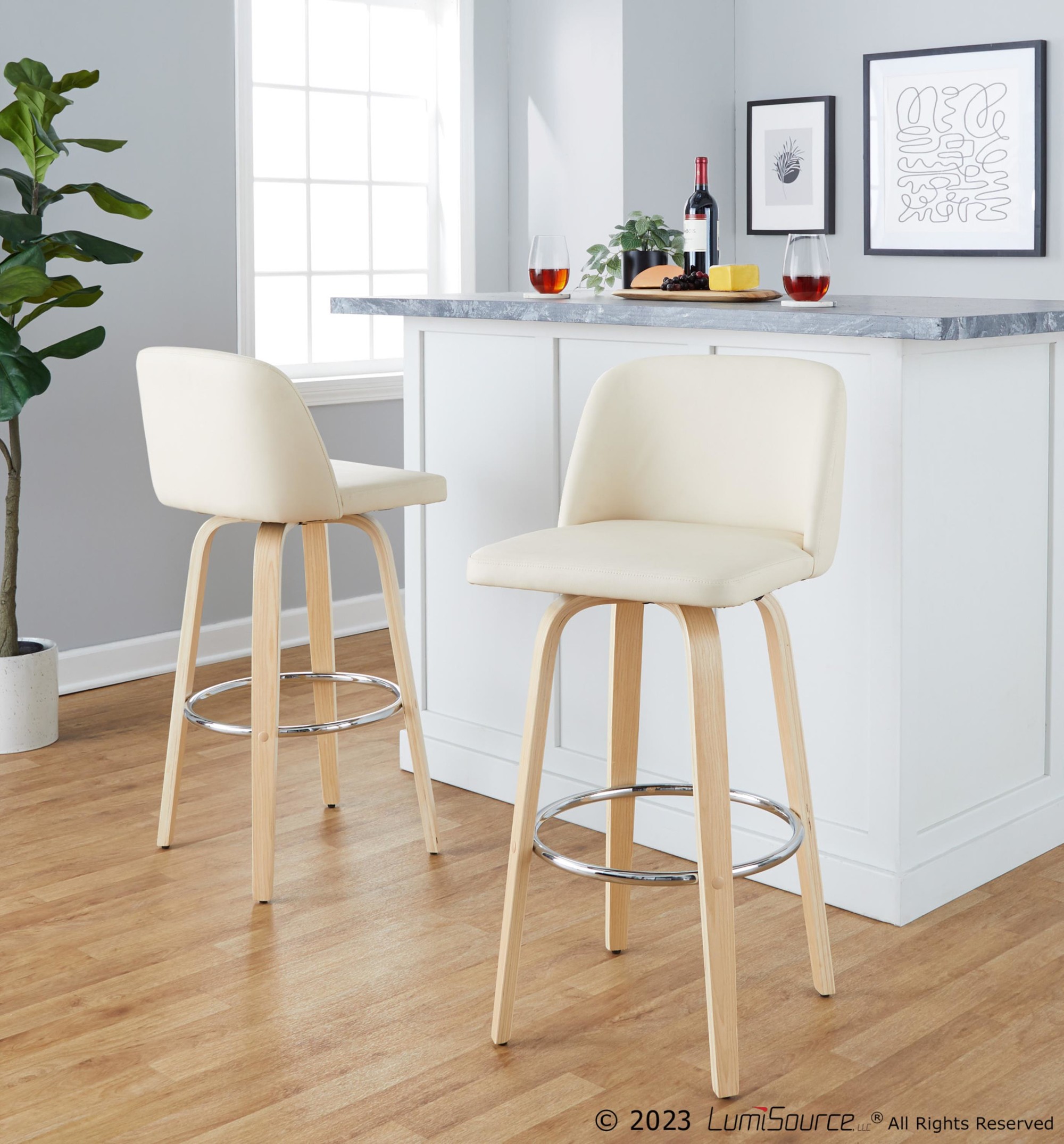 Toriano 30″ Contemporary Natural Wood and Cream Barstools (Set of 2)