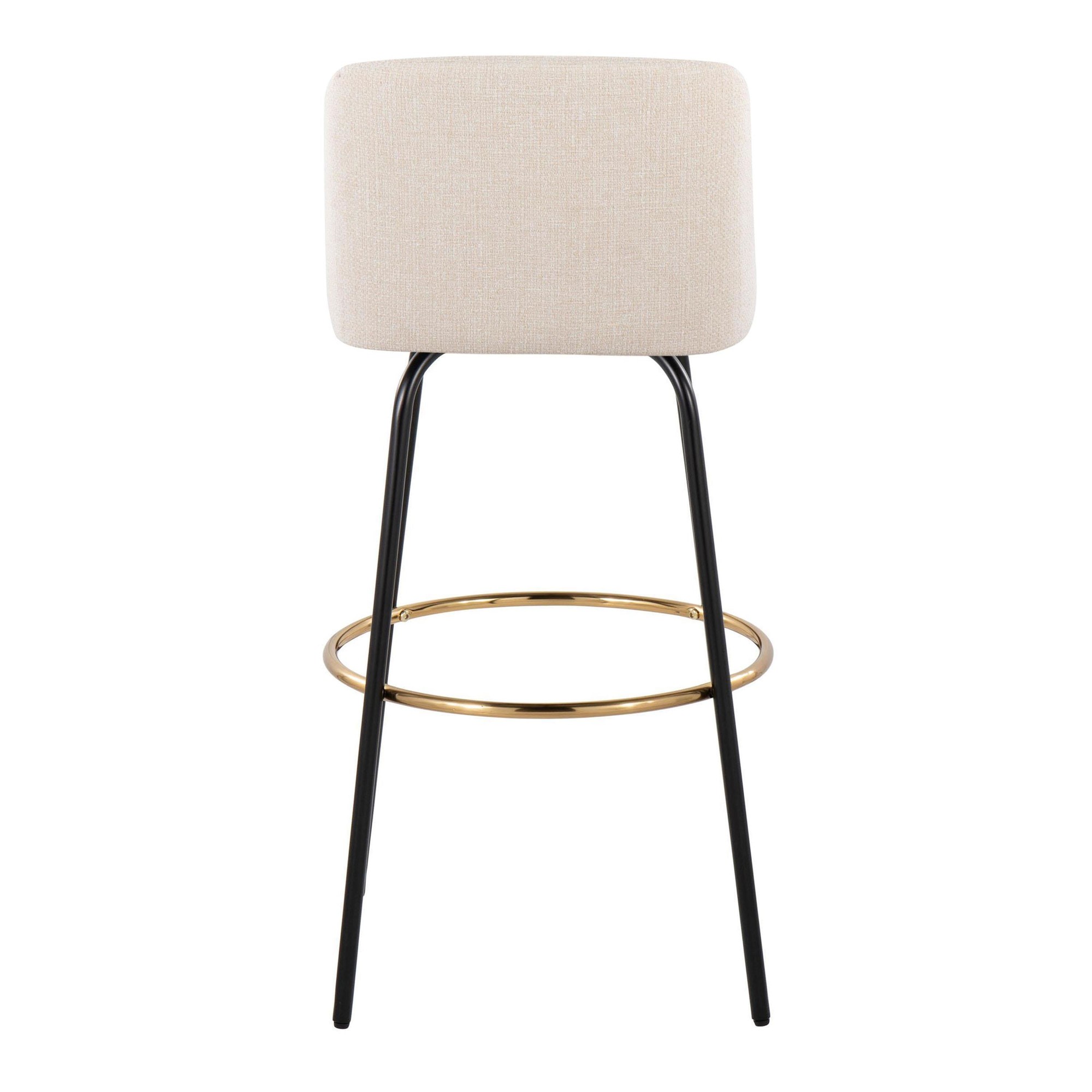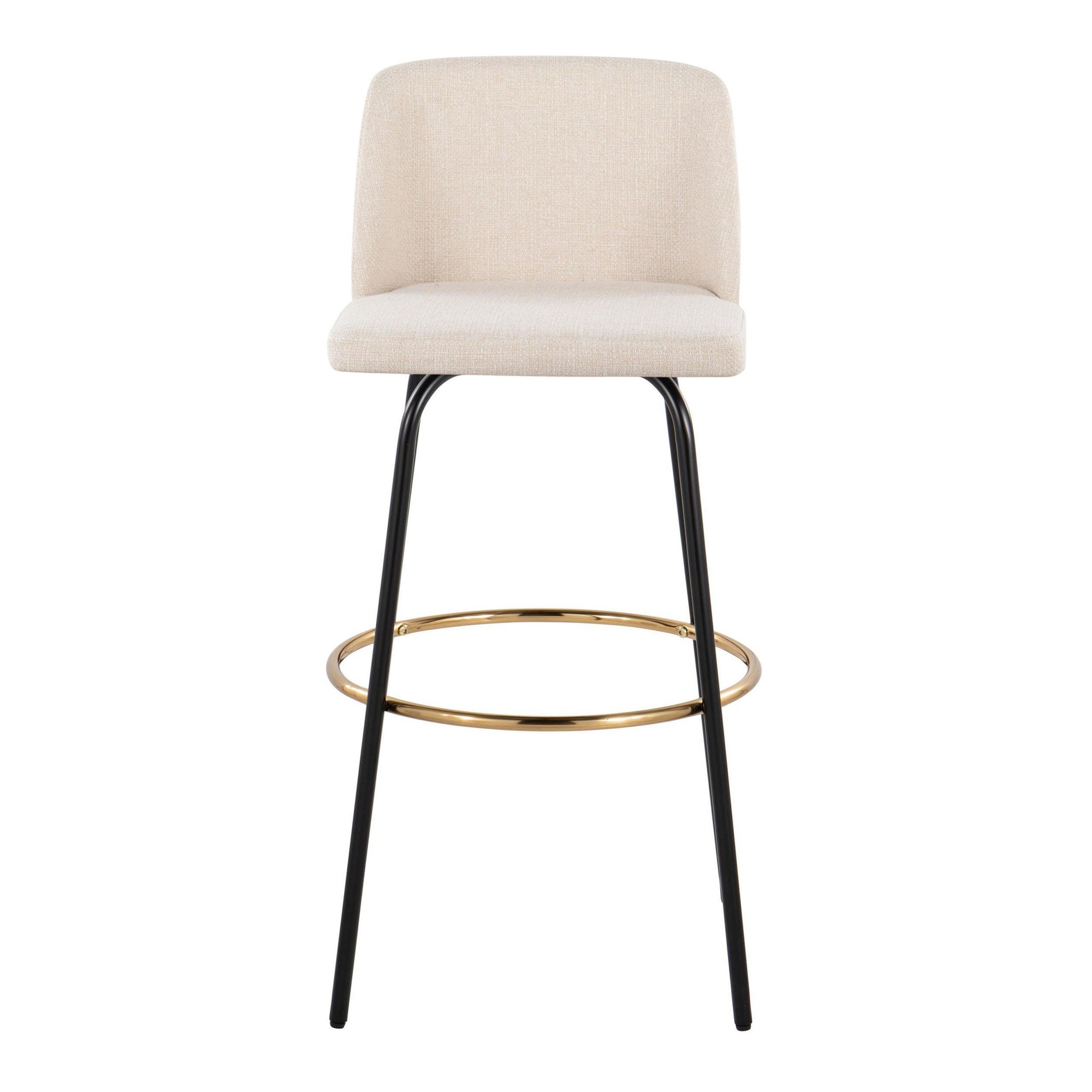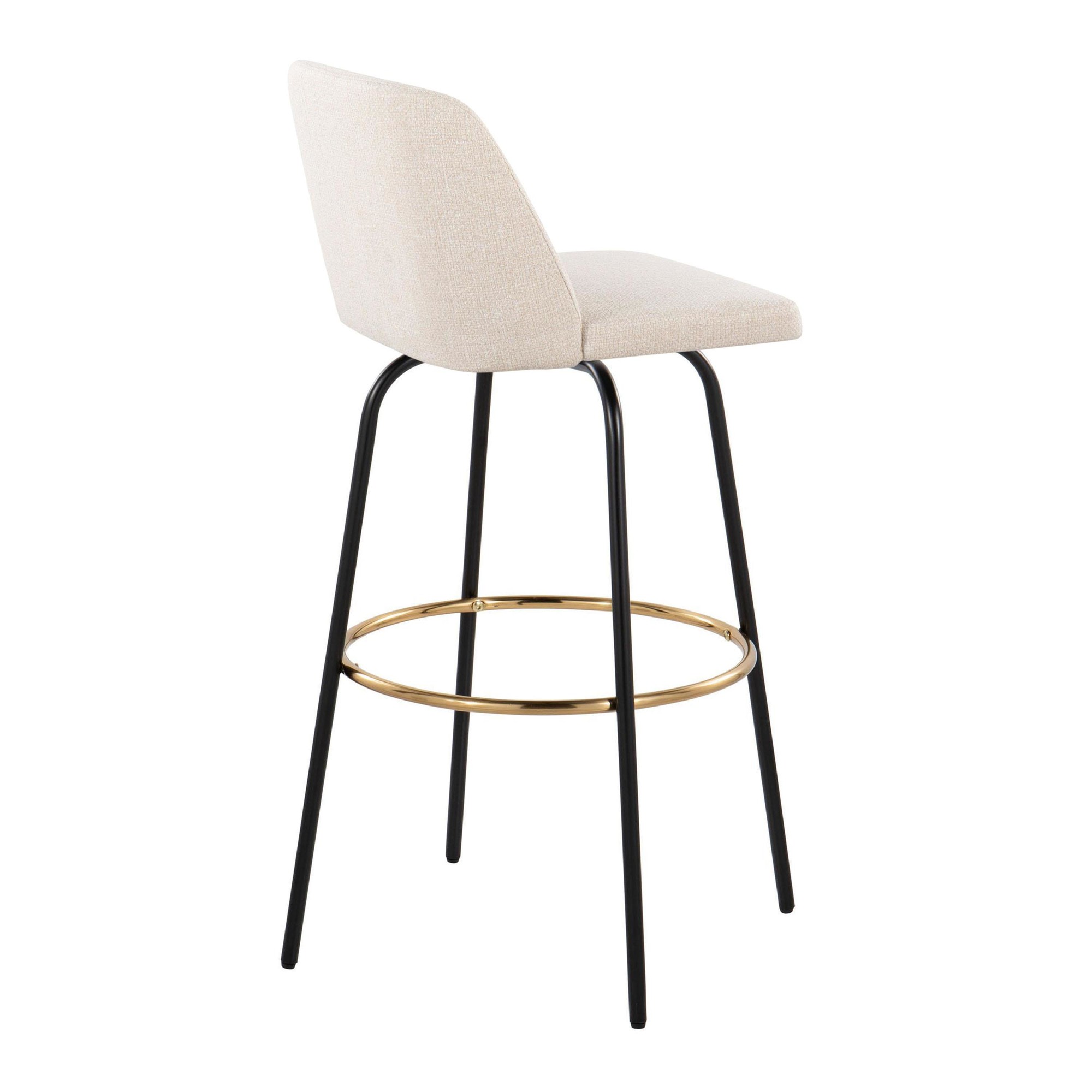 The Toriano 30-Inch Cream Contemporary Swivel Barstools combine comfort, modern simplicity, and classic design. These barstools will bring a touch of elegance to your man cave. Each stool features a padded, upholstered seat and a supportive backrest, perfect for long evenings of relaxation. The fixed-height metal legs include a convenient footrest, ensuring maximum comfort. These stools are sold in pairs.