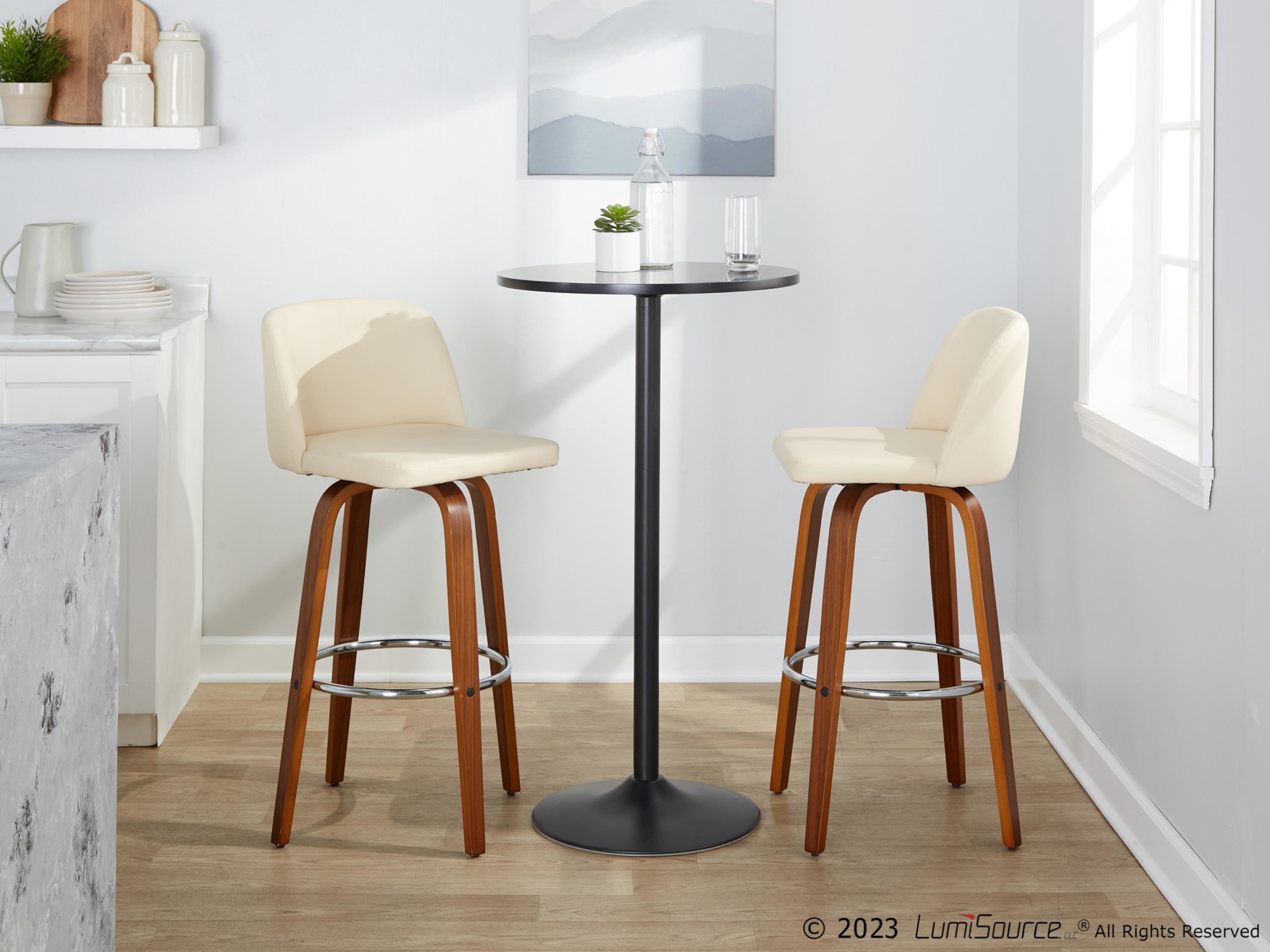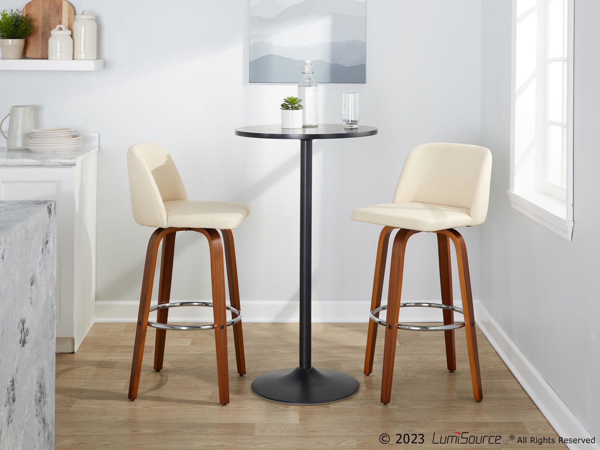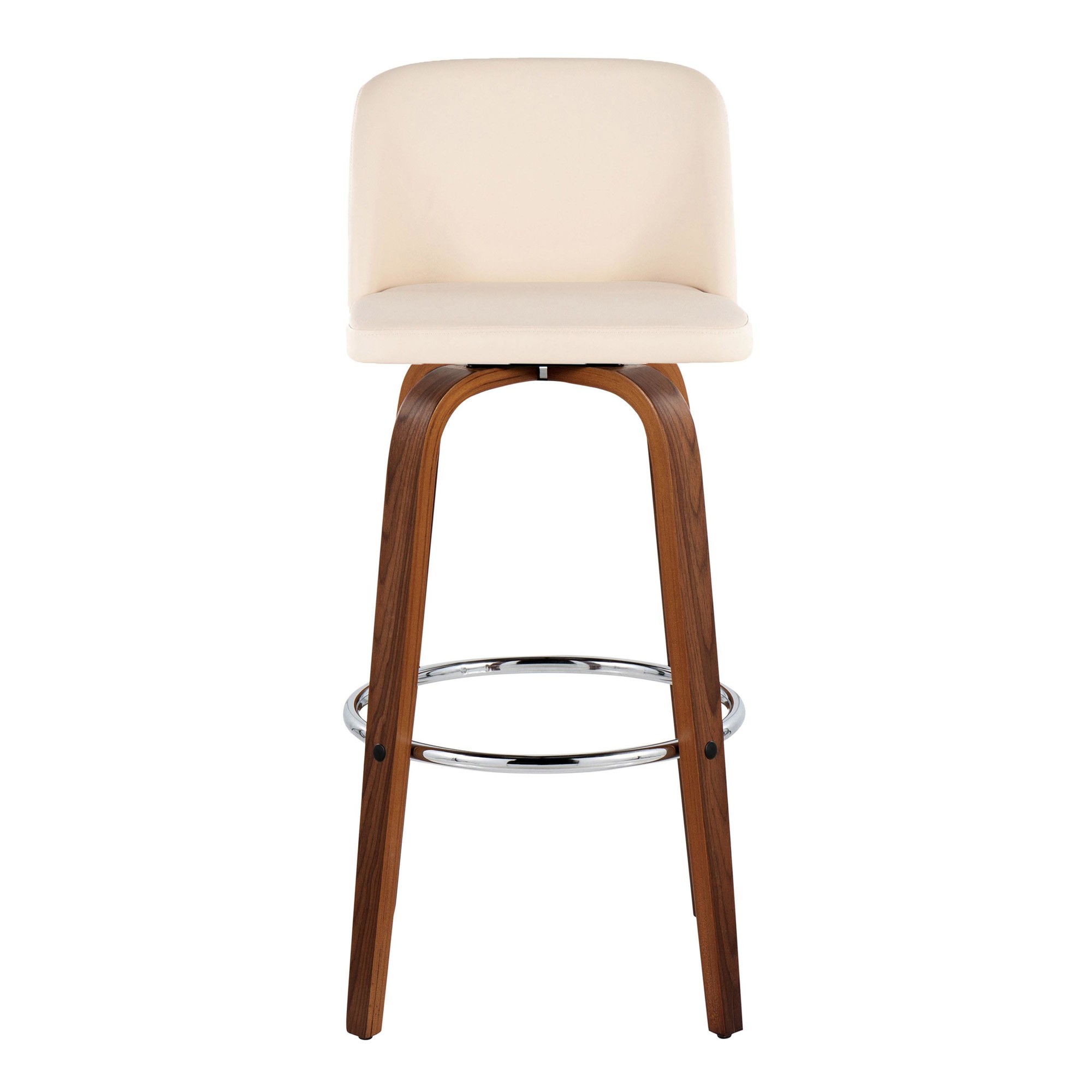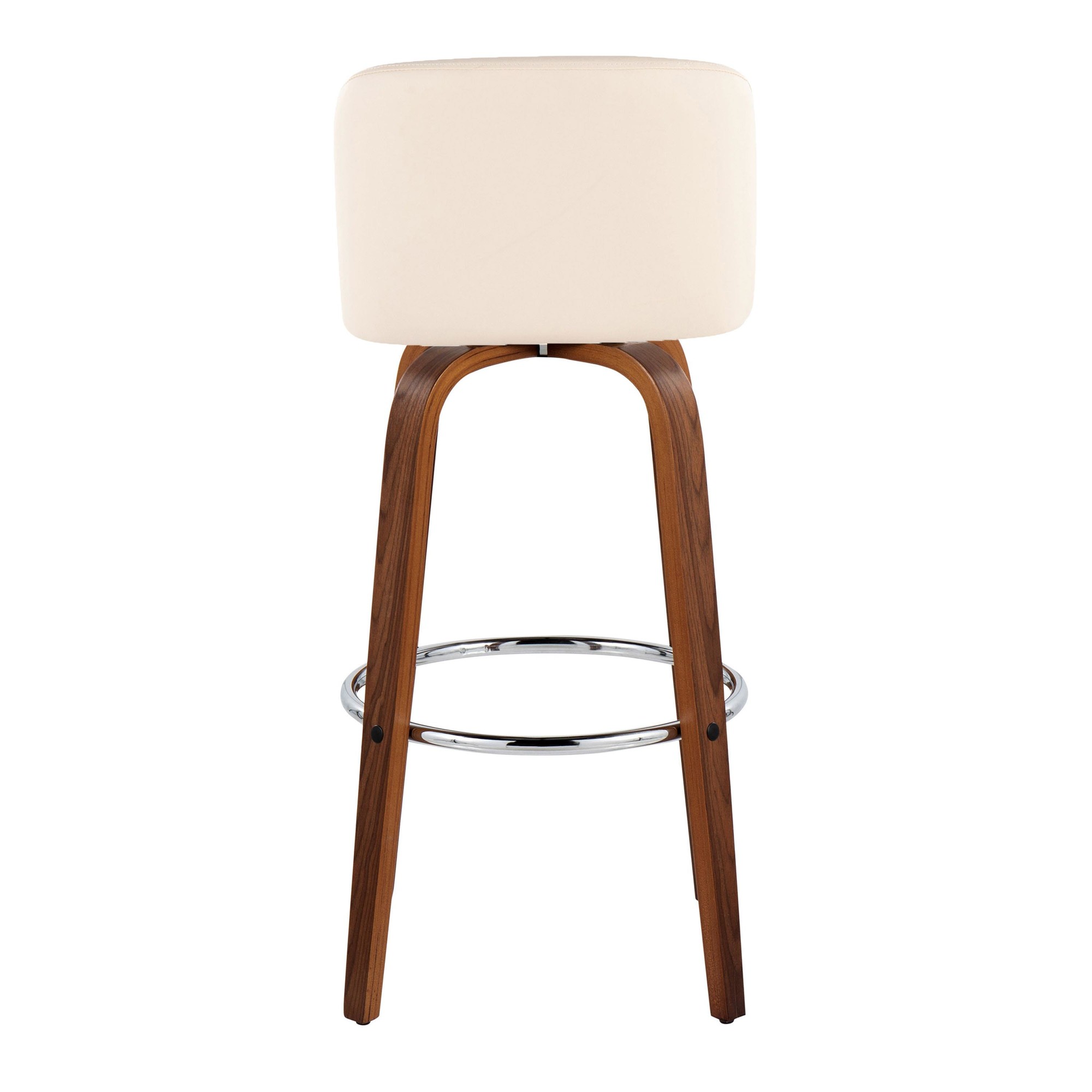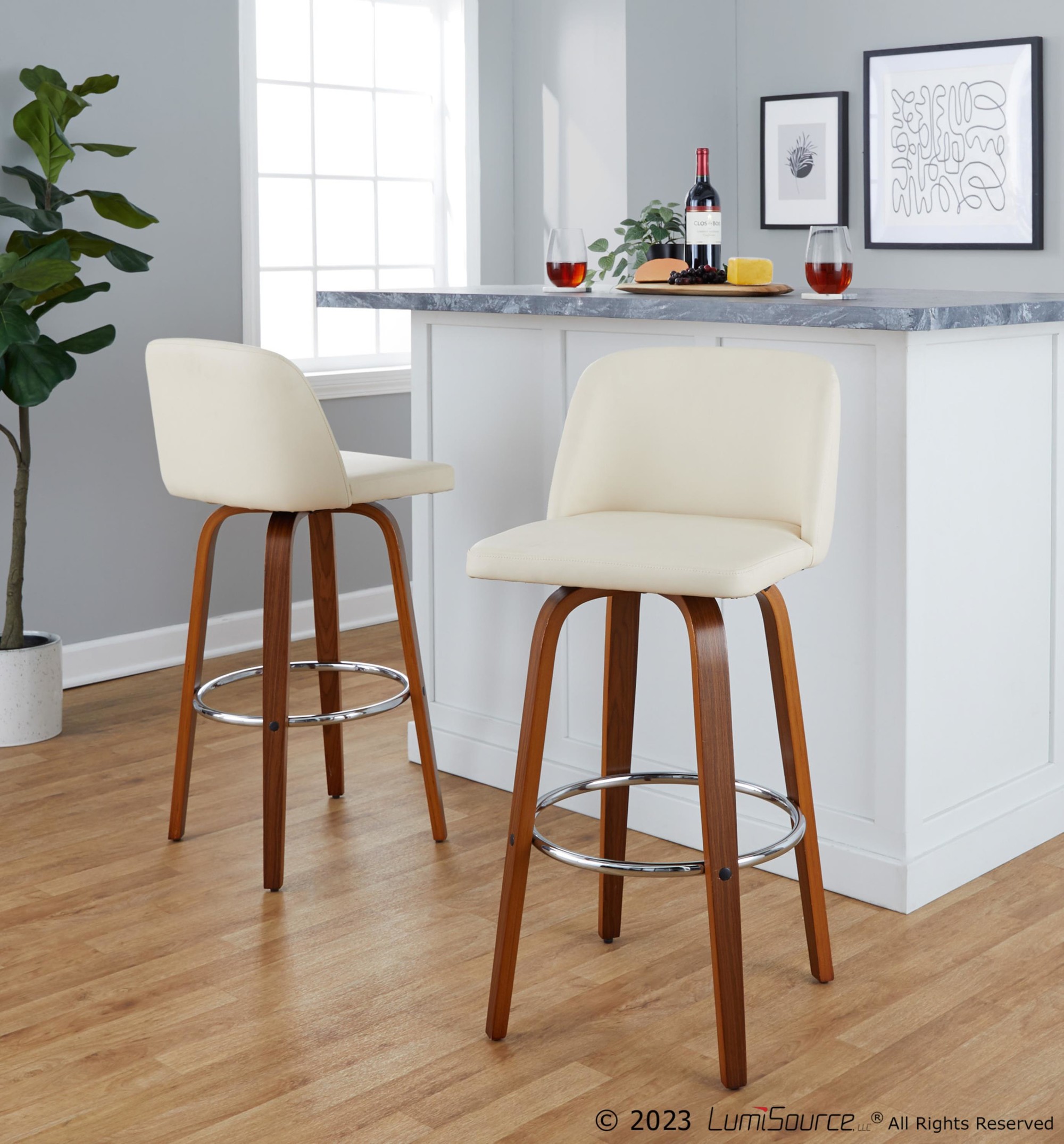 Toriano 30-Inch Walnut Cream Faux Leather Swivel Barstool (Set of 2)