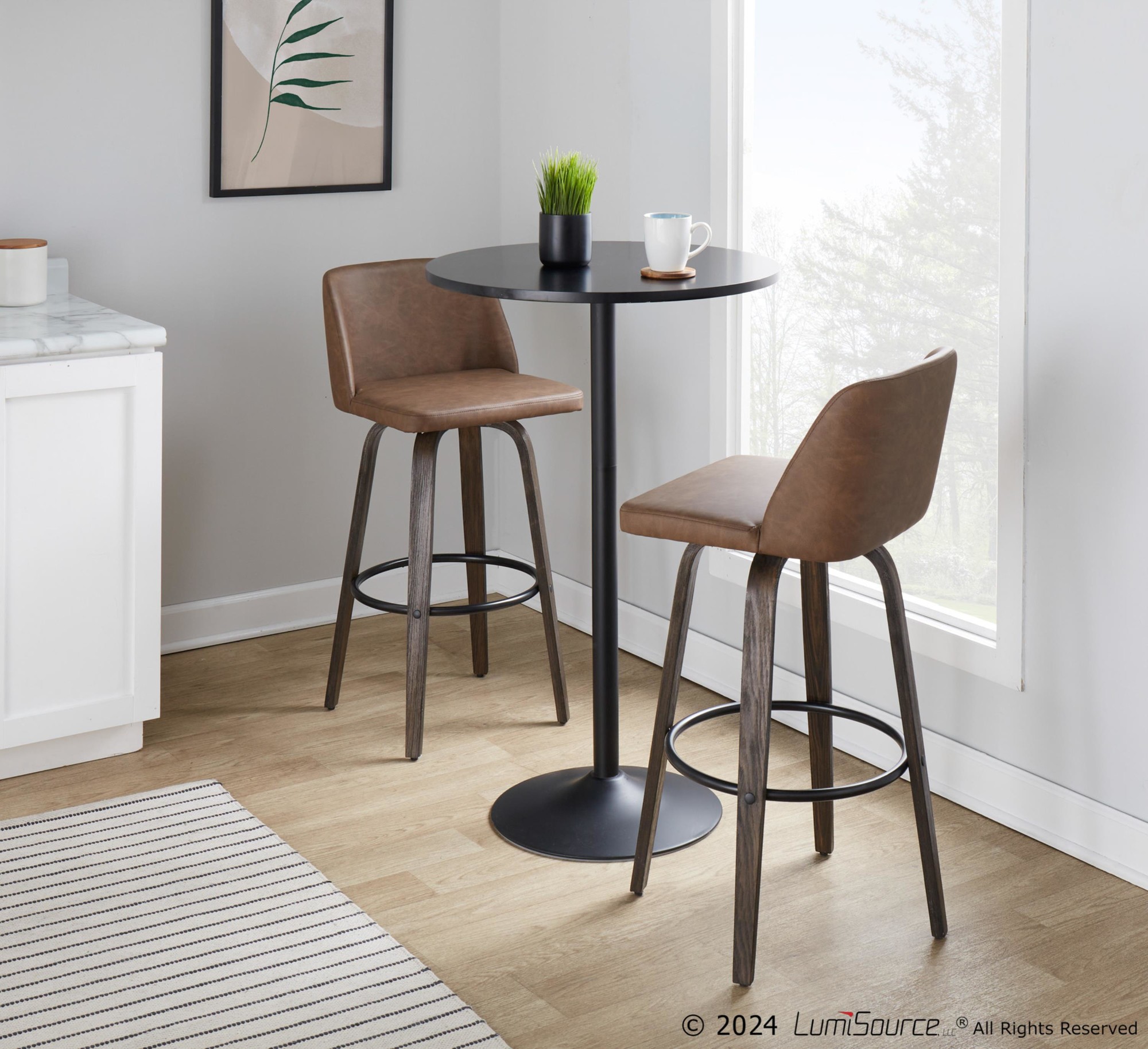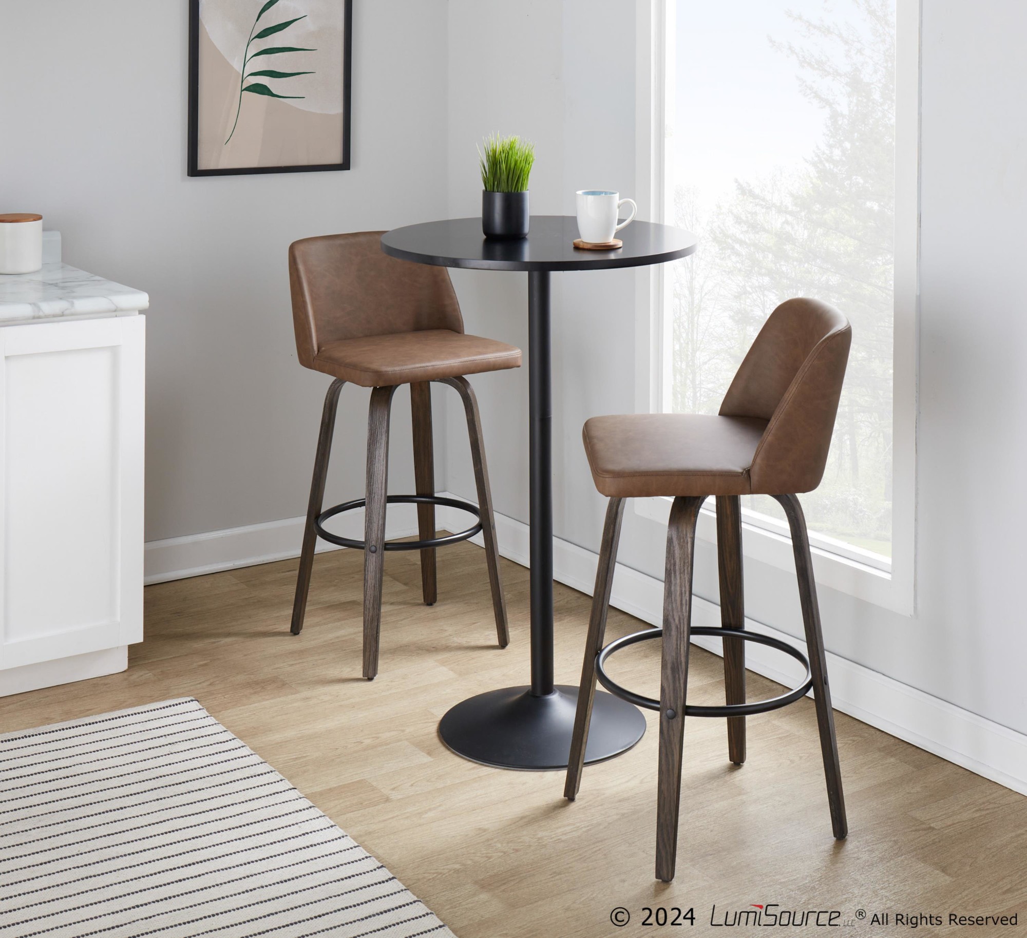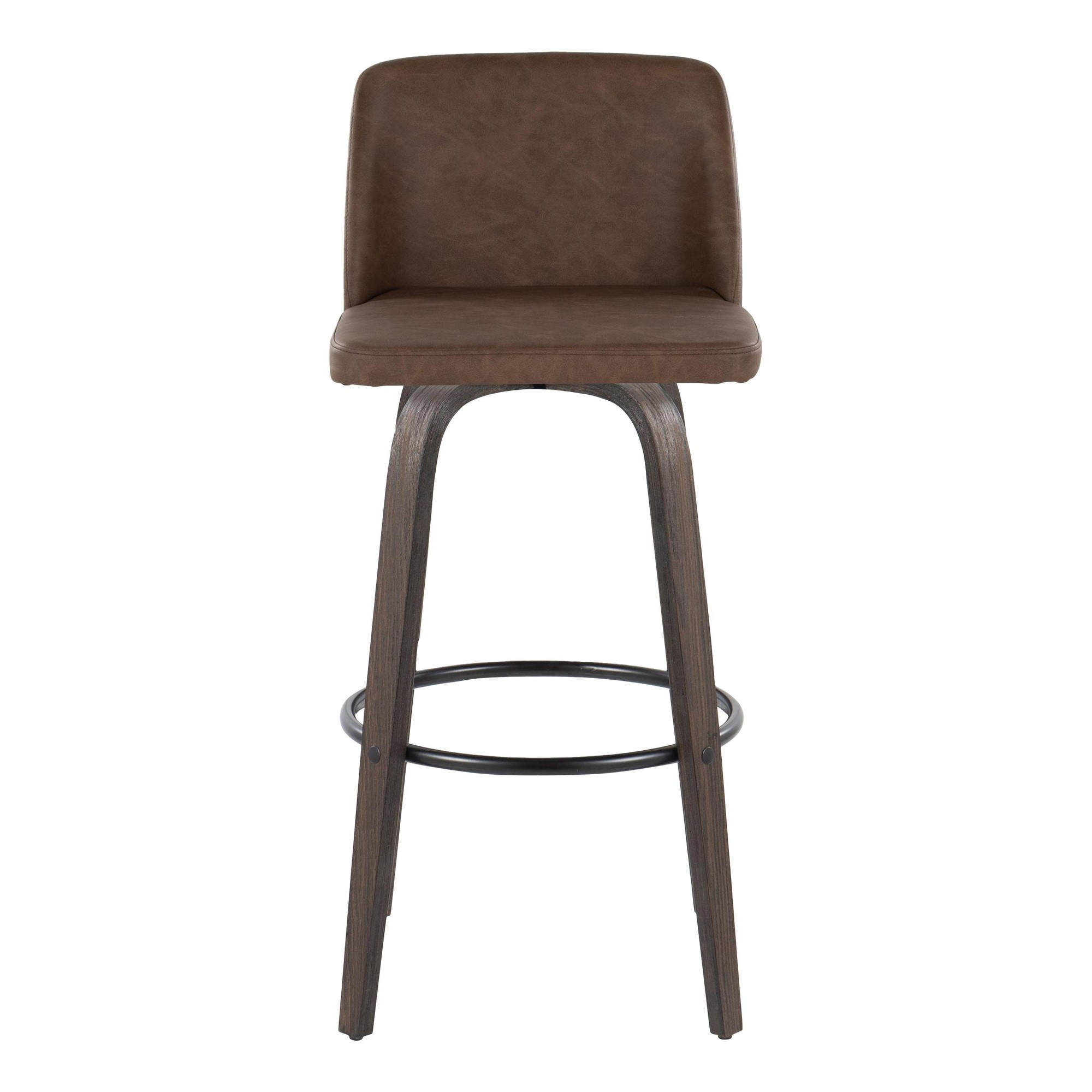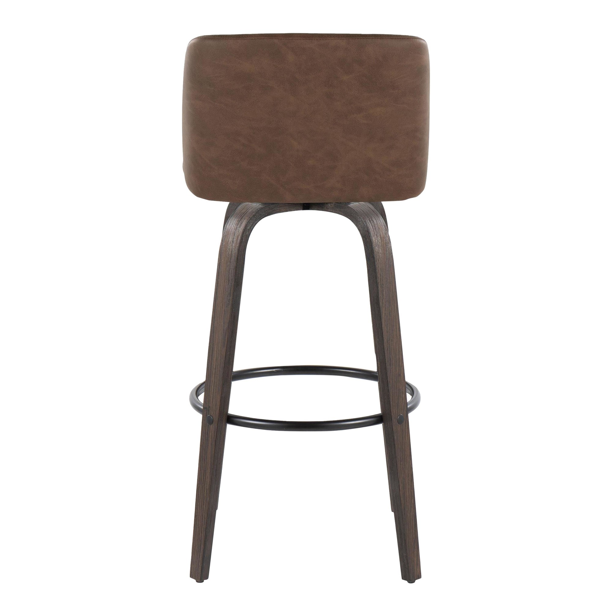 The Toriano 30-Inch Mid-Century Modern Swivel Barstools blend comfort, modern simplicity, and classic lines, making them an appealing addition to any space. These barstools feature a padded, upholstered swivel seat atop fixed-height bent wood legs, complete with a built-in footrest for added comfort.
