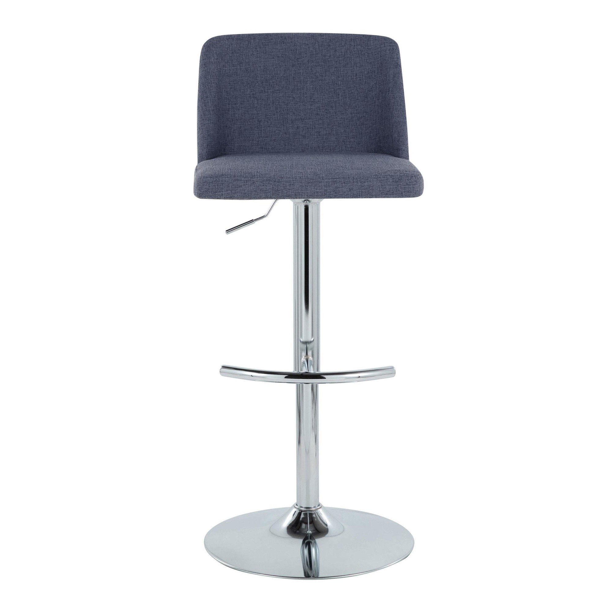 Enjoy the comfort of the cushioned seat and backrest, upholstered in soft blue fabric, as you relax on the 360-degree swivel. The contemporary-inspired pedestal base, complete with a rounded footrest, adds a touch of modern elegance while providing support. This set includes two barstools, perfect for creating a cozy and inviting atmosphere.