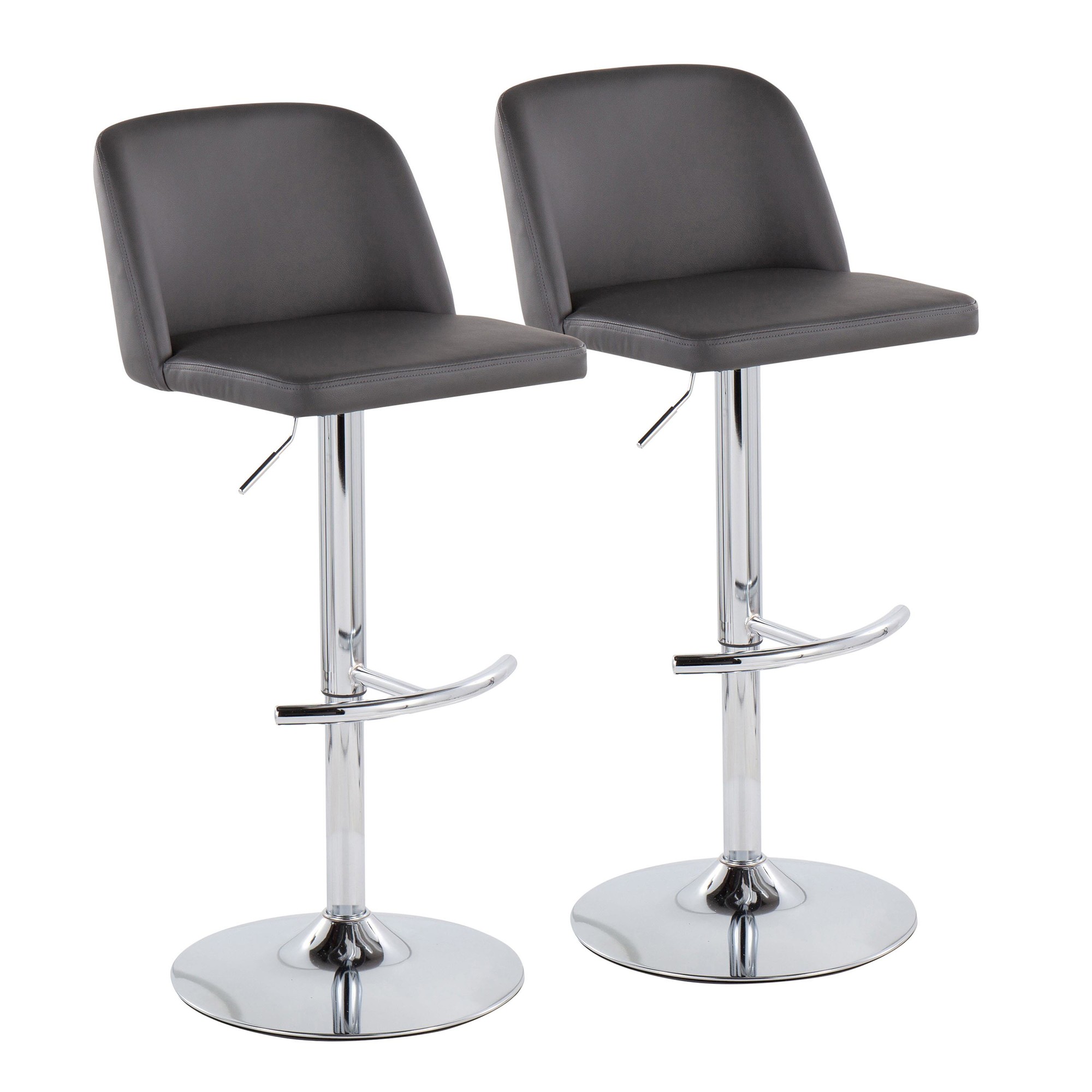 Toriano Contemporary Chrome Grey Faux Leather Adjustable Bar Stool (Set of 2)