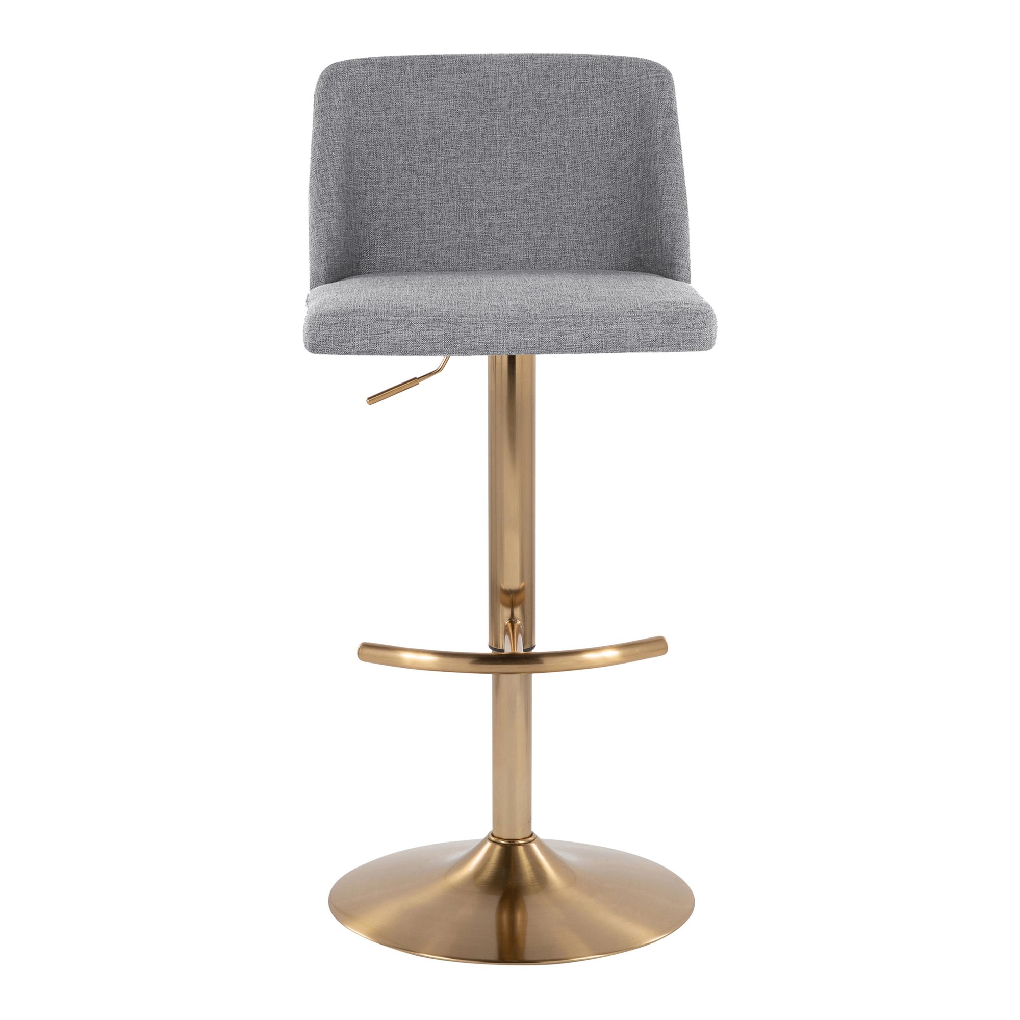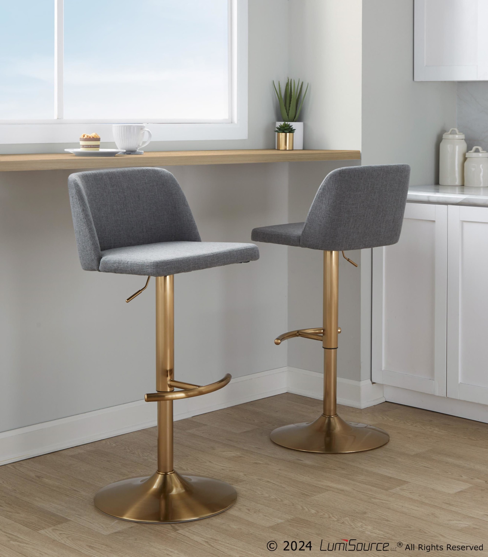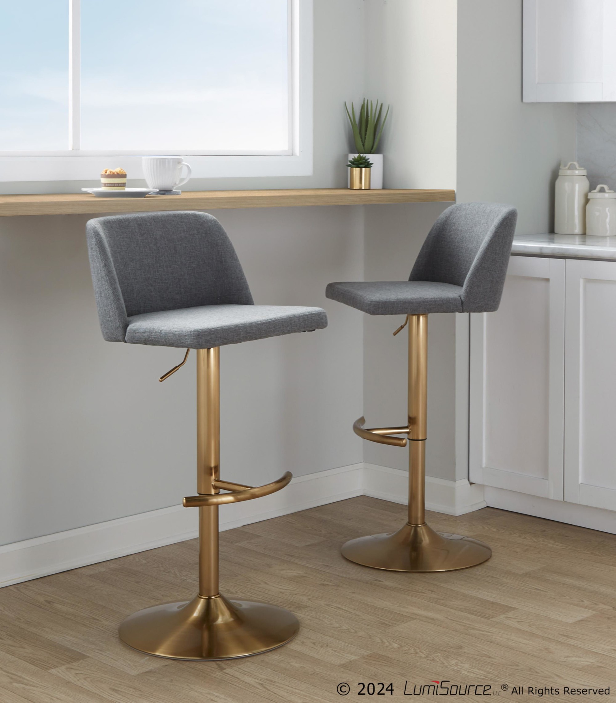 Toriano Grey Fabric Gold Contemporary Swivel Adjustable Barstools (Set of 2)