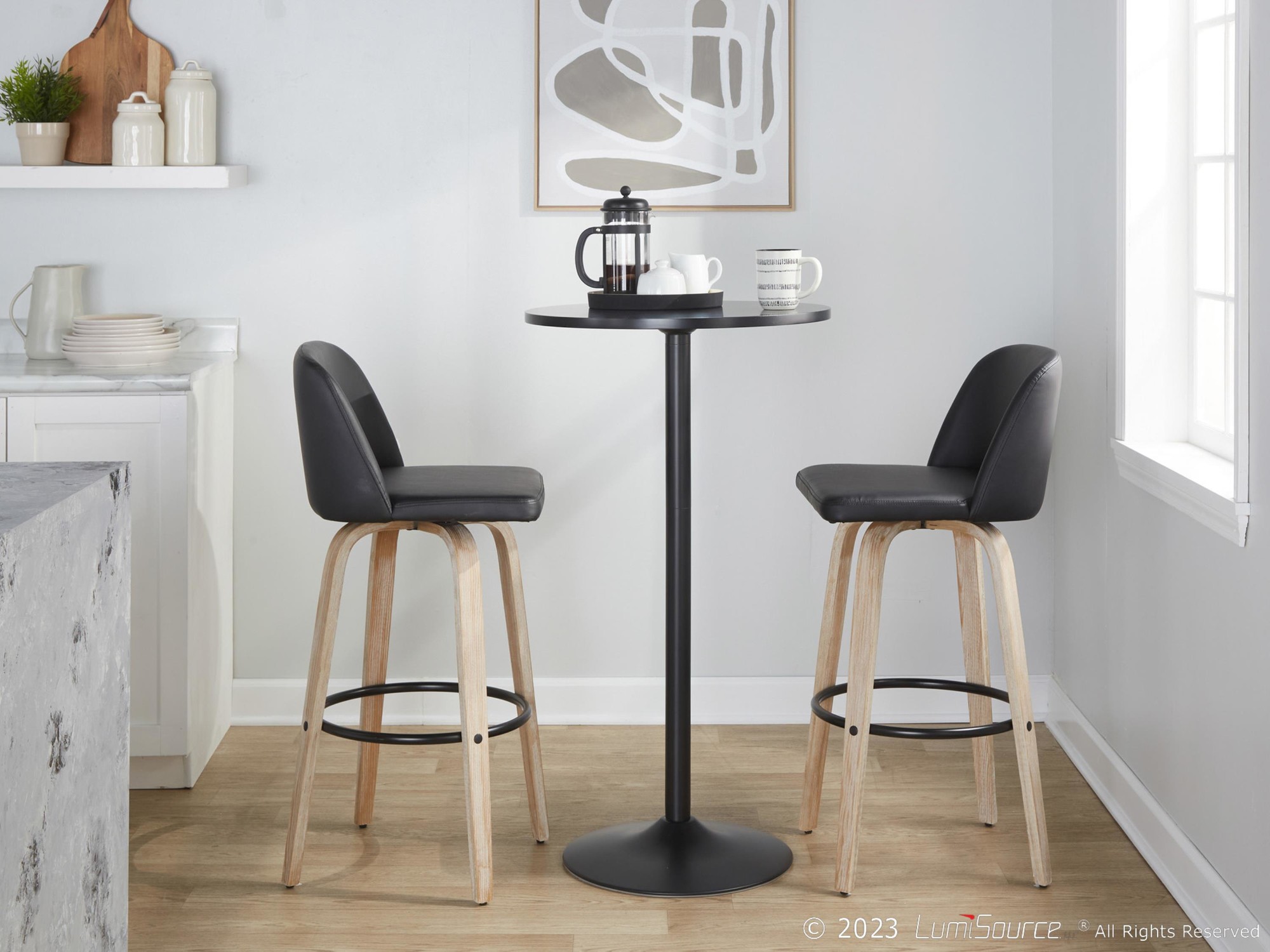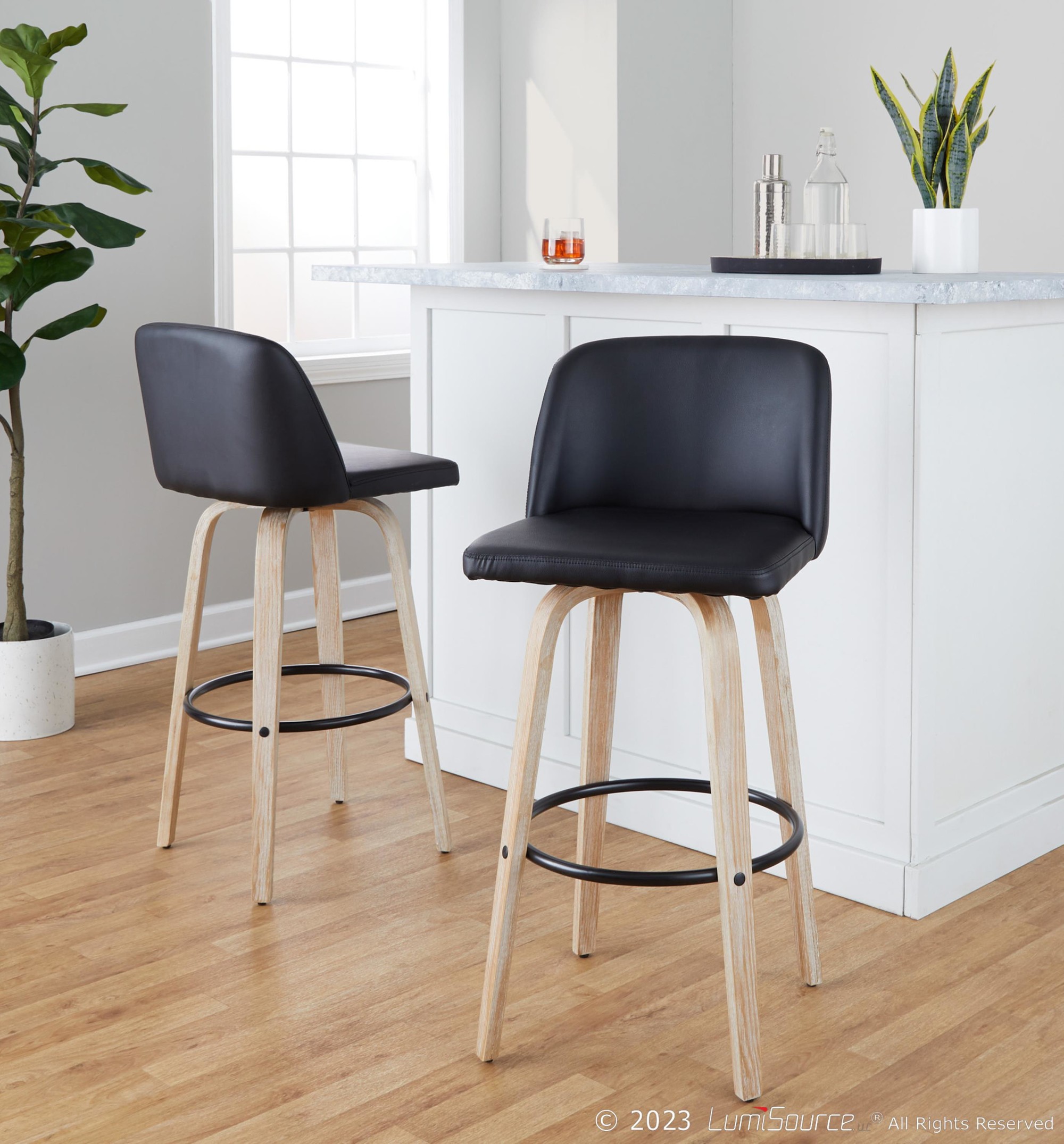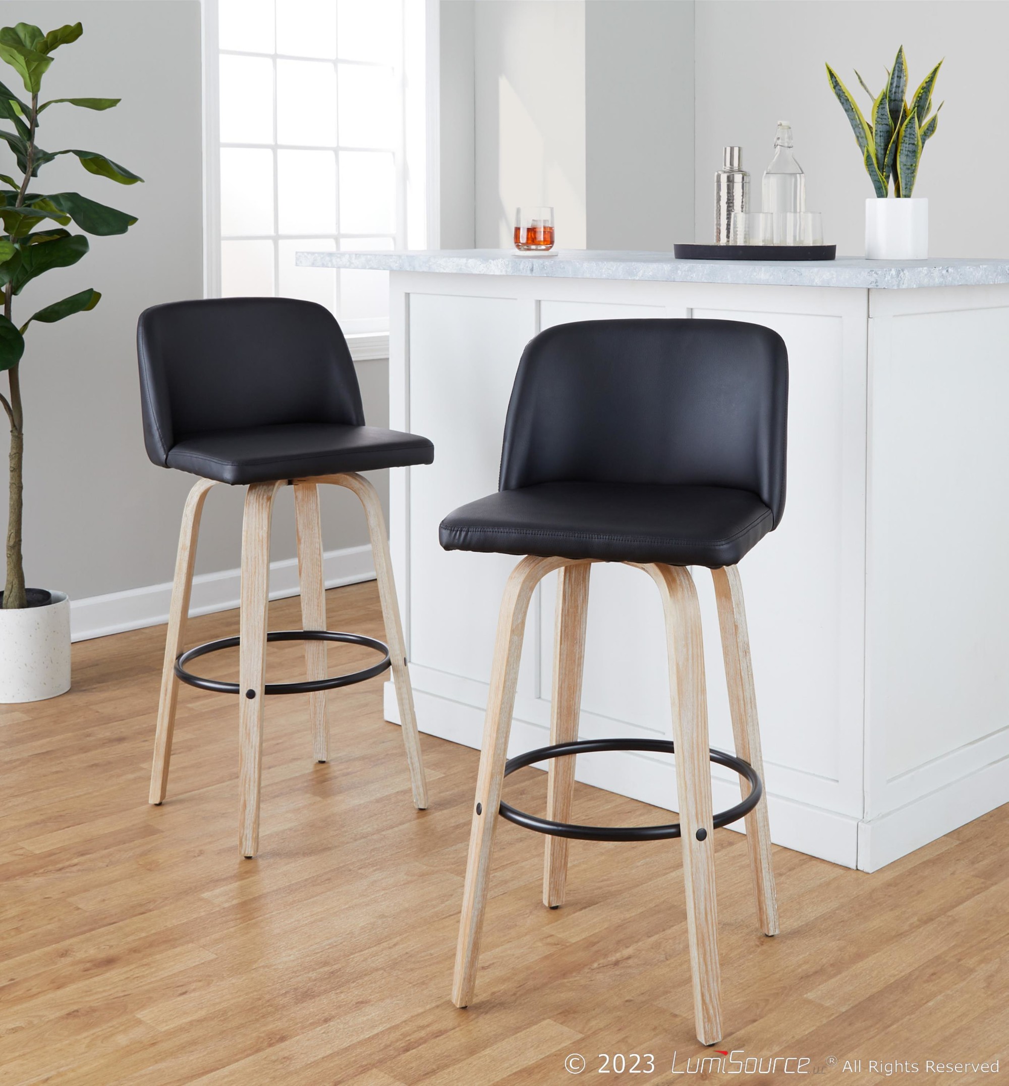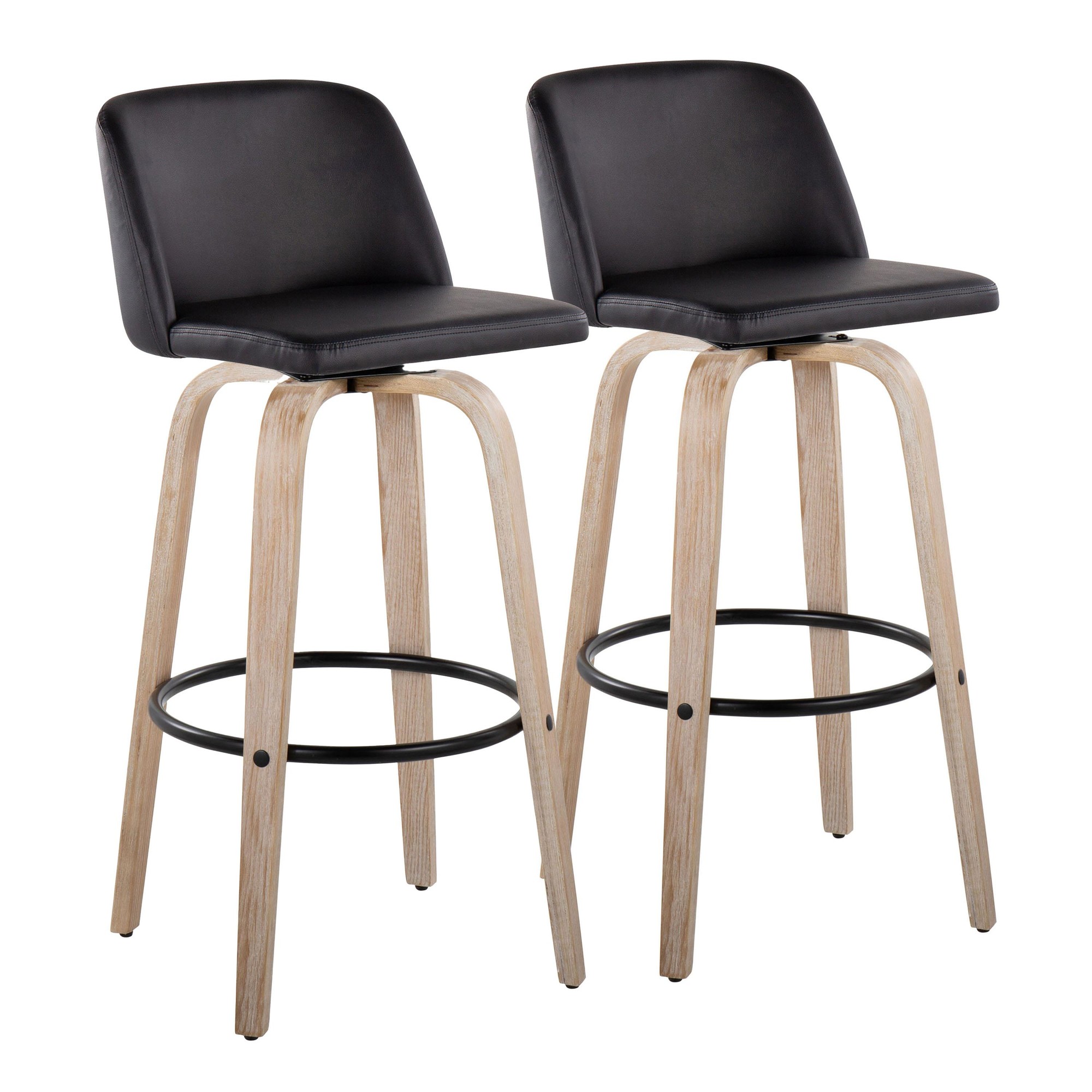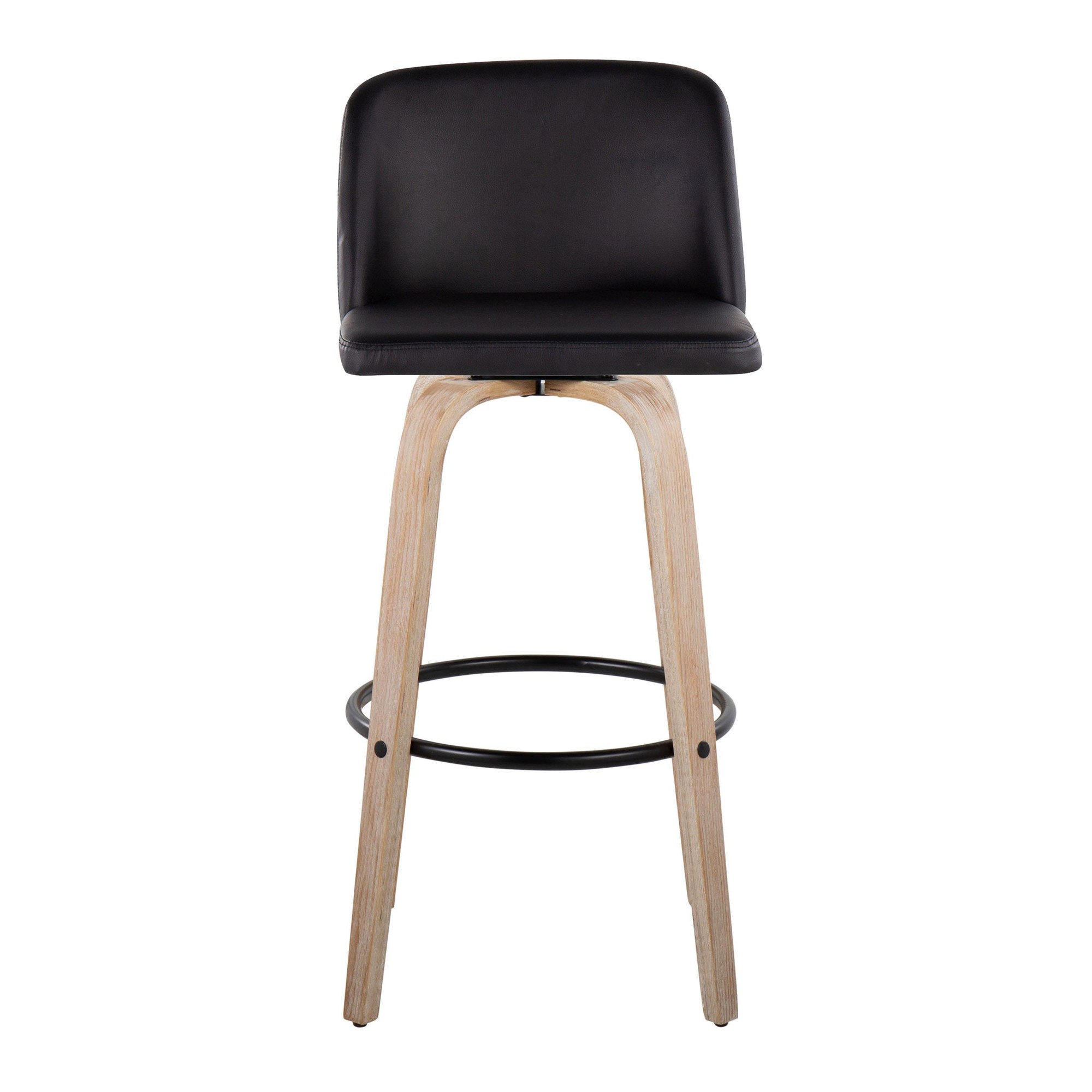 The Toriano barstool isn’t just about looks; it’s designed for comfortable and convenient use. The swivel seat allows for easy movement, while the faux leather upholstery provides a comfortable and easy-to-clean surface. The sturdy bent wood legs and metal footrest ensure durability and stability.