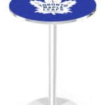 Elevate your bar, game room, or man cave with this stylish and durable 36-inch pub table. Designed for ultimate sports enthusiasts, this table combines functionality with a sleek, professional finish. The vibrant, full-color design on the scratch-resistant laminate top is engineered to last while adding a touch of class to your space. The table base features a triple chrome-plated finish and commercial-quality construction for exceptional stability and durability. Adjustable feet ensure a level surface on any type of flooring, making this table a perfect fit for any setting.