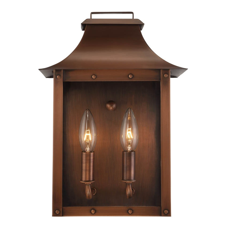The Traditional Copper Patina Pocket Wall Lantern with Clear Glass combines timeless design and functionality, making it an ideal addition to your man cave or any space that requires a touch of rustic charm. Boasting a beautiful copper patina finish and clear glass panes, this lantern provides a warm and inviting glow. Its sturdy rivets and faux handle enhance the antique aesthetic, while its pre-assembled design ensures easy installation.
