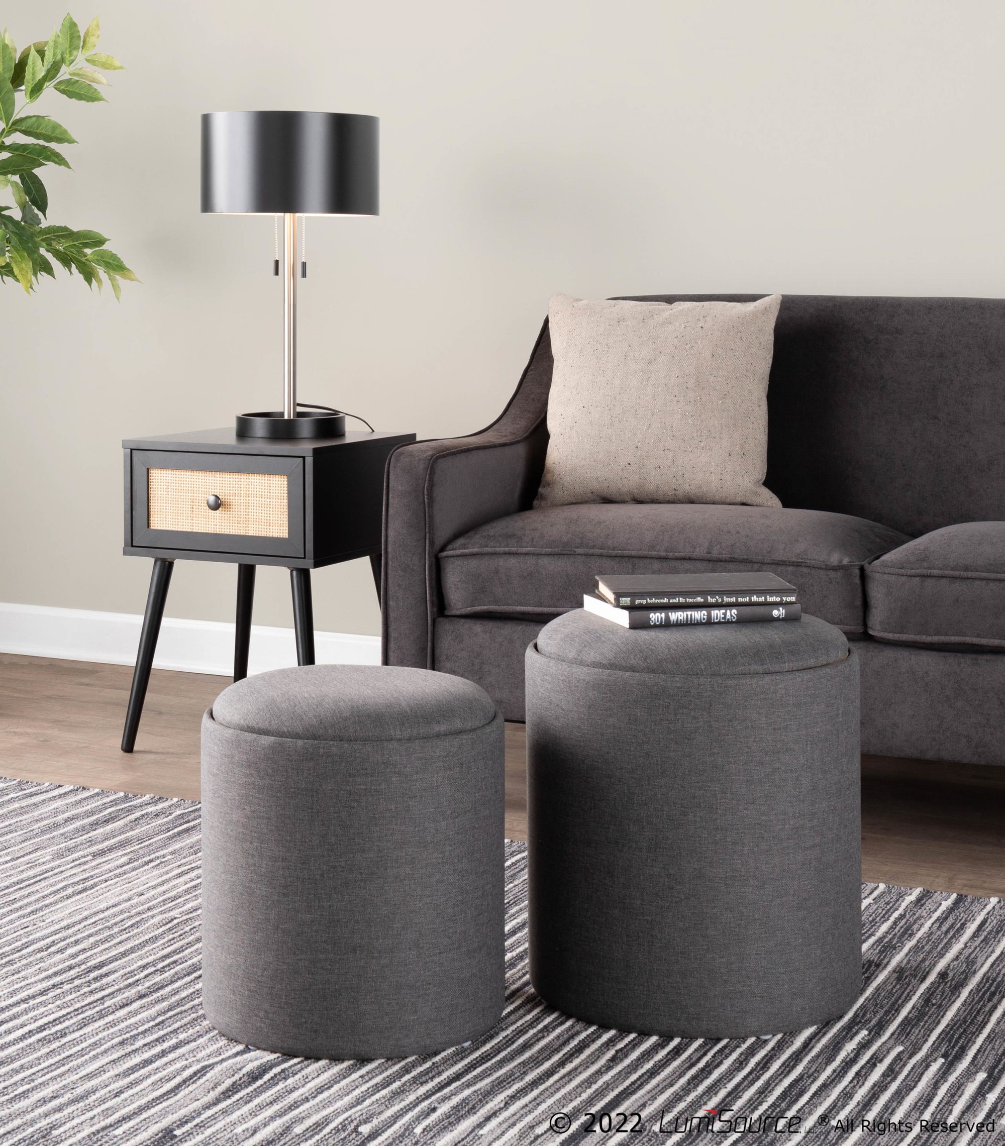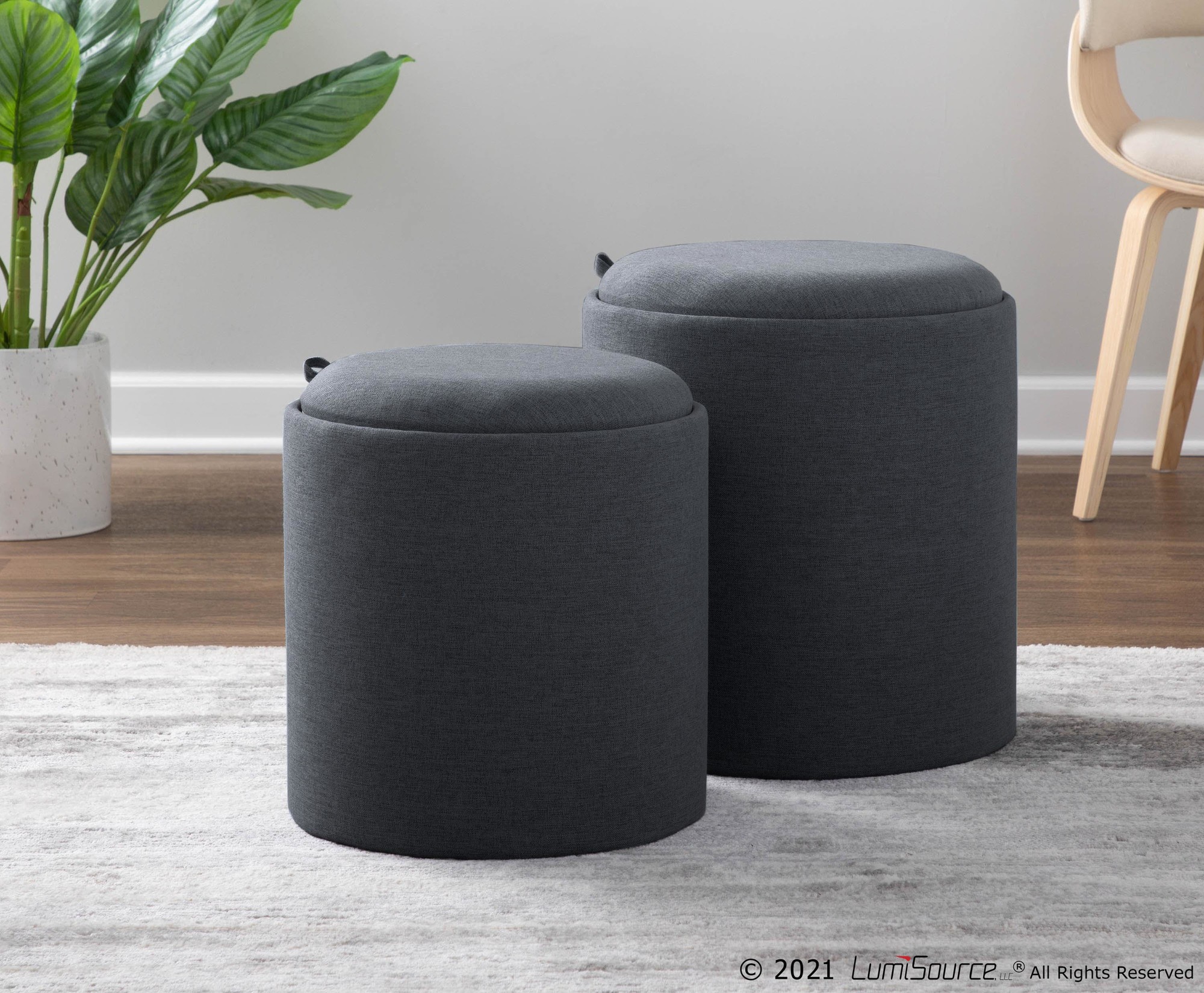 - Nesting Design: The smaller ottoman nests inside the larger one for space-saving storage.