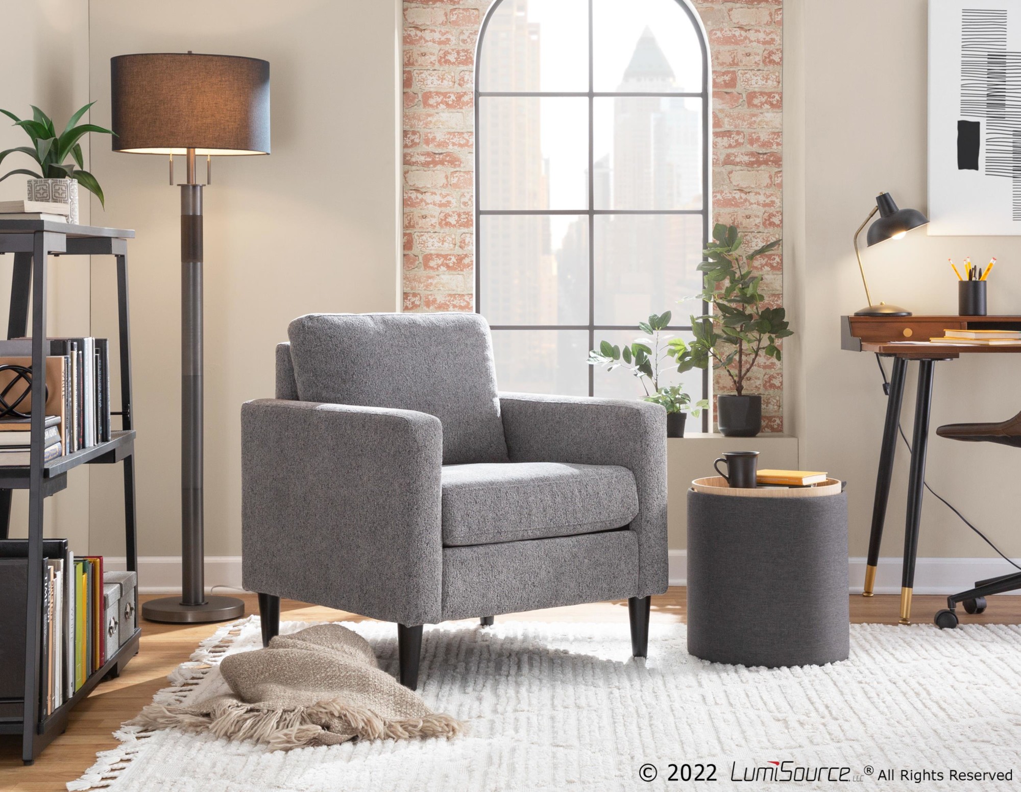 - Color: Charcoal Fabric, Natural Wood