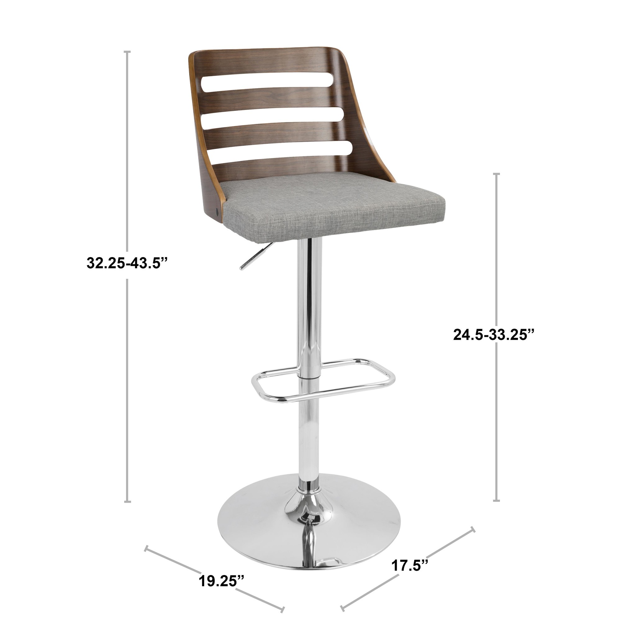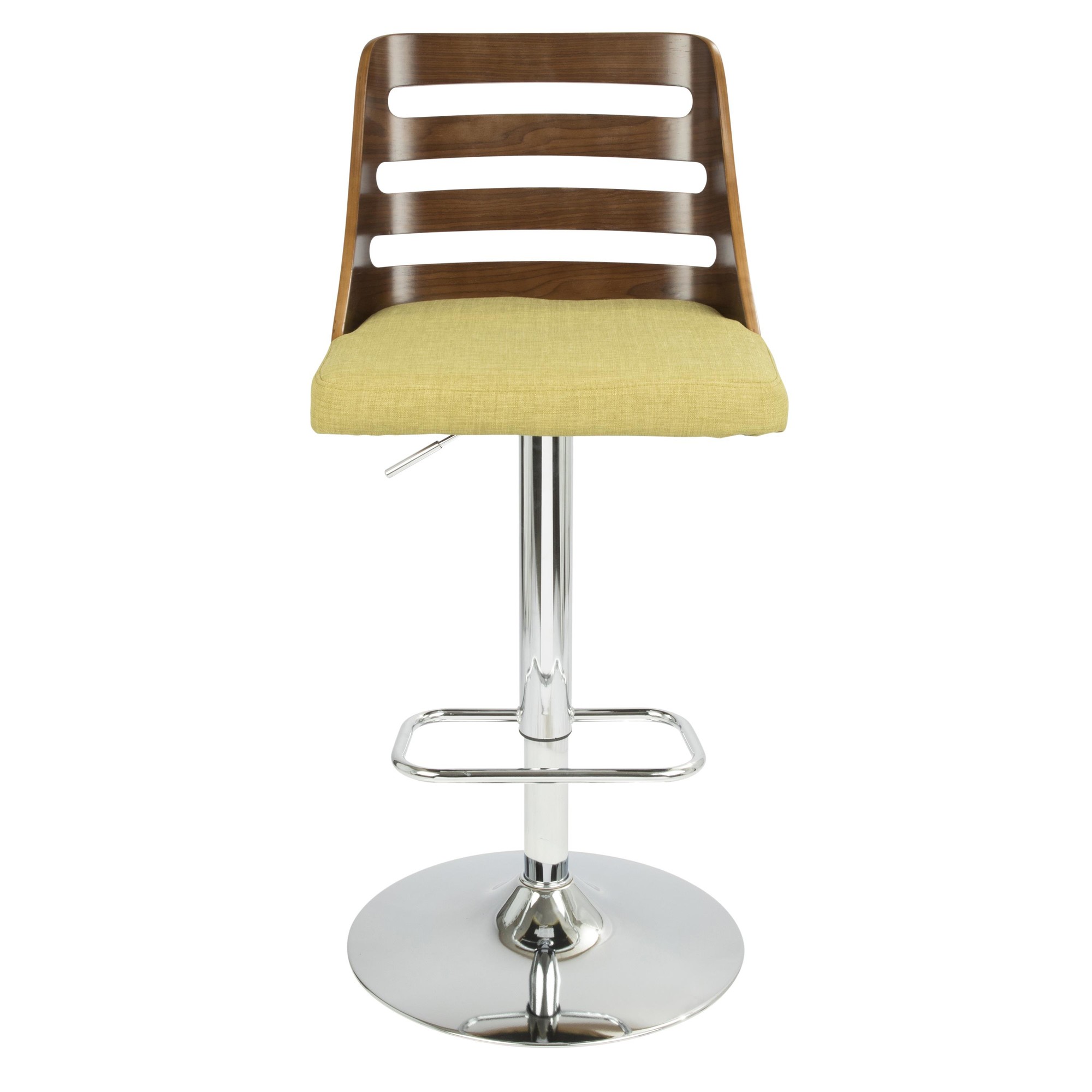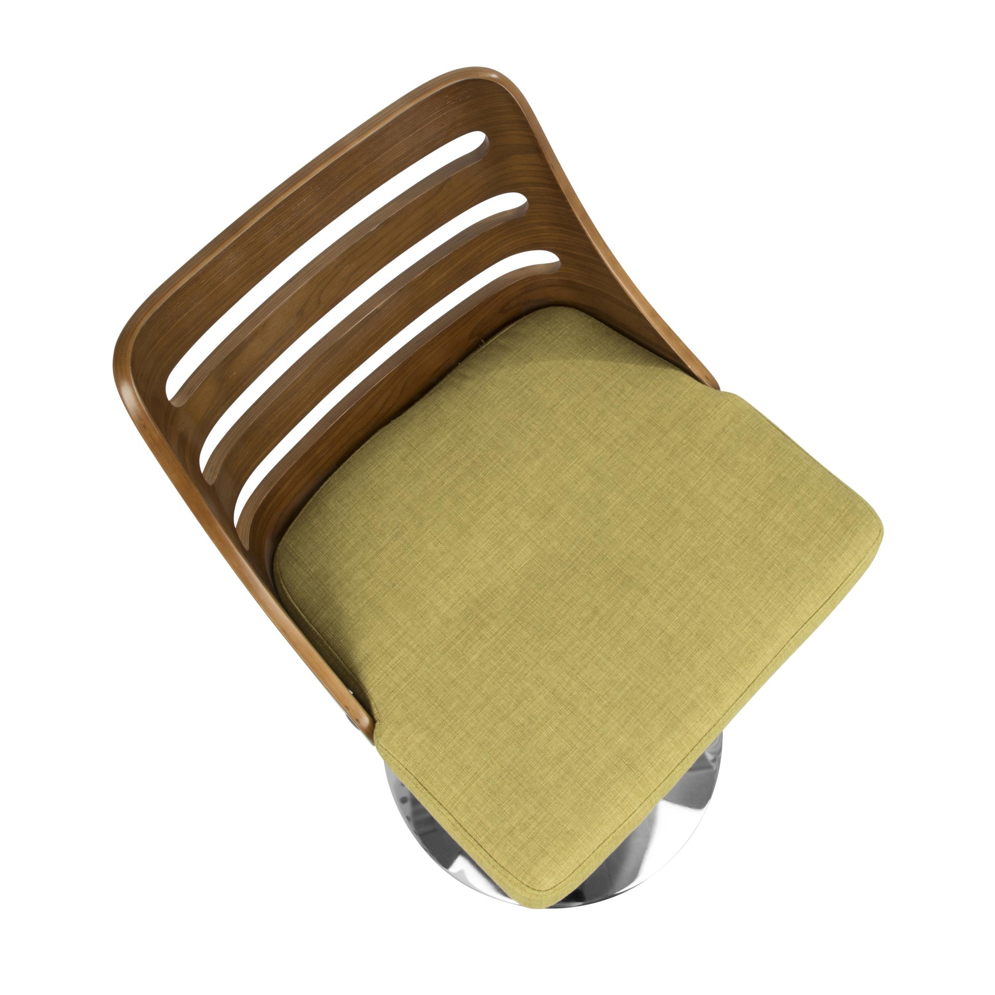 The Trevi Walnut and Green Mid-Century Modern Adjustable Swivel Barstool offers a modern twist on a classic design, making it a striking addition to any space. This barstool is designed for lingering conversations and comfortable dining.