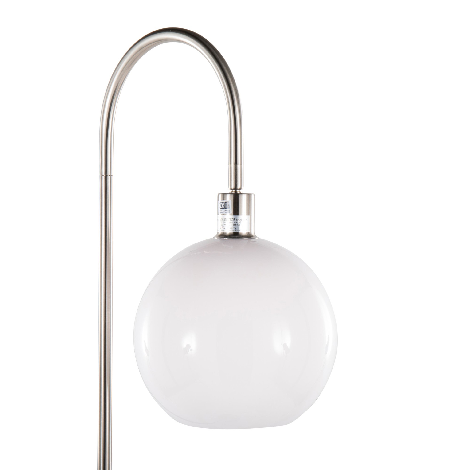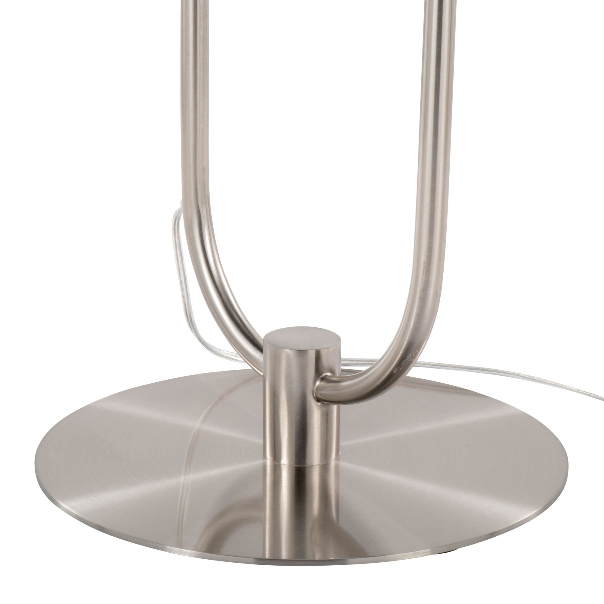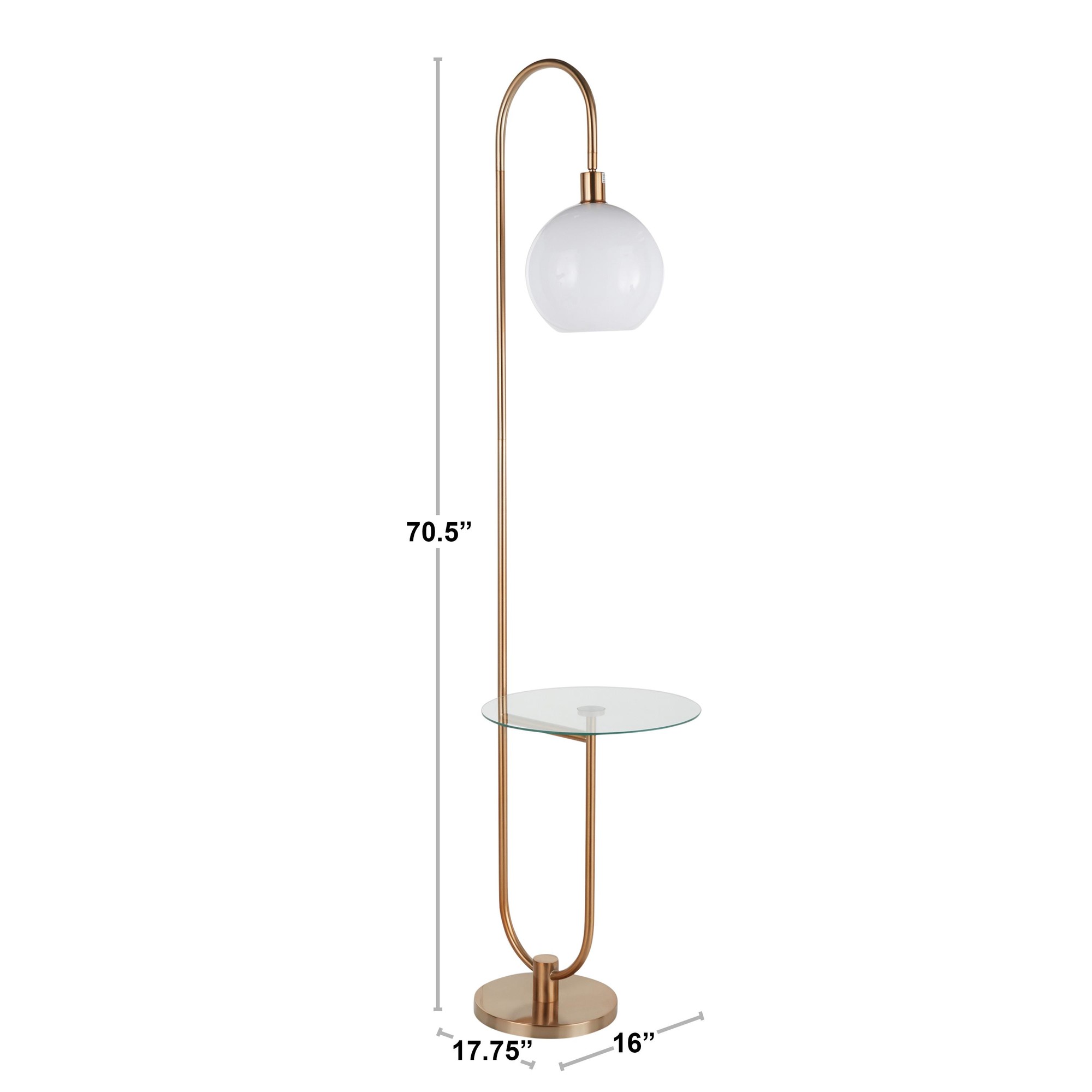 The Trombone Floor Lamp is a chic blend of materials creating a contemporary aesthetic perfect for any room. Its compact size makes it ideal for smaller spaces. The nickel frame, attached tempered glass table, and white round sconce combine to create a stylish accent next to sofas, chairs, or beds. Enjoy both illumination and convenience with this elegant floor lamp.