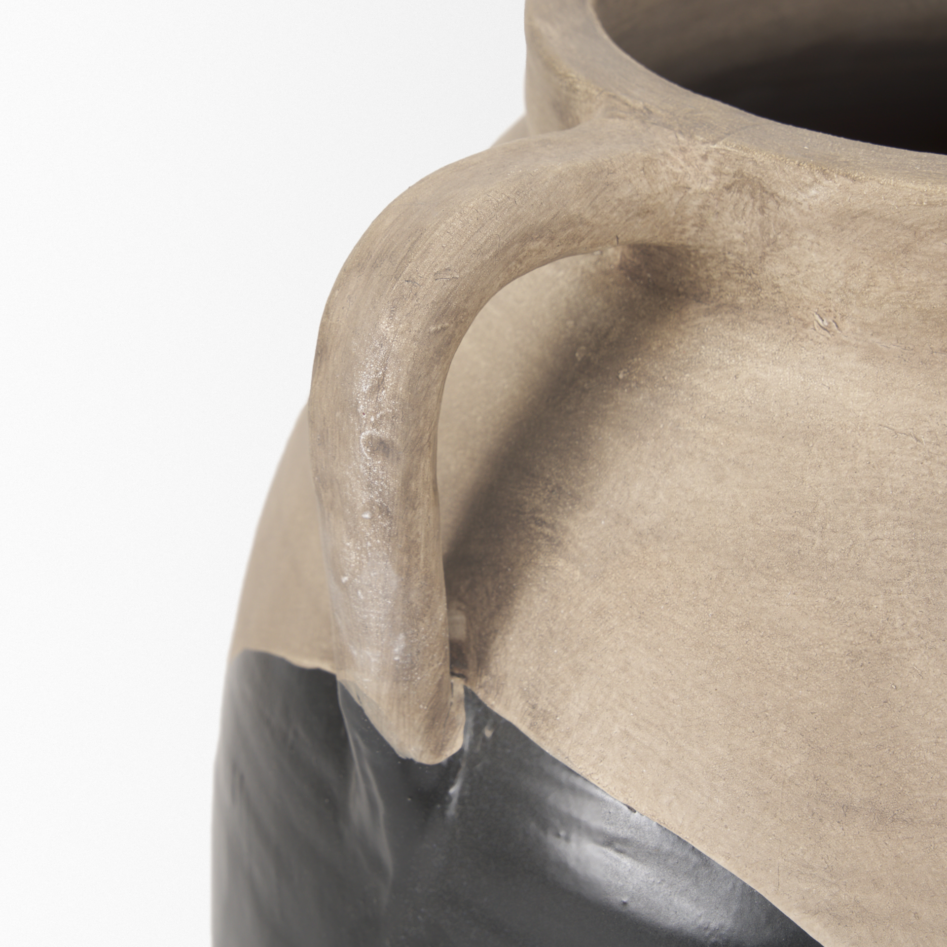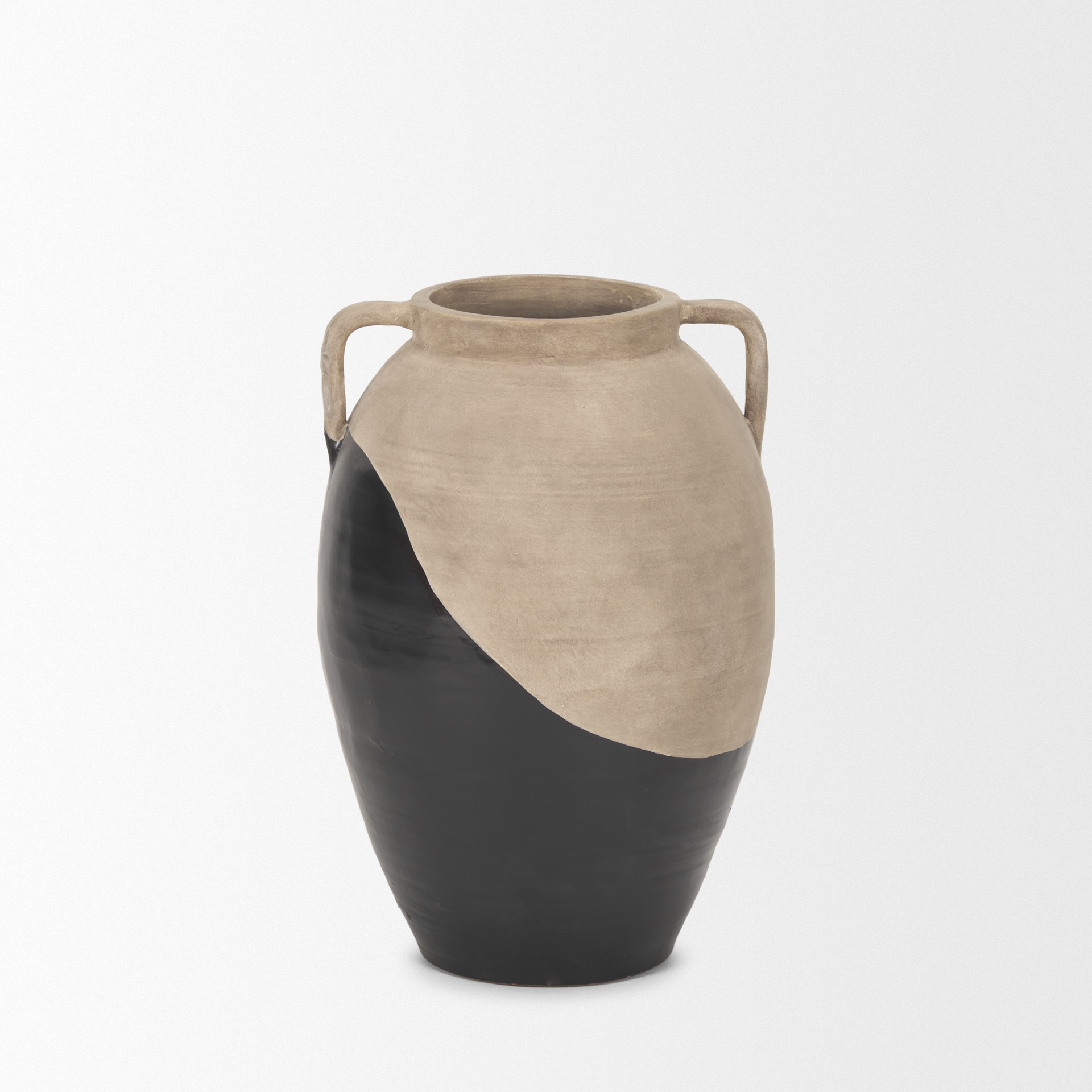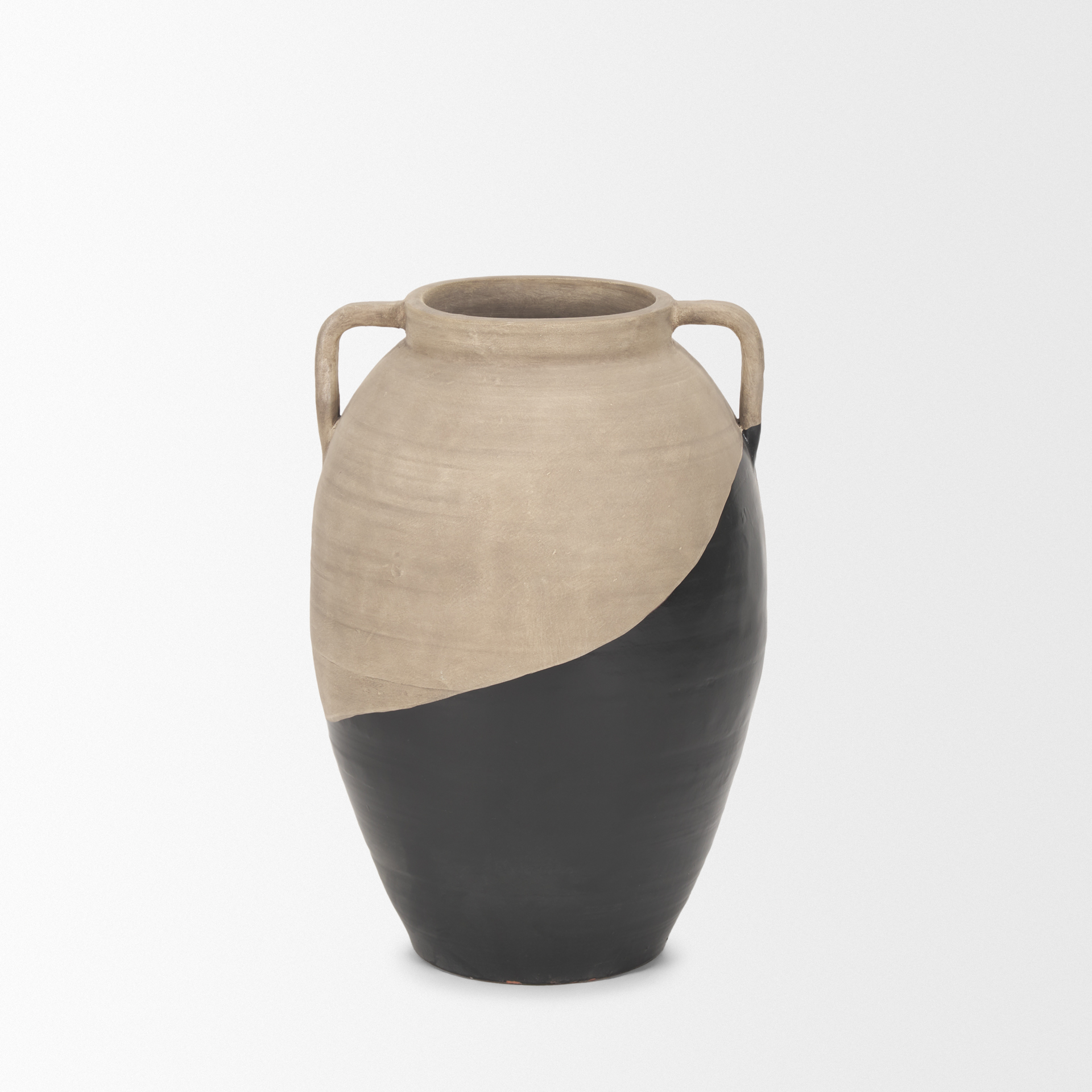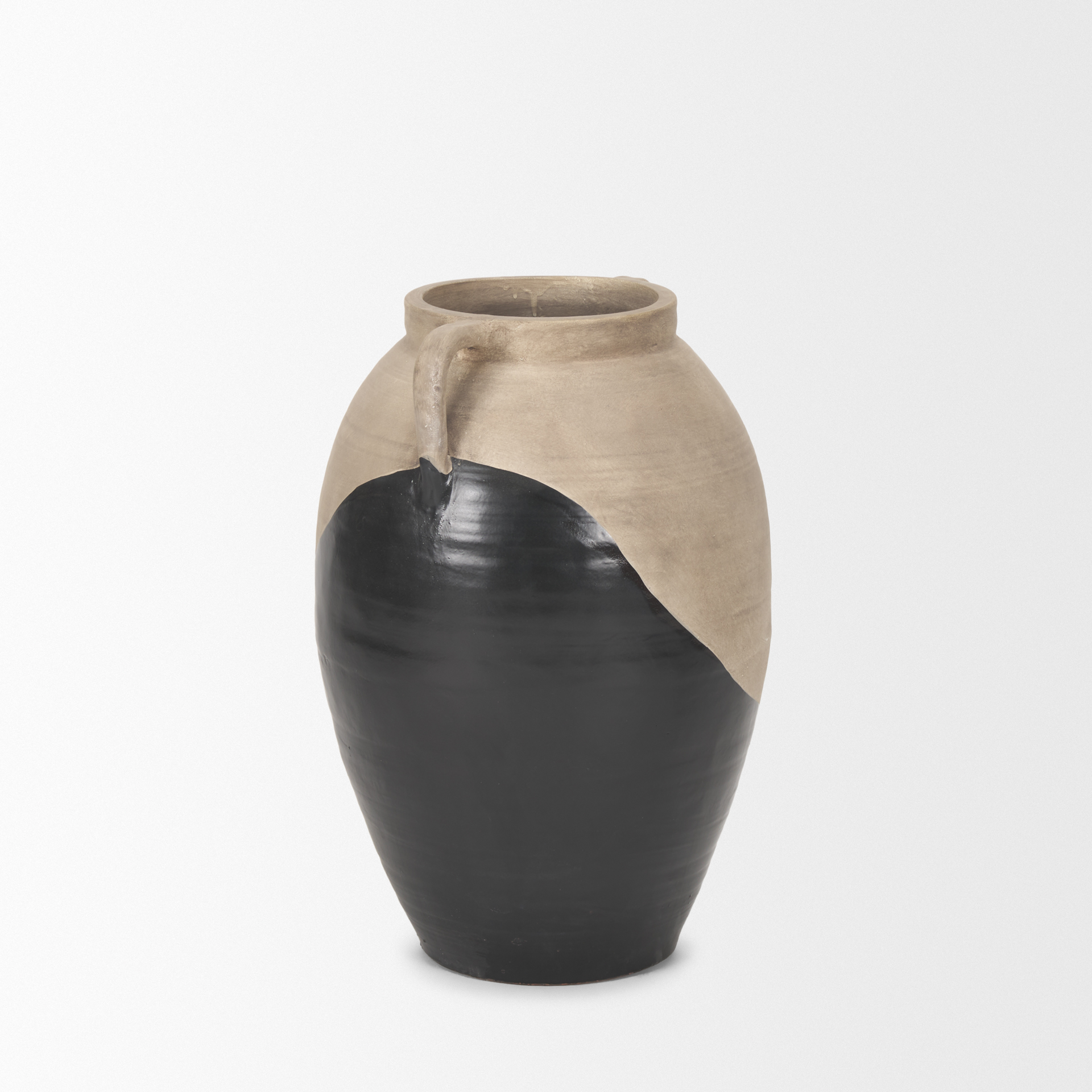 Imagine this: The Tully Vase, bathed in spotlight, instantly becomes the focal point of your room. Its dual-textured finish and bold color blocking create an eye-catching display that’s sure to impress. Whether you’re looking to add a touch of sophistication or a rustic edge, Tully is the perfect choice!