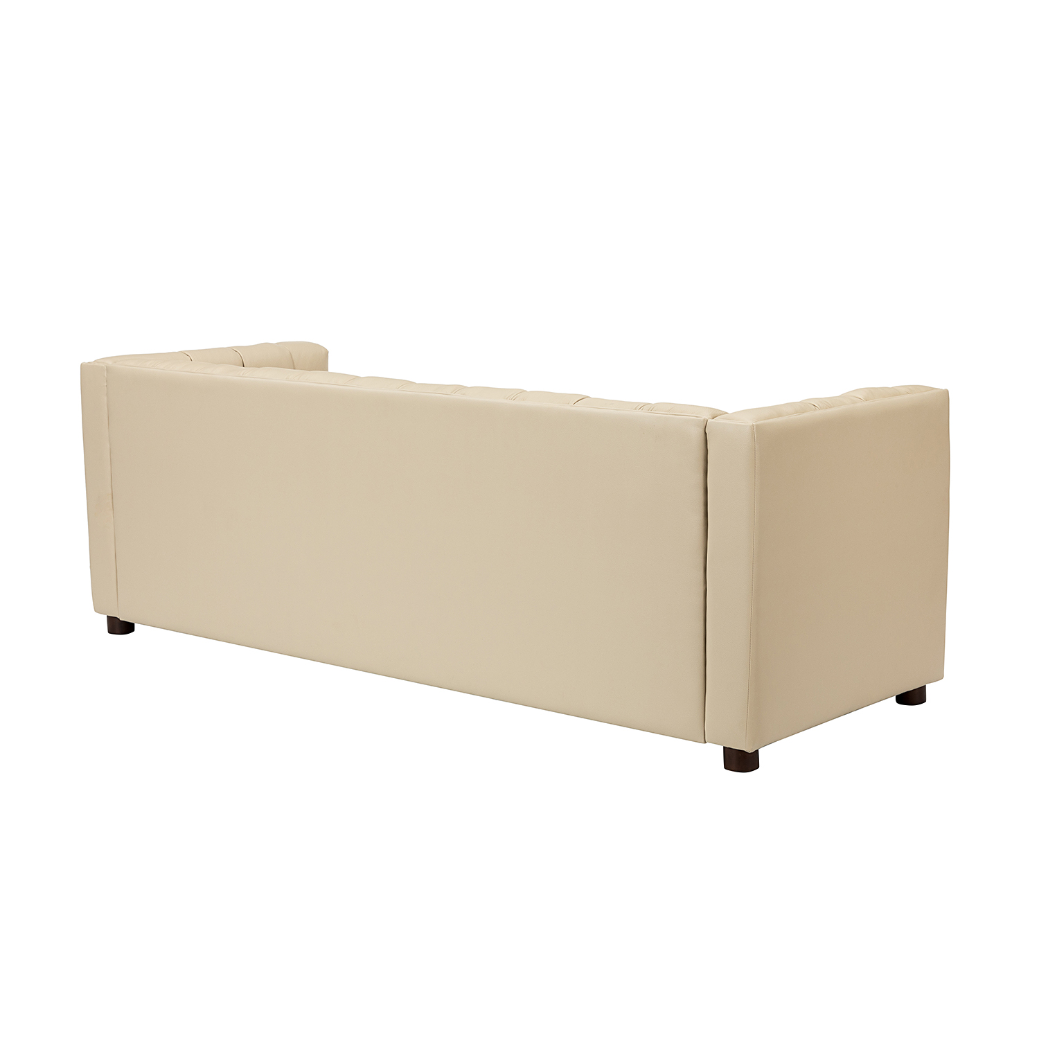 Ulysses Beige Genuine Leather Channel Tufted Sofa