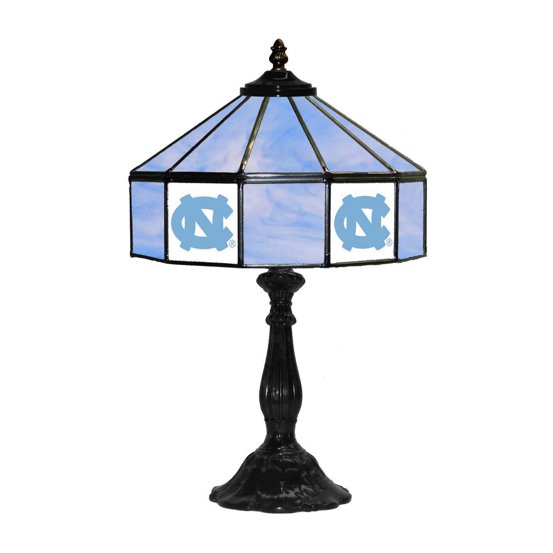 Show off your team pride with the UNC Tiffany Style 21 Inch Glass Table Lamp. This officially licensed lamp adds a touch of class to your fan cave, home office, or living room. It features hand-cut stained glass in team colors, showcasing your favorite team’s logo. The lamp stands 21 inches tall and has a sturdy, solid cast metal base. It’s easy to set up – just add one 60-watt light bulb (not included). The lamp has a 6-foot cord with a polarized plug. Dimensions: 14 x 14 x 21 inches. Weight: 13 lbs. Material: Hand-cut glass, metal. Made in the USA.