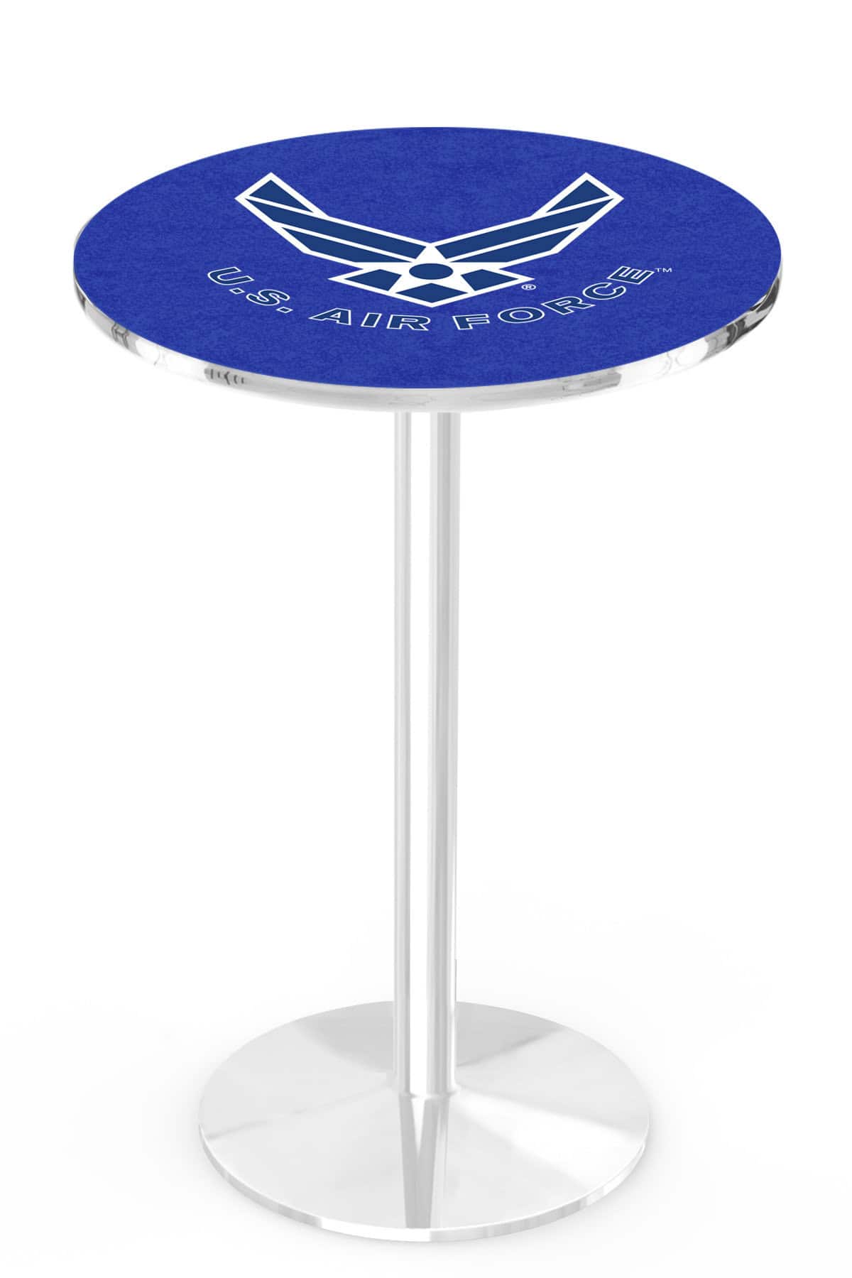 Enhance your bar, game room, or man cave with this high-quality 42-inch pub table featuring a sleek chrome finish and a durable round base. This table is designed to combine style and functionality, ensuring a sophisticated look and exceptional durability. The vibrant, full-color laminate top is scratch-resistant, making it the perfect centerpiece for entertaining guests or showcasing your decor. Its easy-to-assemble design and adjustable feet ensure stability on any floor surface, making it a practical choice for your space.