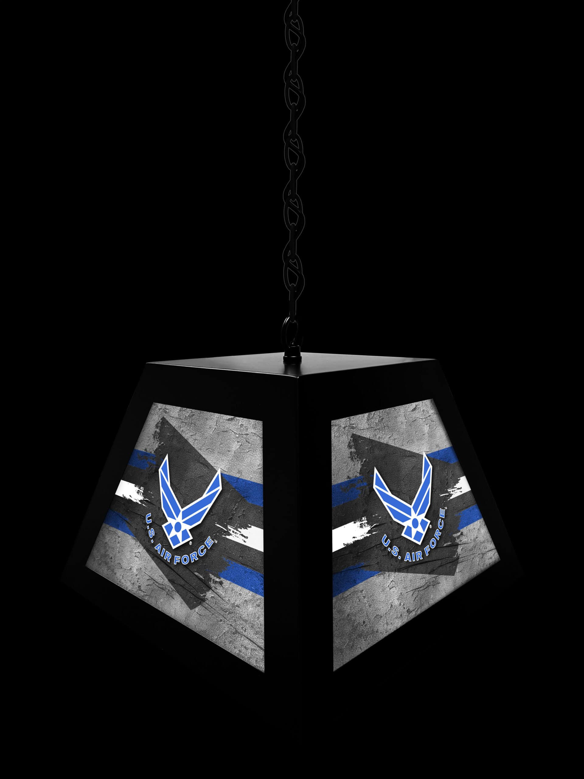 Elevate your game room with the United States Air Force Pendant Box Light. This high-quality, suspended light fixture features a bright, backlit design perfect for illuminating billiard tables, game tables, bars, and pub tables. Showcase your pride with officially licensed logos and enjoy a durable, stylish addition to your space.