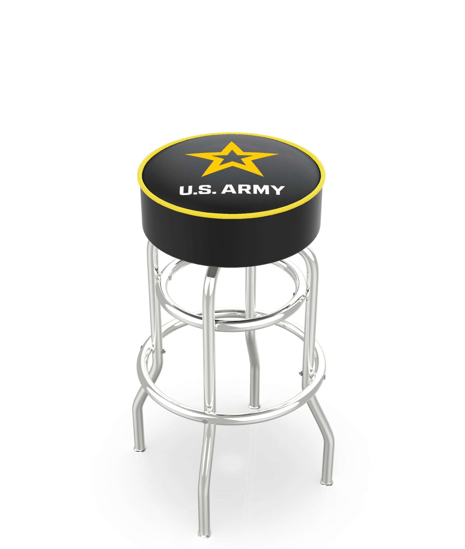 Show your support for our troops with this high-quality 30-Inch Swivel Backless Bar Stool featuring a chrome finish and a double-ring base. This stool blends durability and style, making it the perfect addition to your bar, game room, or man cave. Designed with a state-of-the-art printing process, the logo is sharp, crisp, and clear, ensuring long-lasting vibrancy. Built with a commercial-grade steel frame and a comfortable cushion seat, this stool is as functional as it is stylish. Upgrade your space with a bar stool that combines durability, comfort, and a design that showcases your pride.