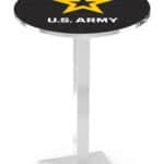 Show your support for our troops with this premium 36-inch pub table, designed to add a touch of class to your bar, game room, or man cave. Featuring a vibrant, full-color laminate top and a durable, triple chrome-plated base, this table is built to impress and last. Its scratch-resistant surface and easy-to-clean design provide both style and functionality, while the stable, adjustable base ensures it fits perfectly on any flooring. Whether entertaining guests or enjoying a quiet evening, this table is a perfect addition to your space.