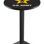 Enhance your bar, game room, or man cave with this premium 42-inch pub table featuring a 36-inch top and a sleek square base. Designed for durability and style, this table boasts a sublimated, full-color, scratch-resistant laminate top that ensures a vibrant finish for years to come. The sturdy, commercial-quality base is powder-coated with a black wrinkle finish, providing exceptional stability and a modern aesthetic. Adjustable feet make it suitable for any floor surface, and easy assembly ensures a hassle-free setup. Perfect for entertaining or casual dining, this table blends functionality with a touch of sophistication.