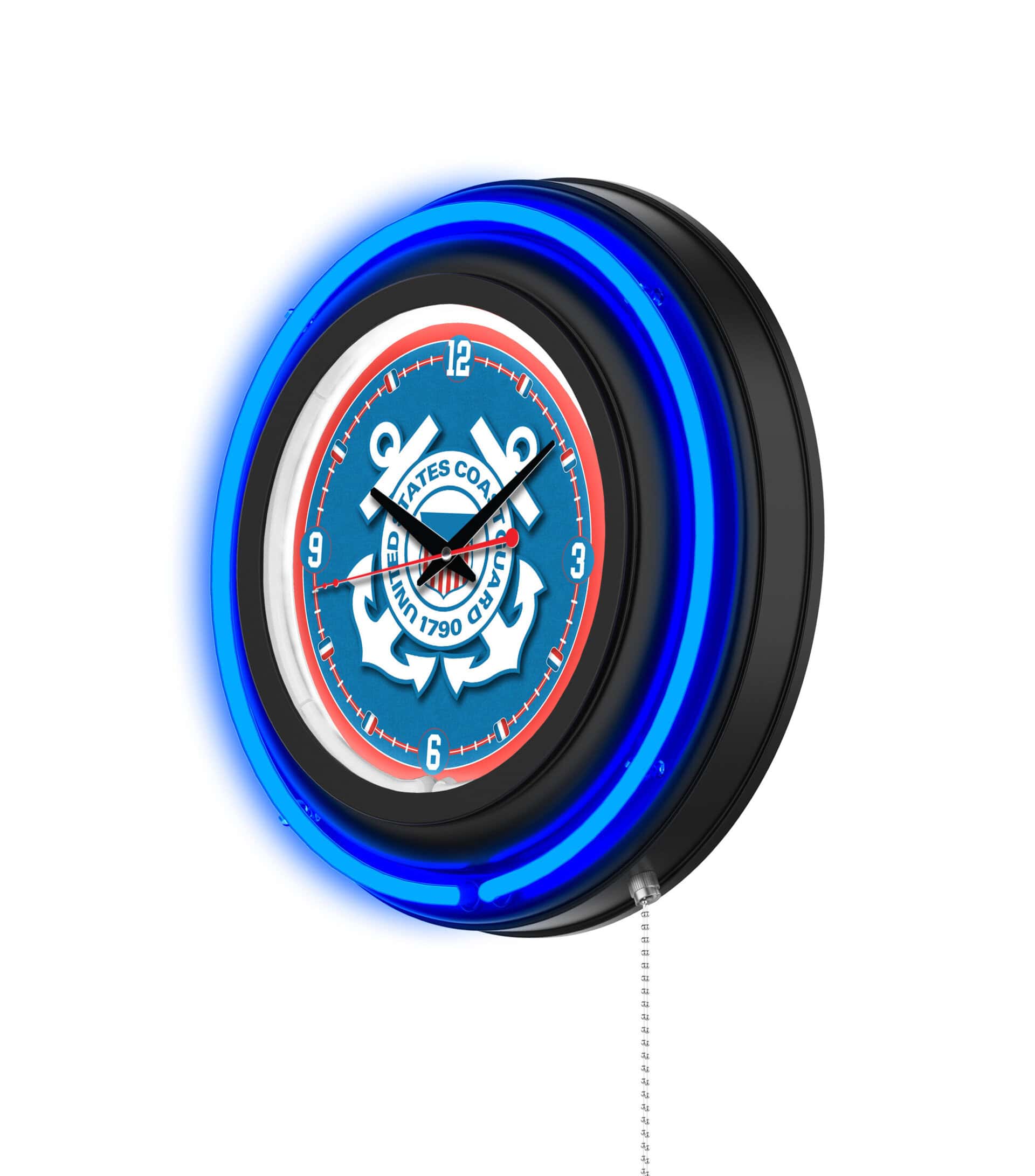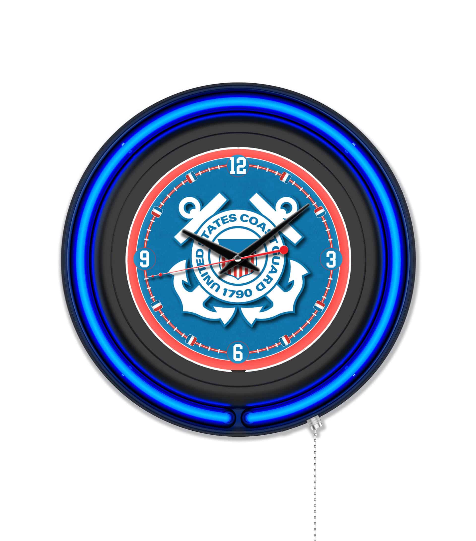 The United States Coast Guard 15-Inch Neon Logo Clock in Black is a striking addition to any space, showcasing vibrant artwork and a bold design that pays tribute to our troops. Its standout features include a black casing with a neon outer ring, which beautifully illuminates the custom printed clock face with a brilliant white inner neon ring. The clock is designed for convenience, featuring a pull chain for easy on and off operation, making it a hassle-free decorative piece. Powered by a standard 120V outlet, this clock combines functionality with style, ensuring you can enjoy accurate timekeeping while displaying your pride.